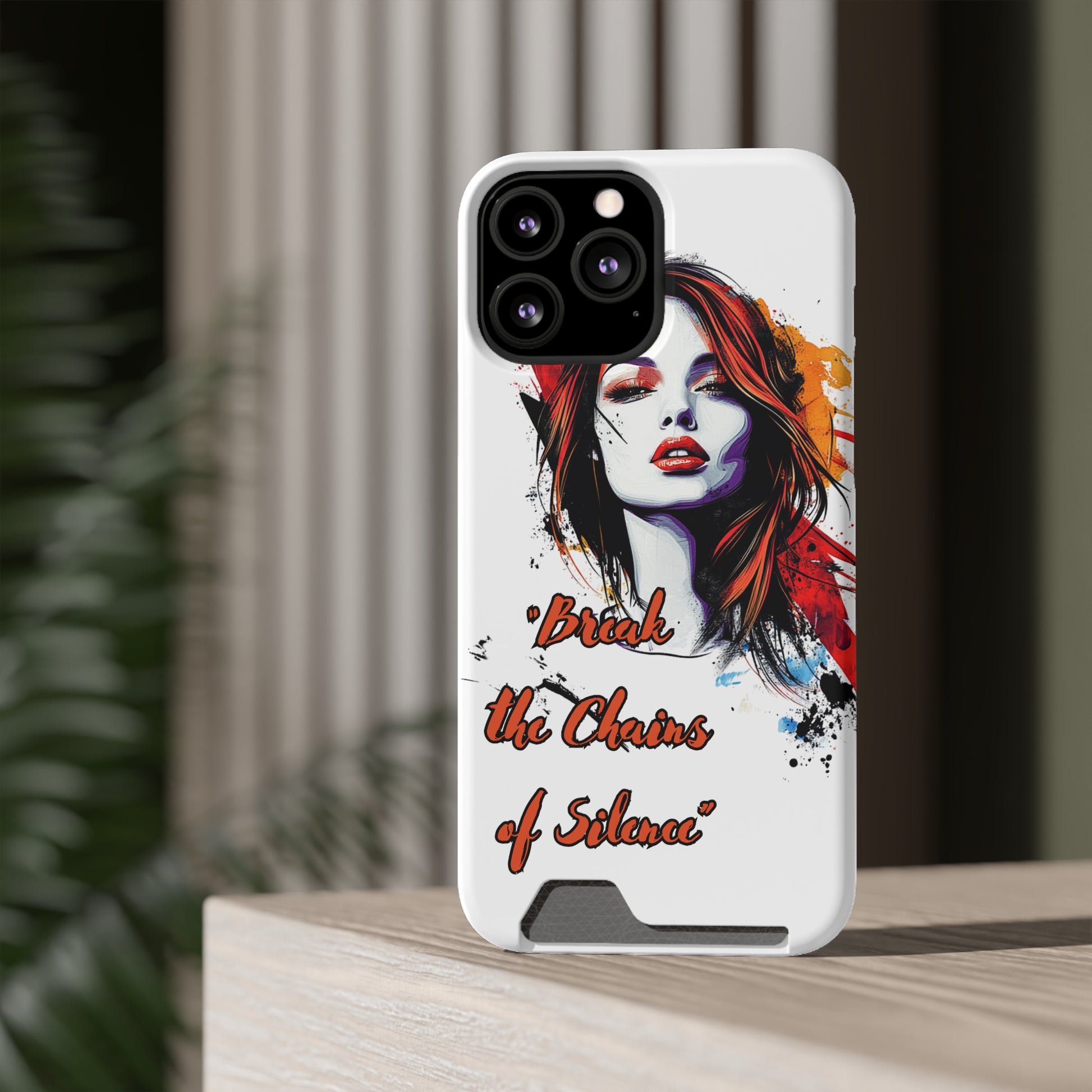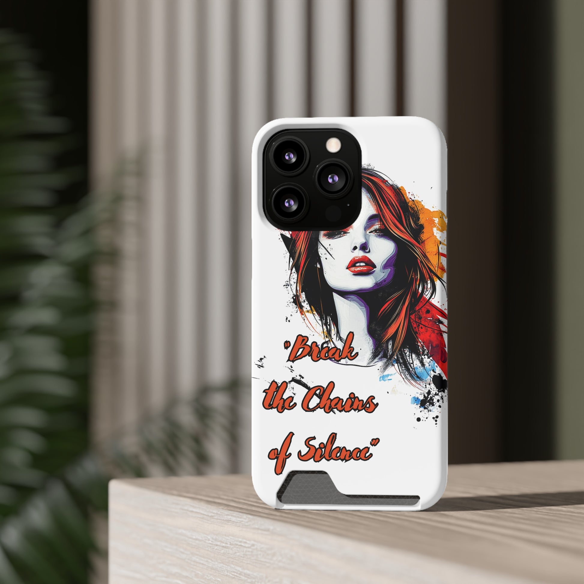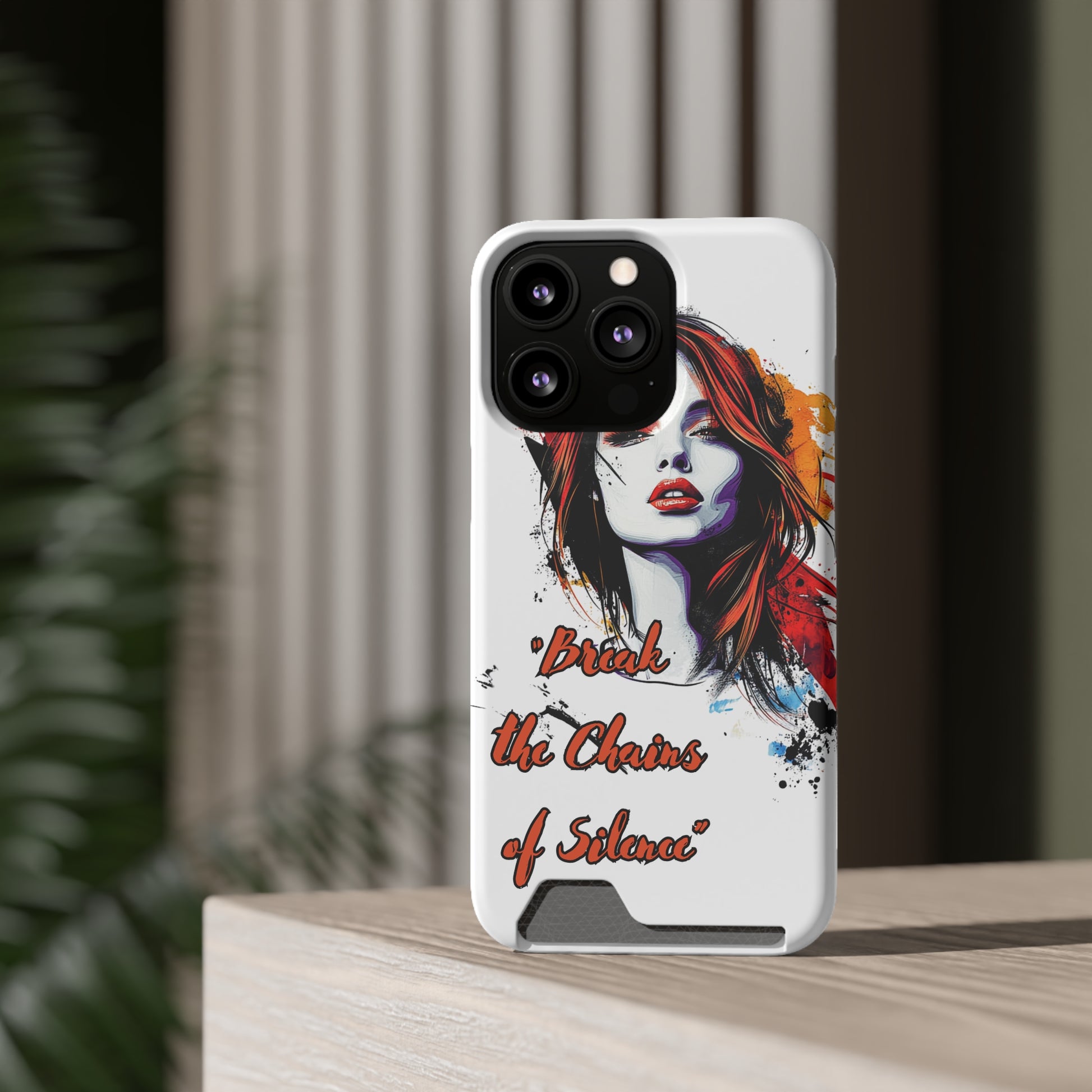 Artistic Phone Case With Card Holder for Empowerment | Break the Chains of Silence, Trendy Gift for Friends, Unique Phone Accessories, [...]