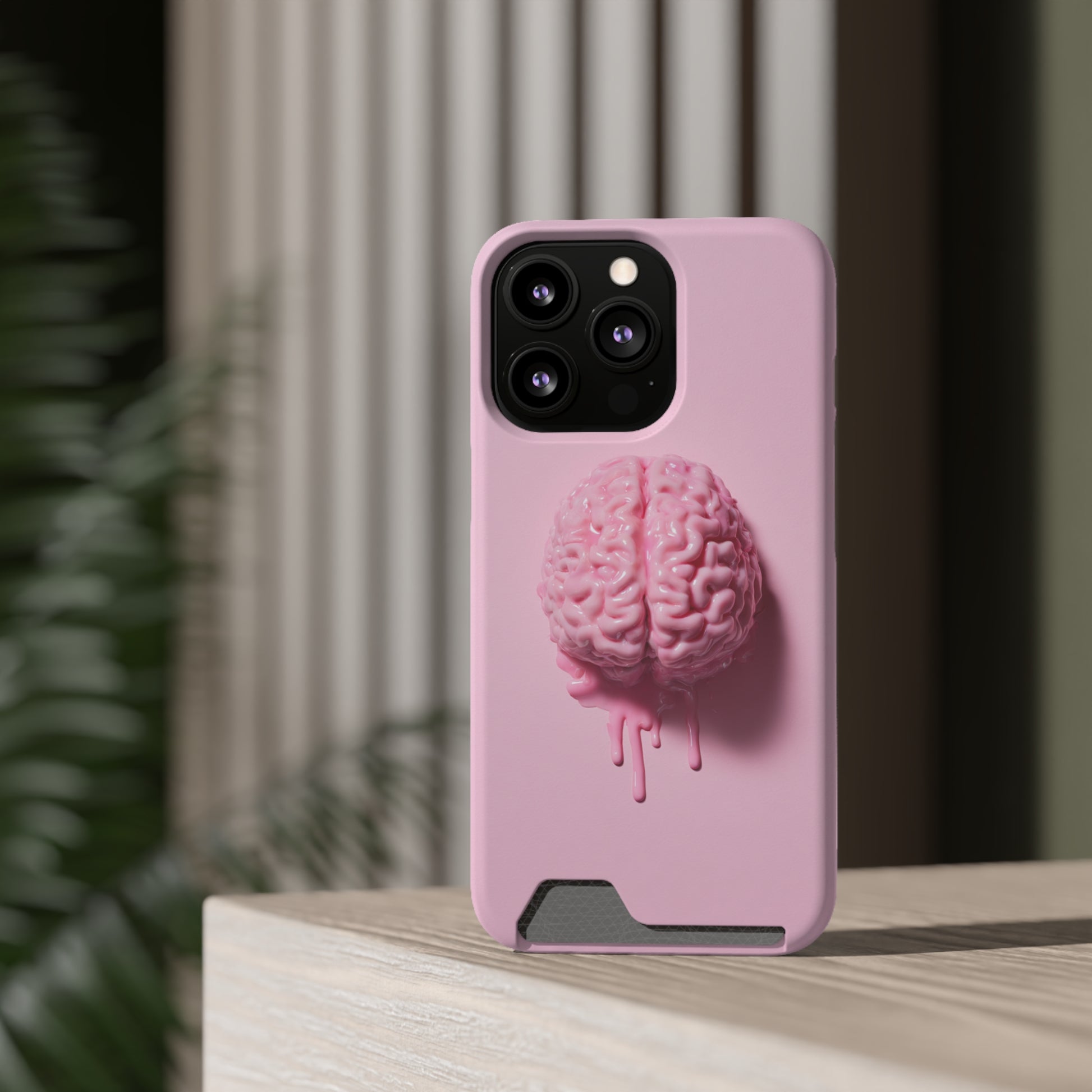 Brain Design Phone Case With Card Holder, Cute Tech Accessory, Unique Gift for Students, Stylish Phone Protection, Valentine's Day, Birthday