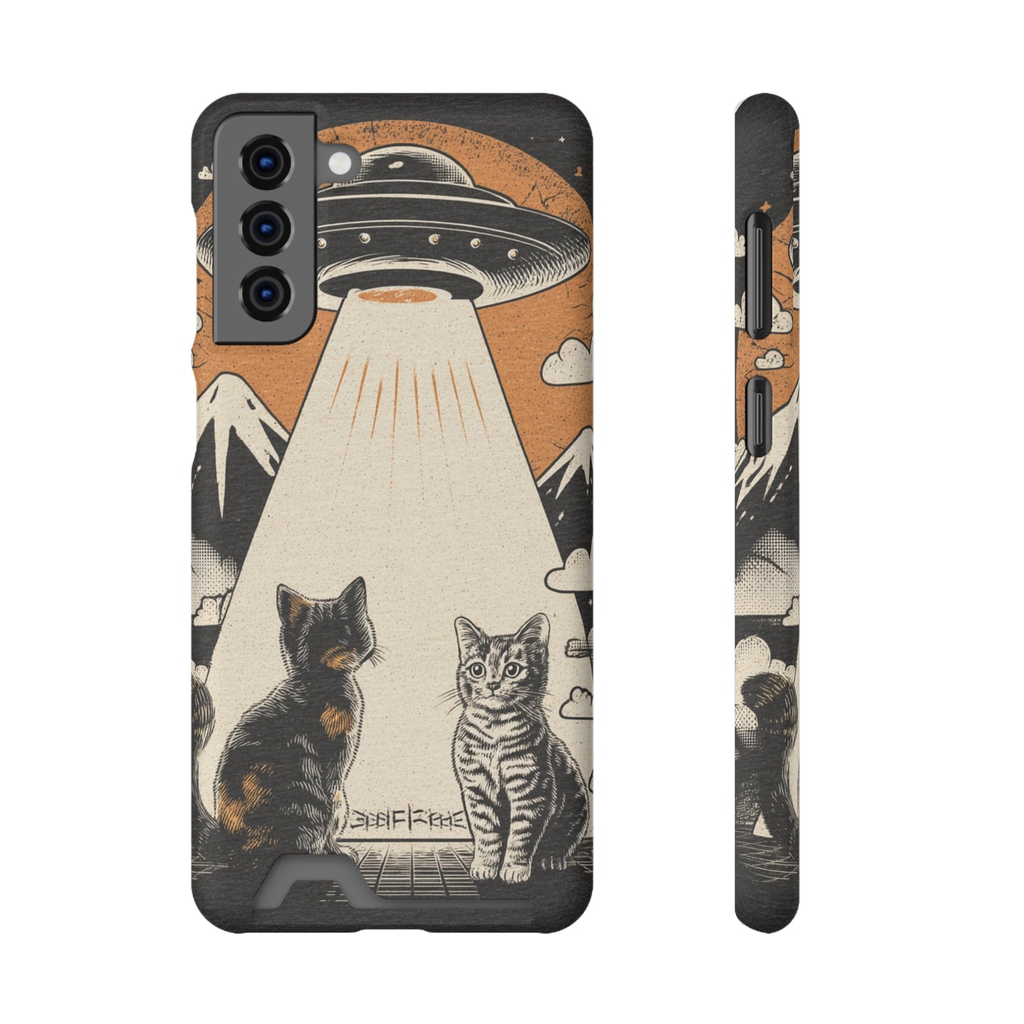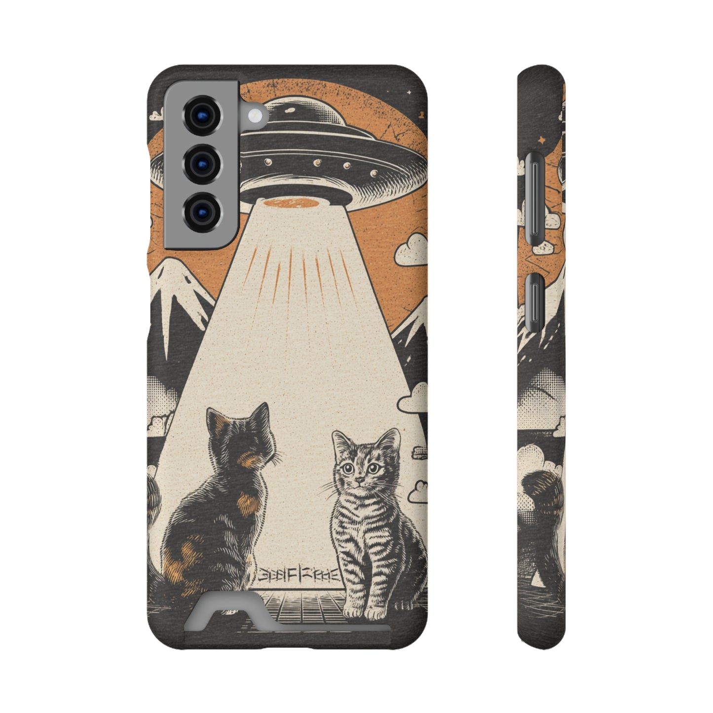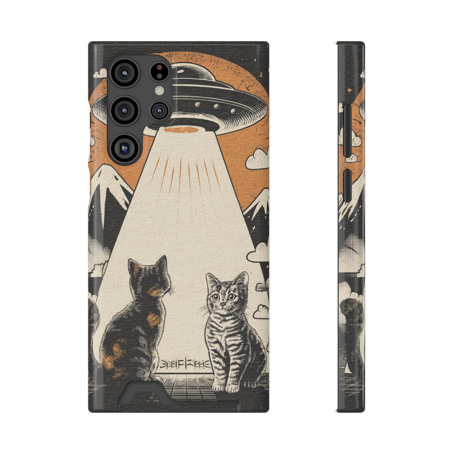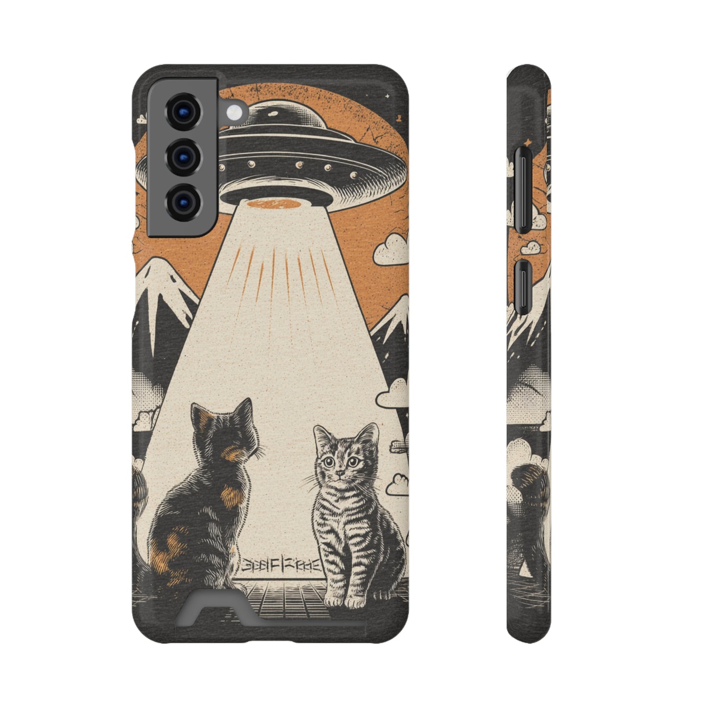 Cat UFO Phone Case with Card Holder, Trendy Cat Lover Gift, Space Theme Accessories, Unique Pet Owner Present, Cute Feline Design