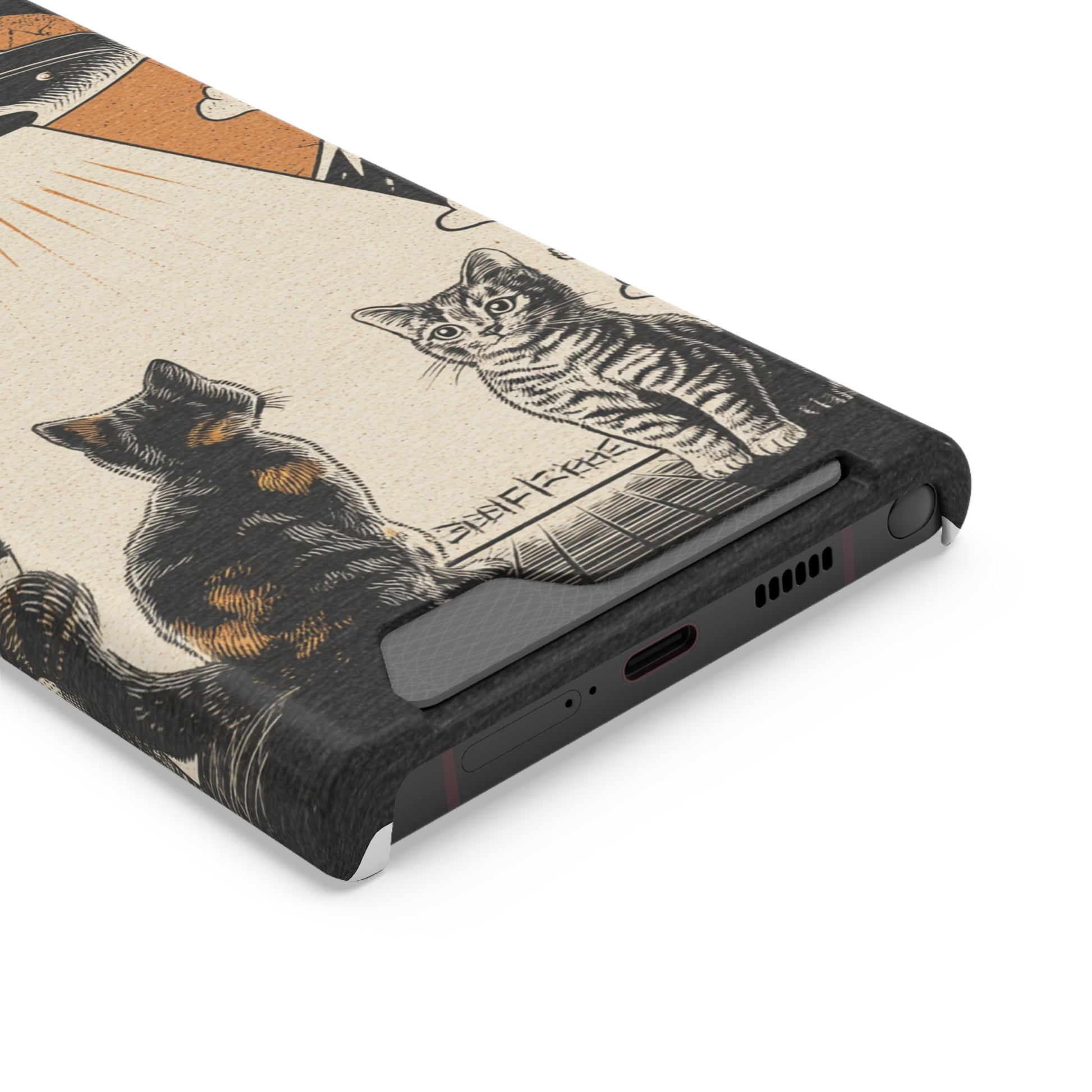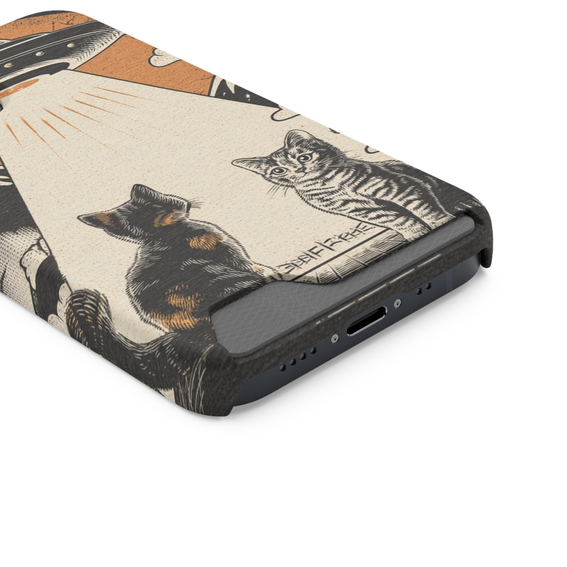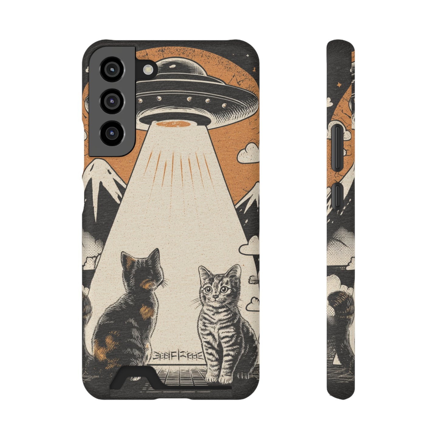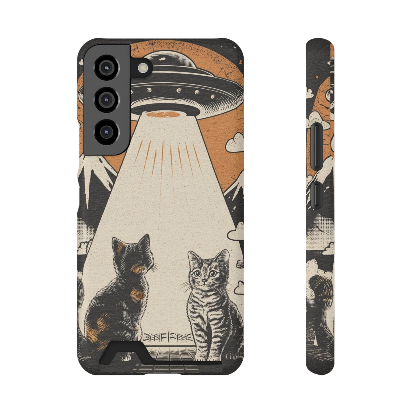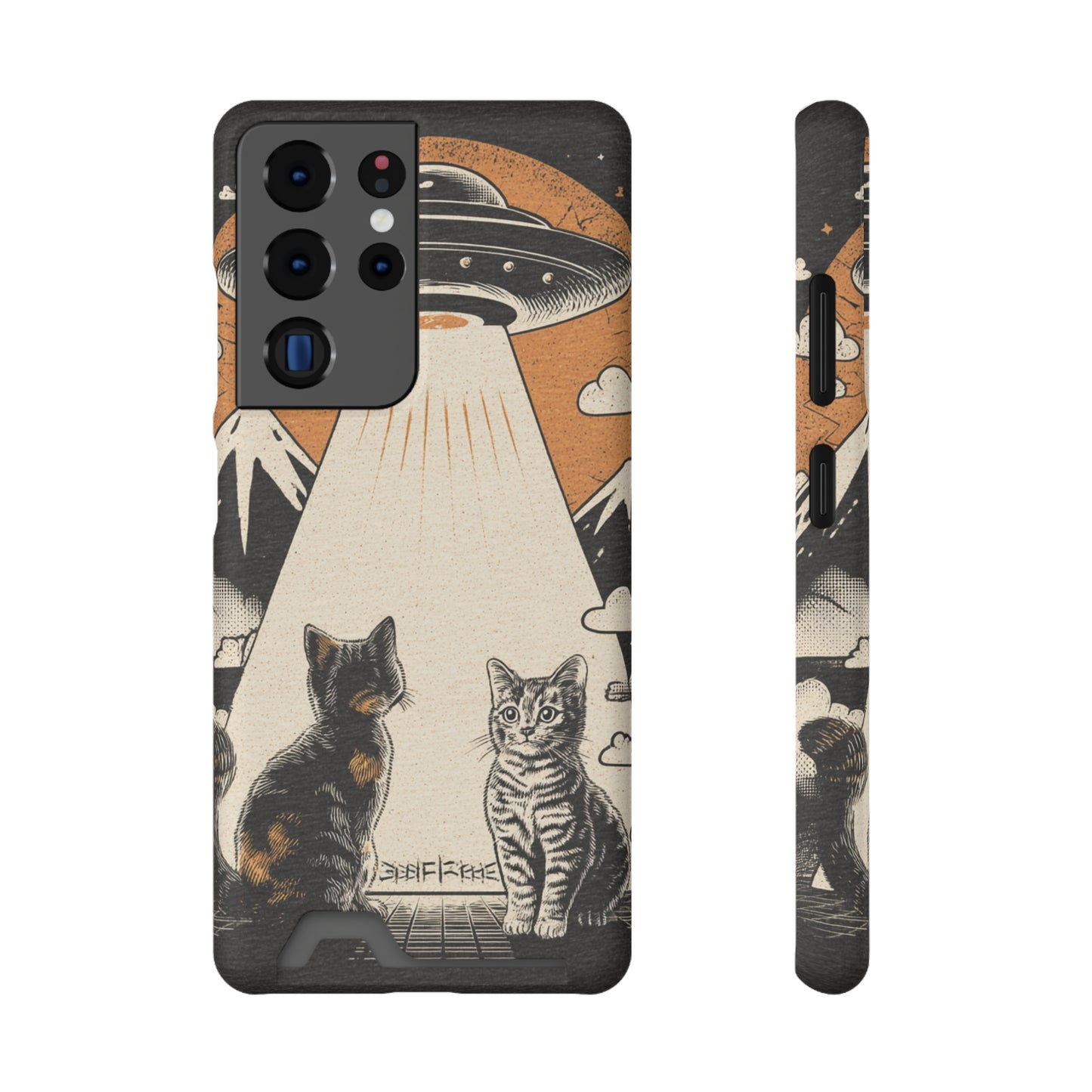 Cat UFO Phone Case with Card Holder, Trendy Cat Lover Gift, Space Theme Accessories, Unique Pet Owner Present, Cute Feline Design