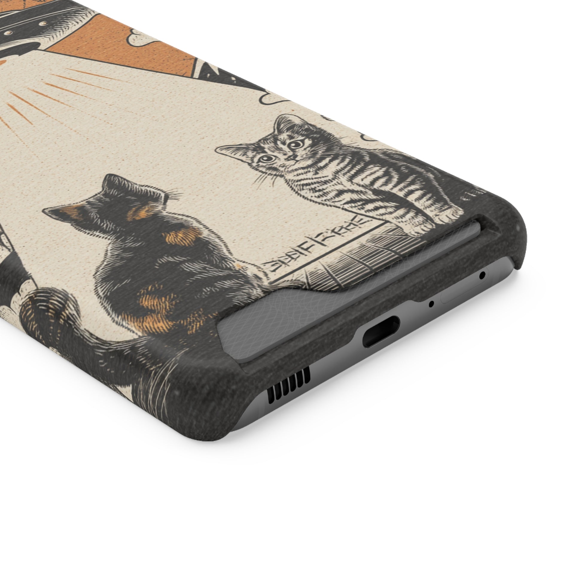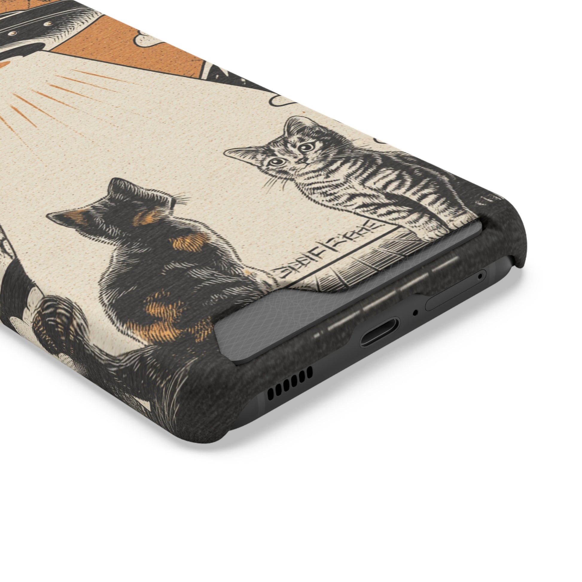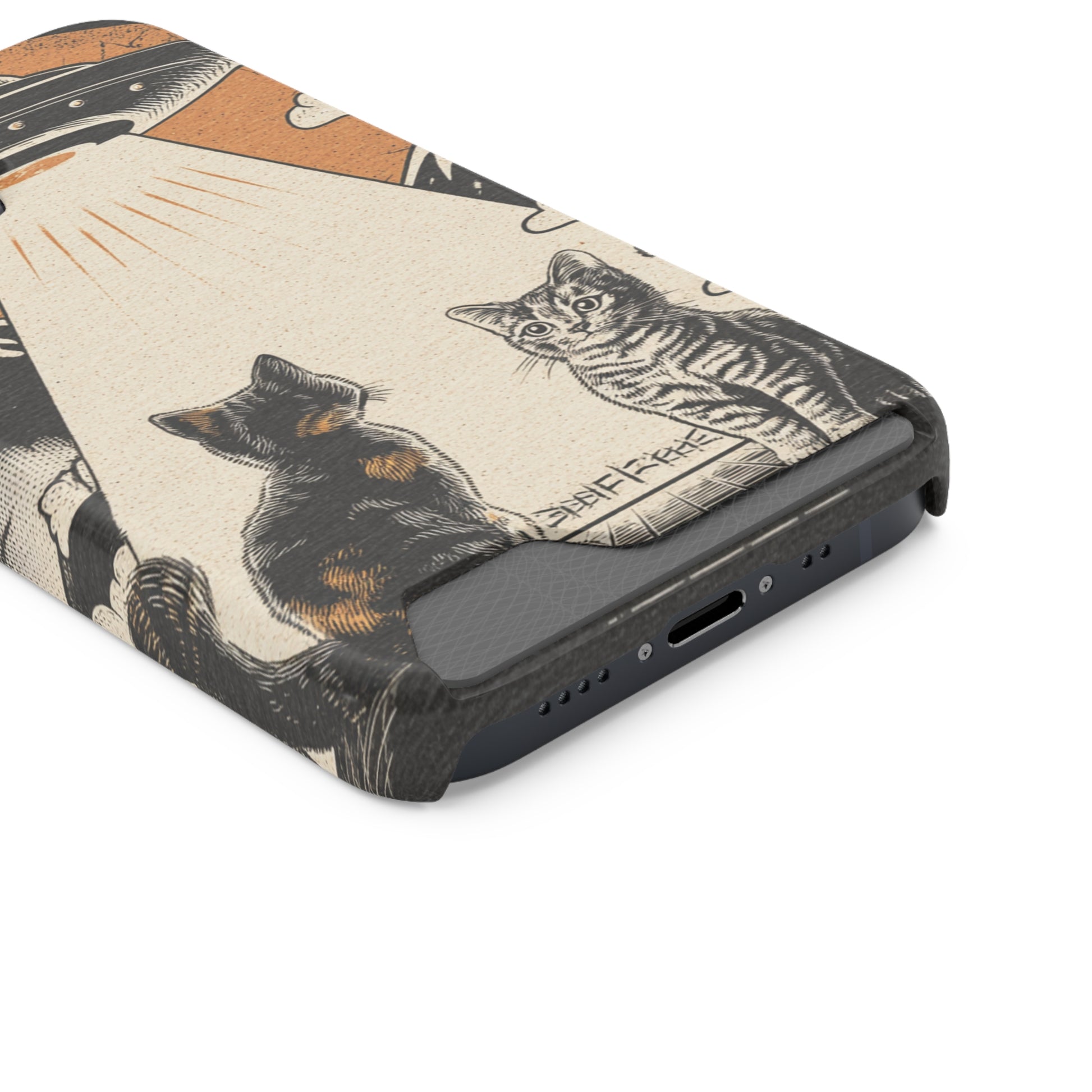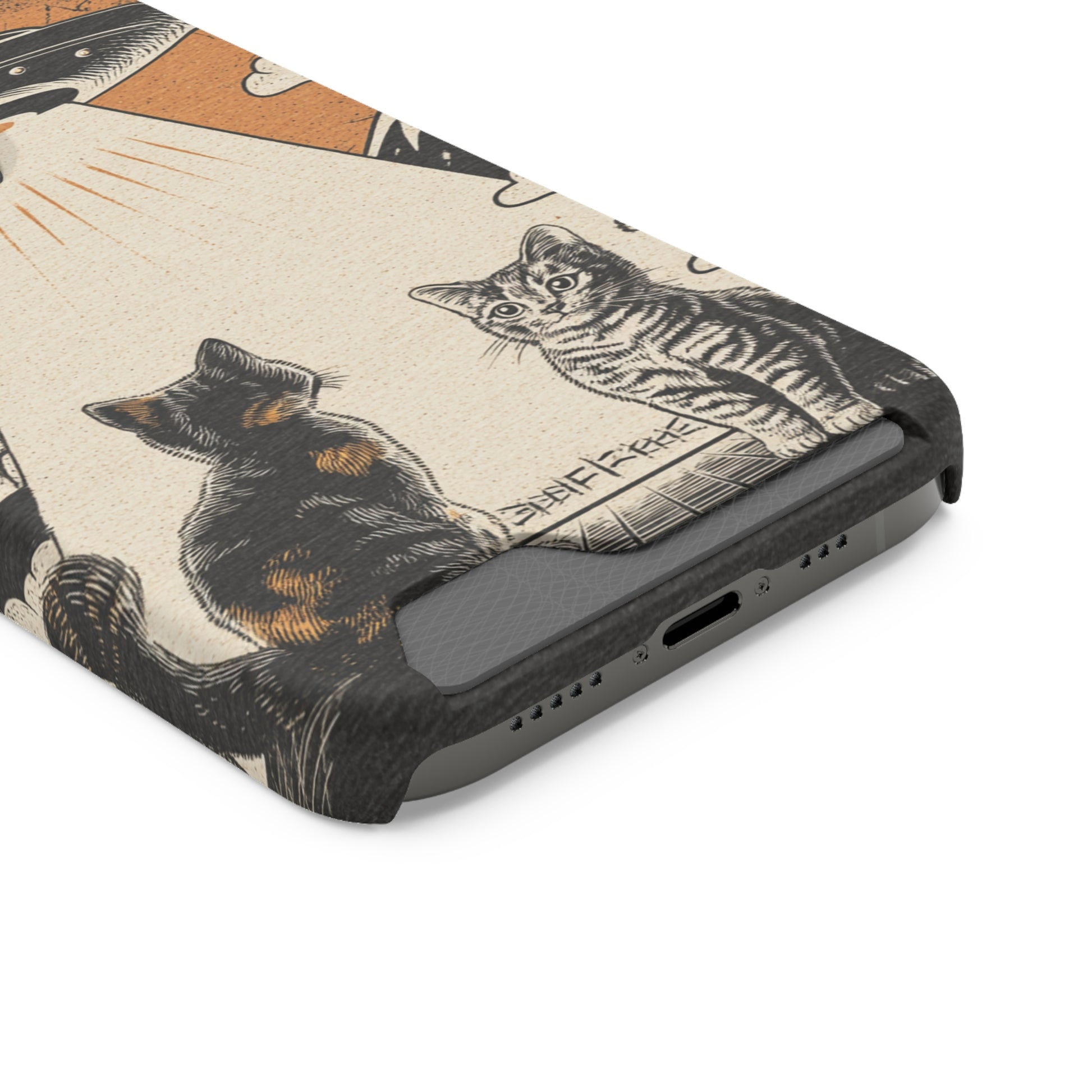 Cat UFO Phone Case with Card Holder, Trendy Cat Lover Gift, Space Theme Accessories, Unique Pet Owner Present, Cute Feline Design