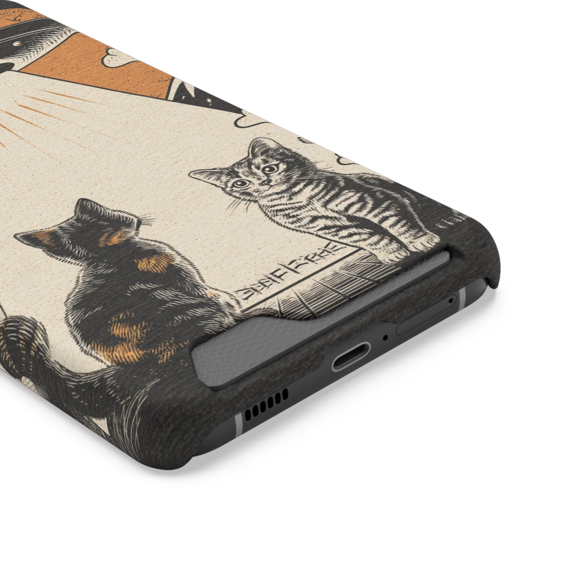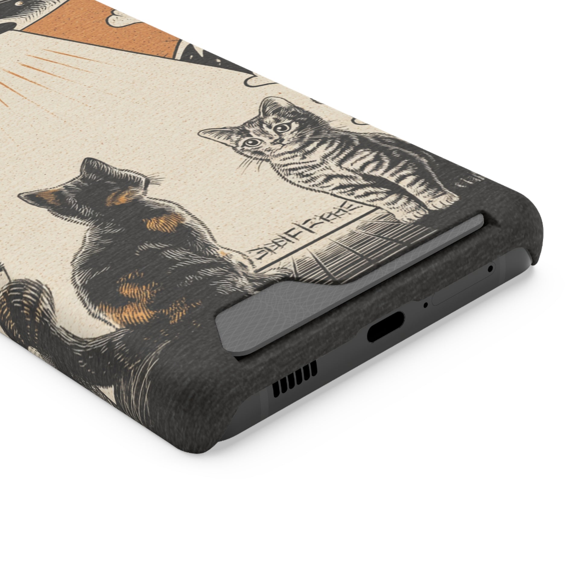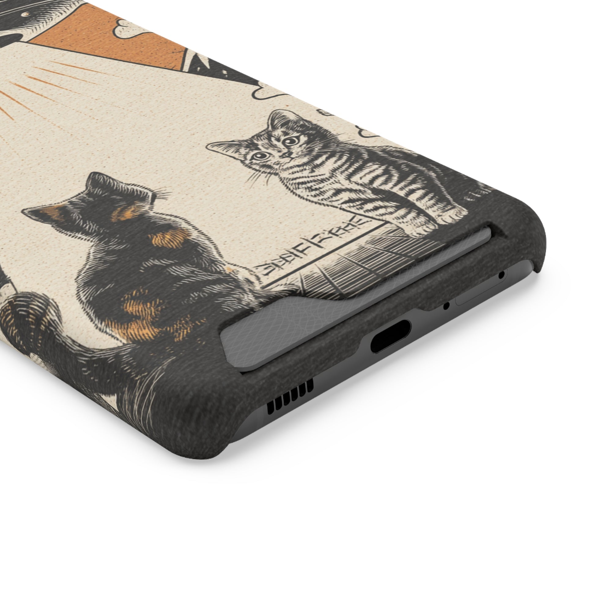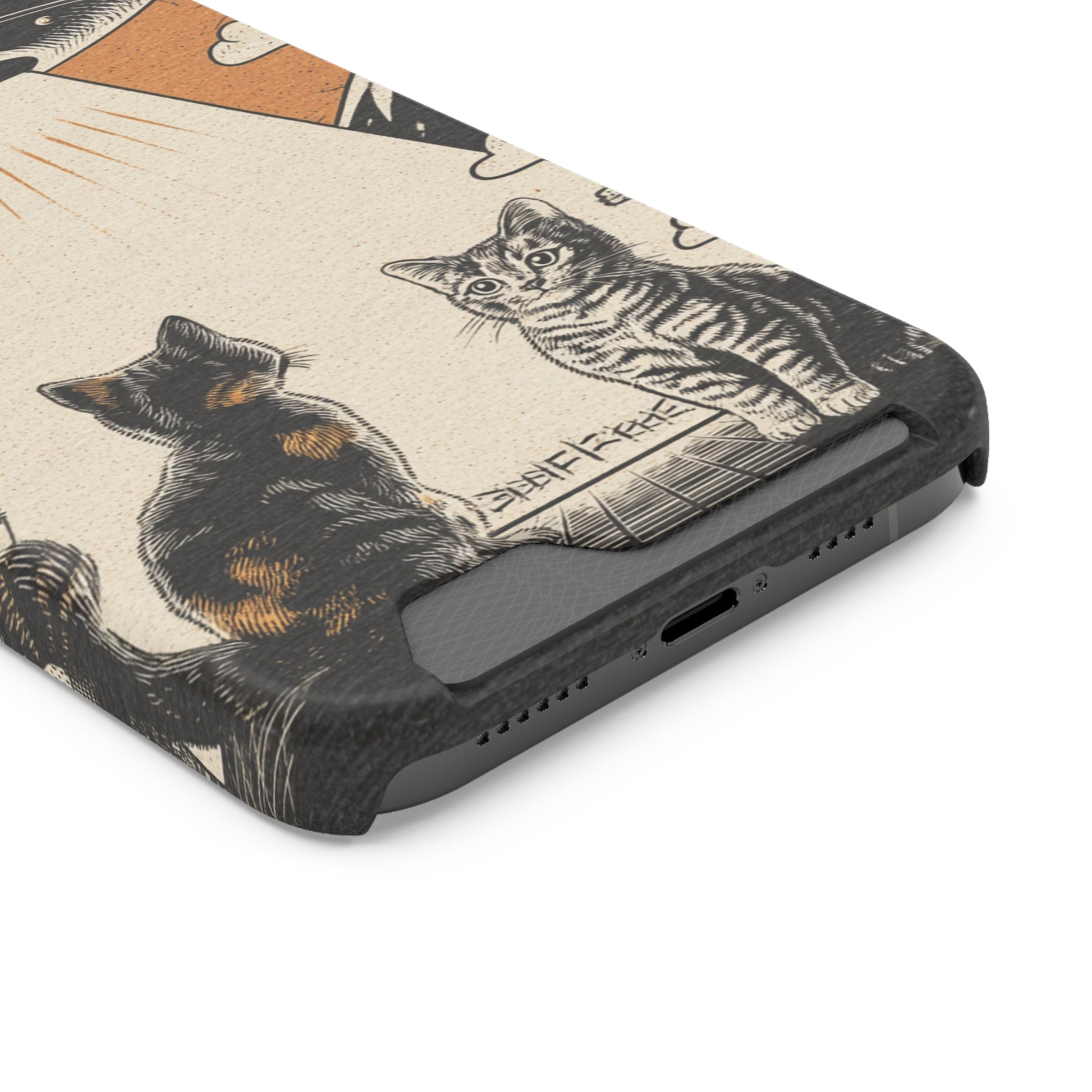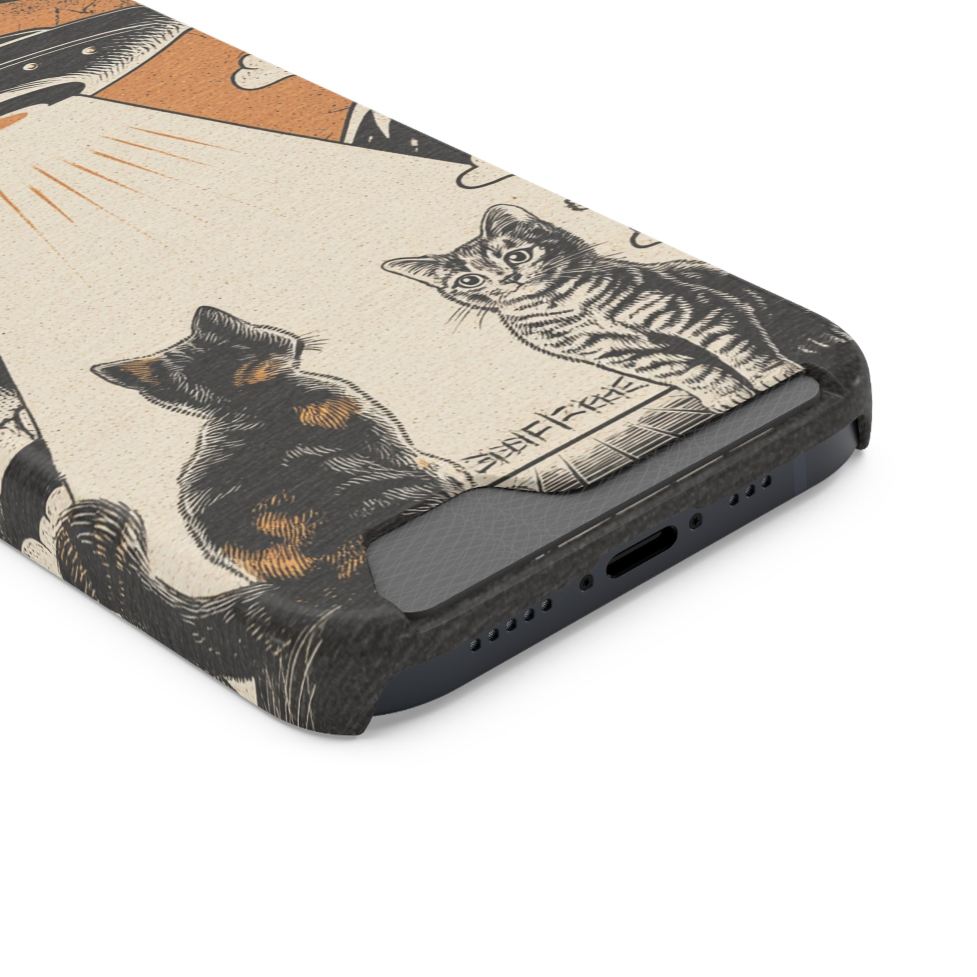 Cat UFO Phone Case with Card Holder, Trendy Cat Lover Gift, Space Theme Accessories, Unique Pet Owner Present, Cute Feline Design