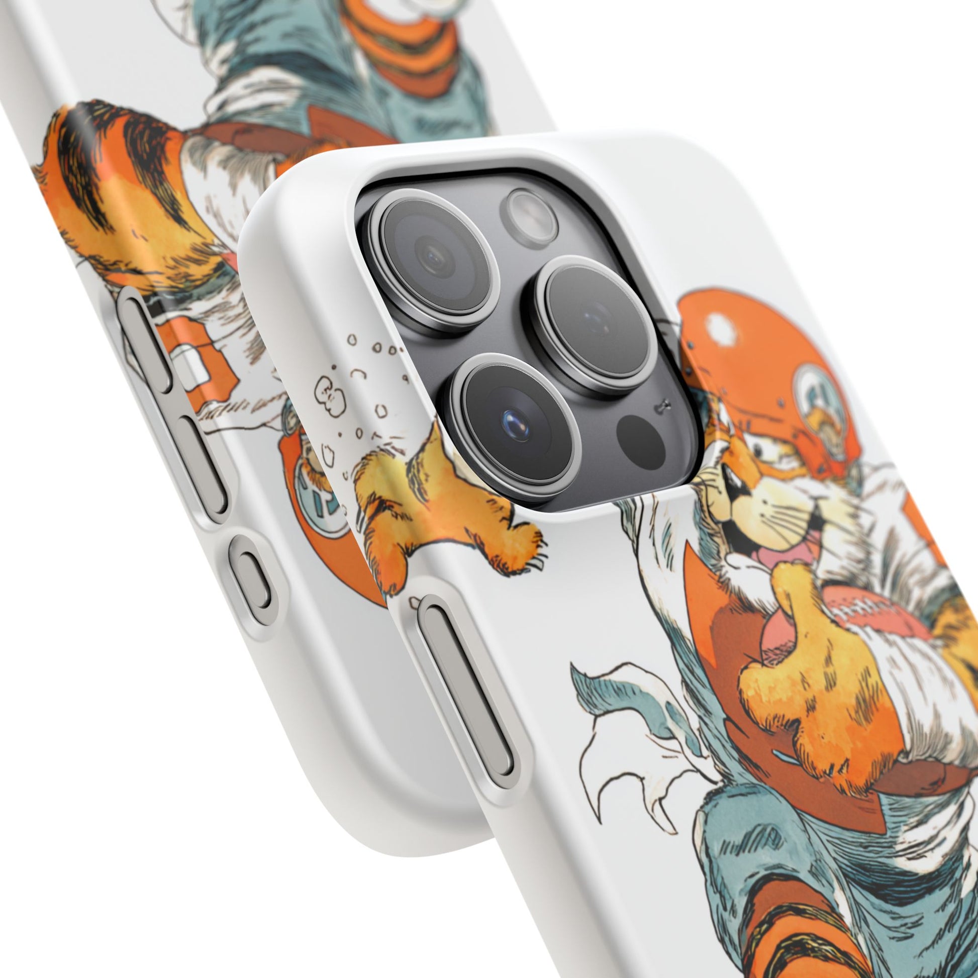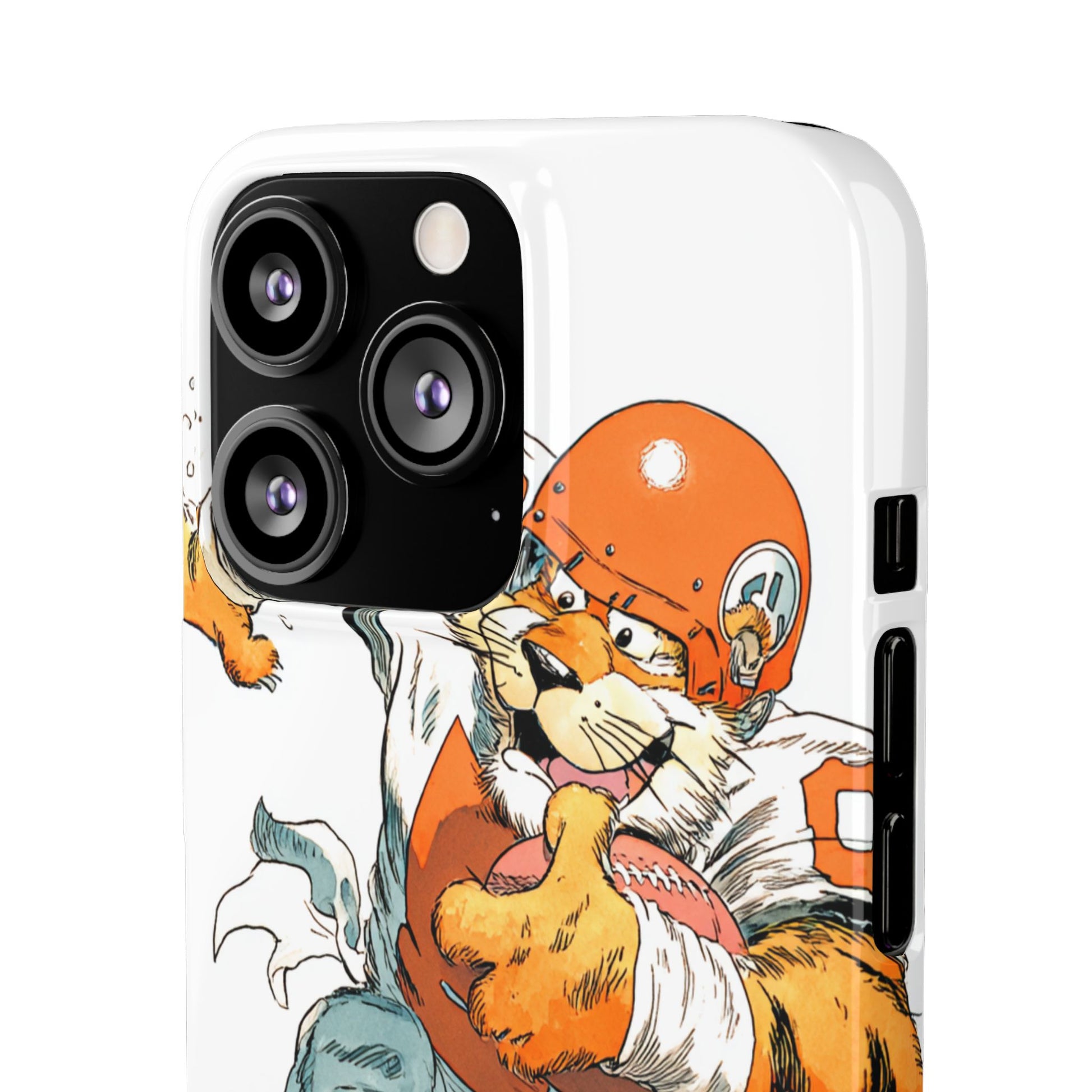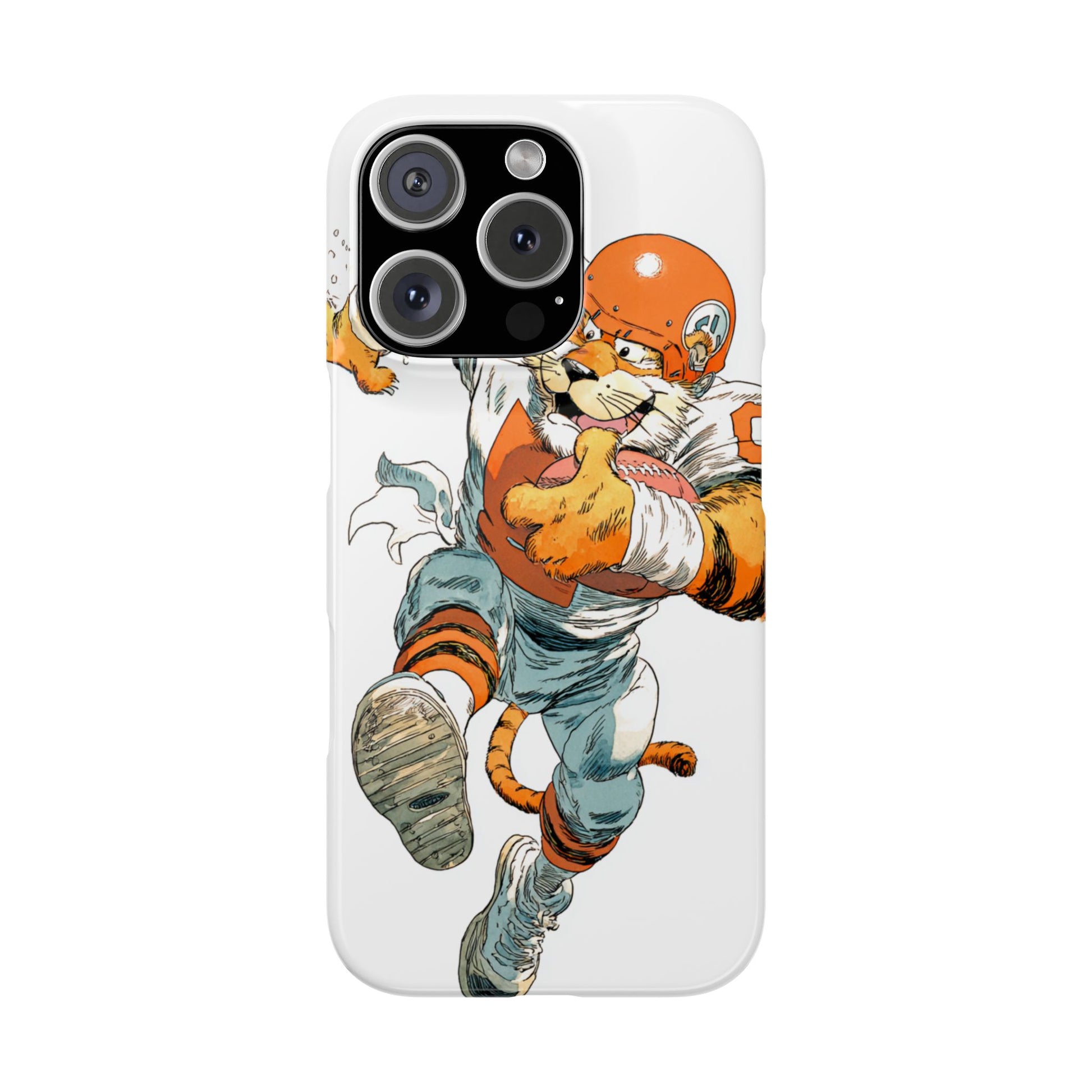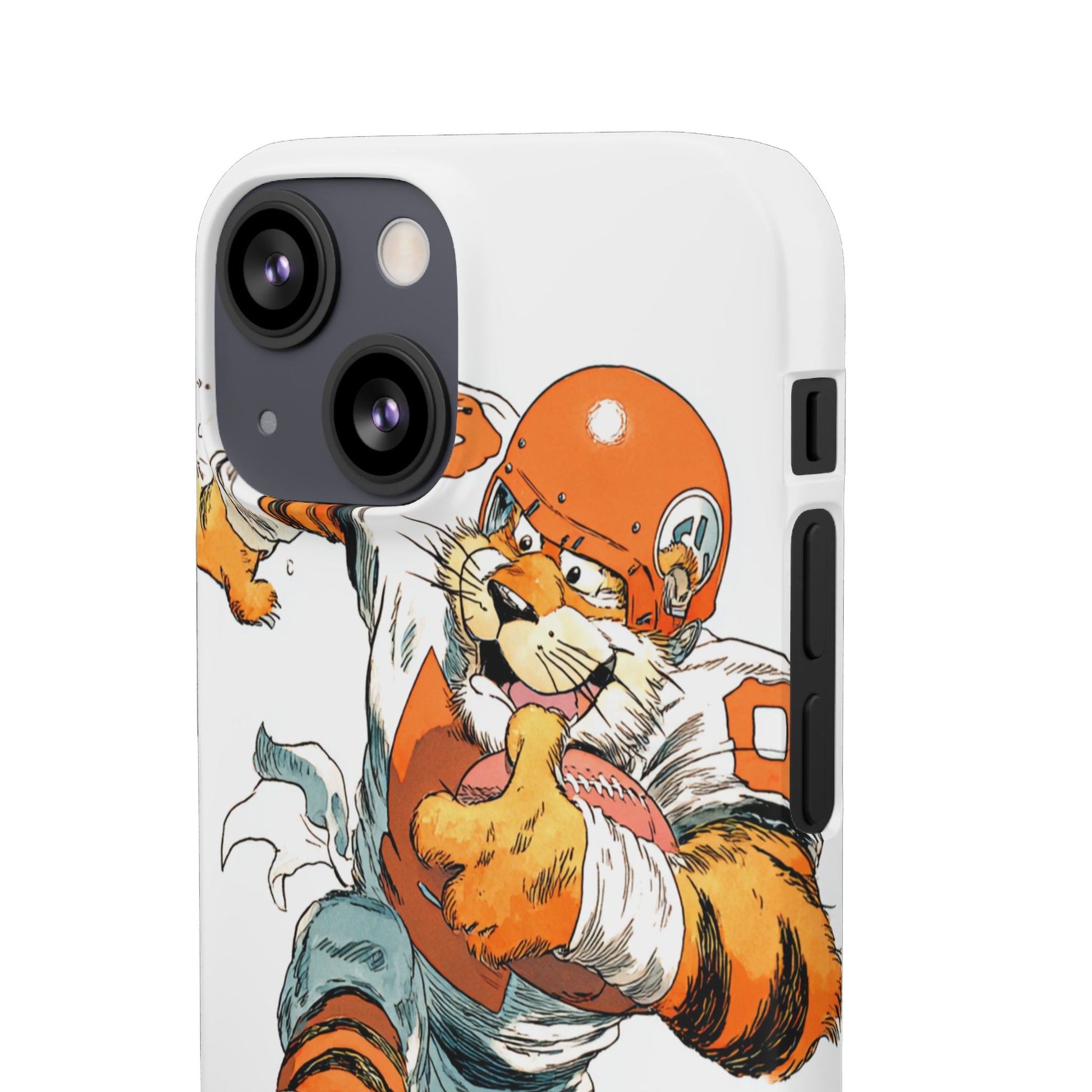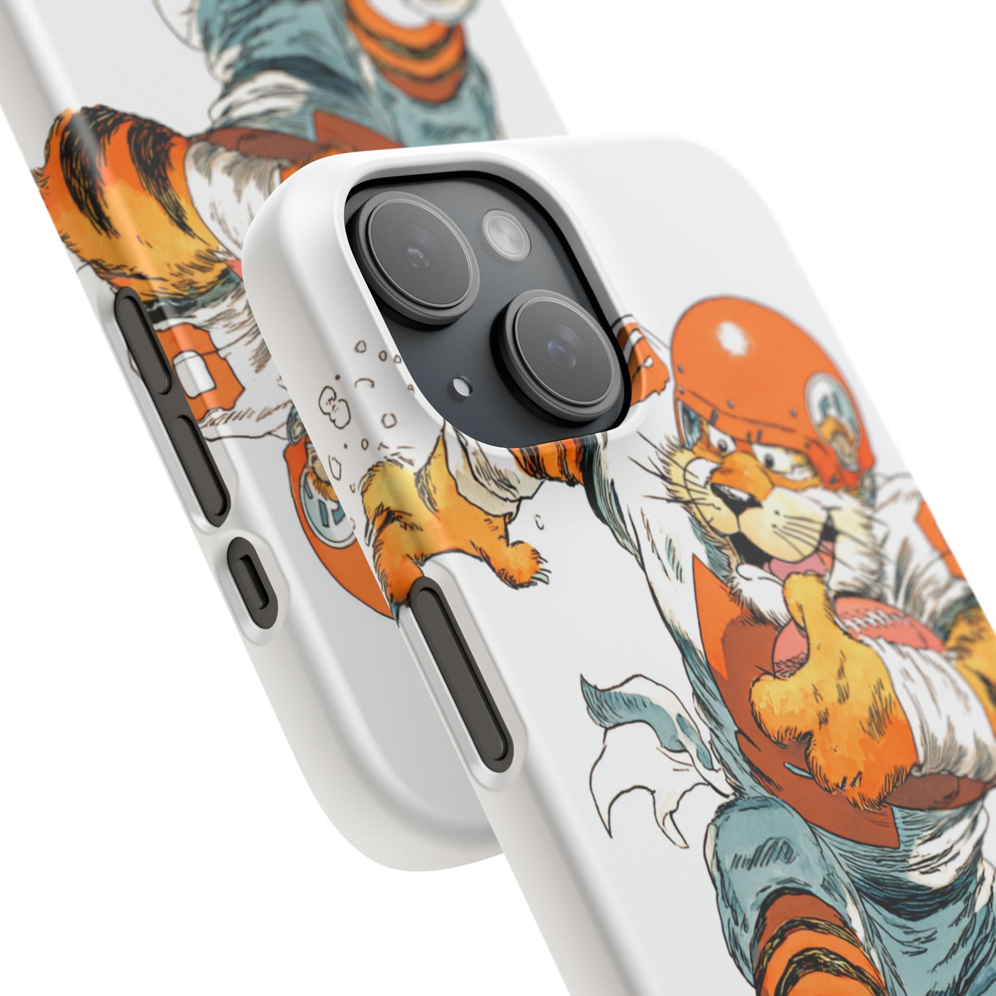 Vibrant Cincinnati Bengals Coartoon Art Tiger Playing Football phone case design for football fans. Adds a fun and sporty vibe to your phone. Perfect for adults who are avid football fans or supporters of the Cincinnati Bengals. Great for gifting on birthdays, game days, and holidays.