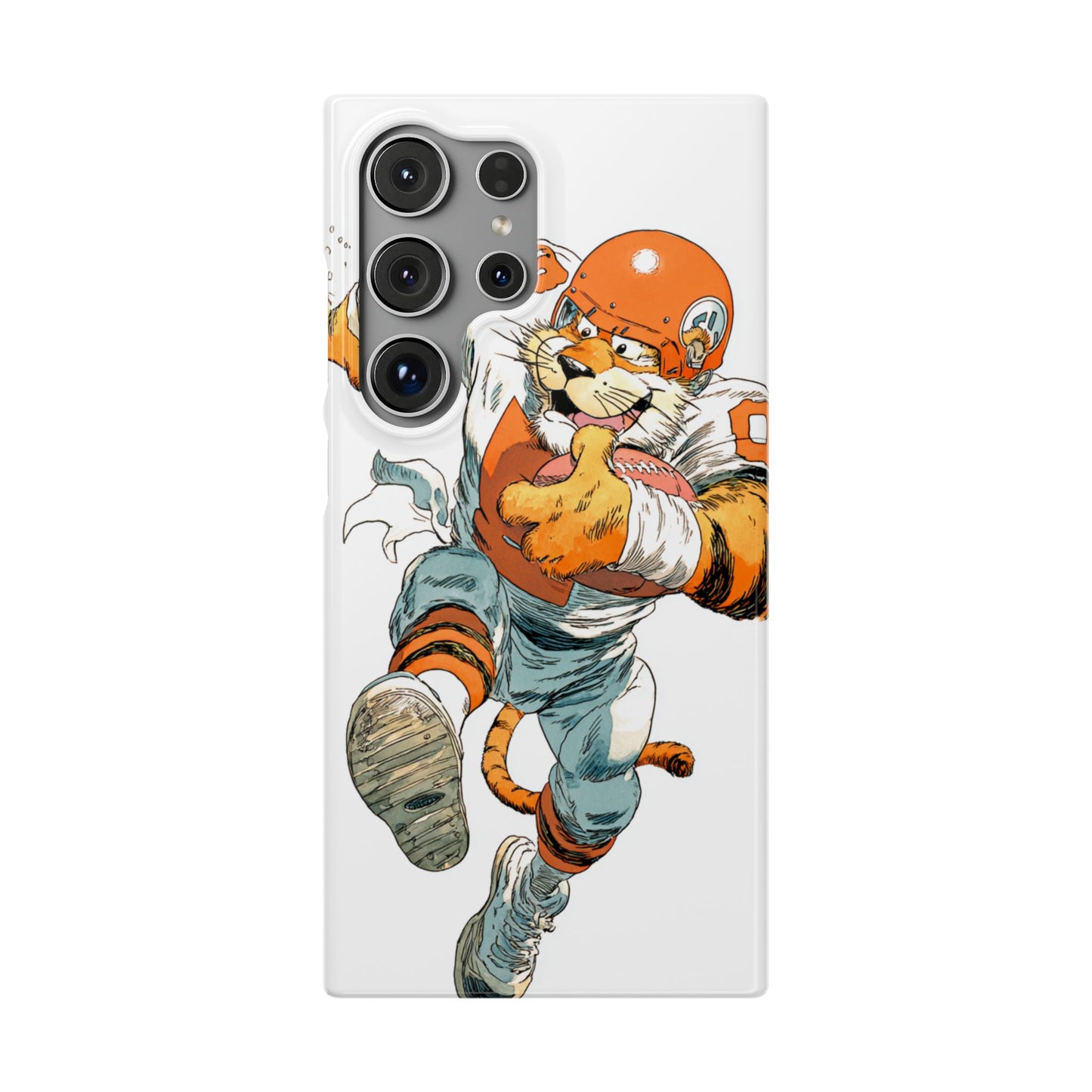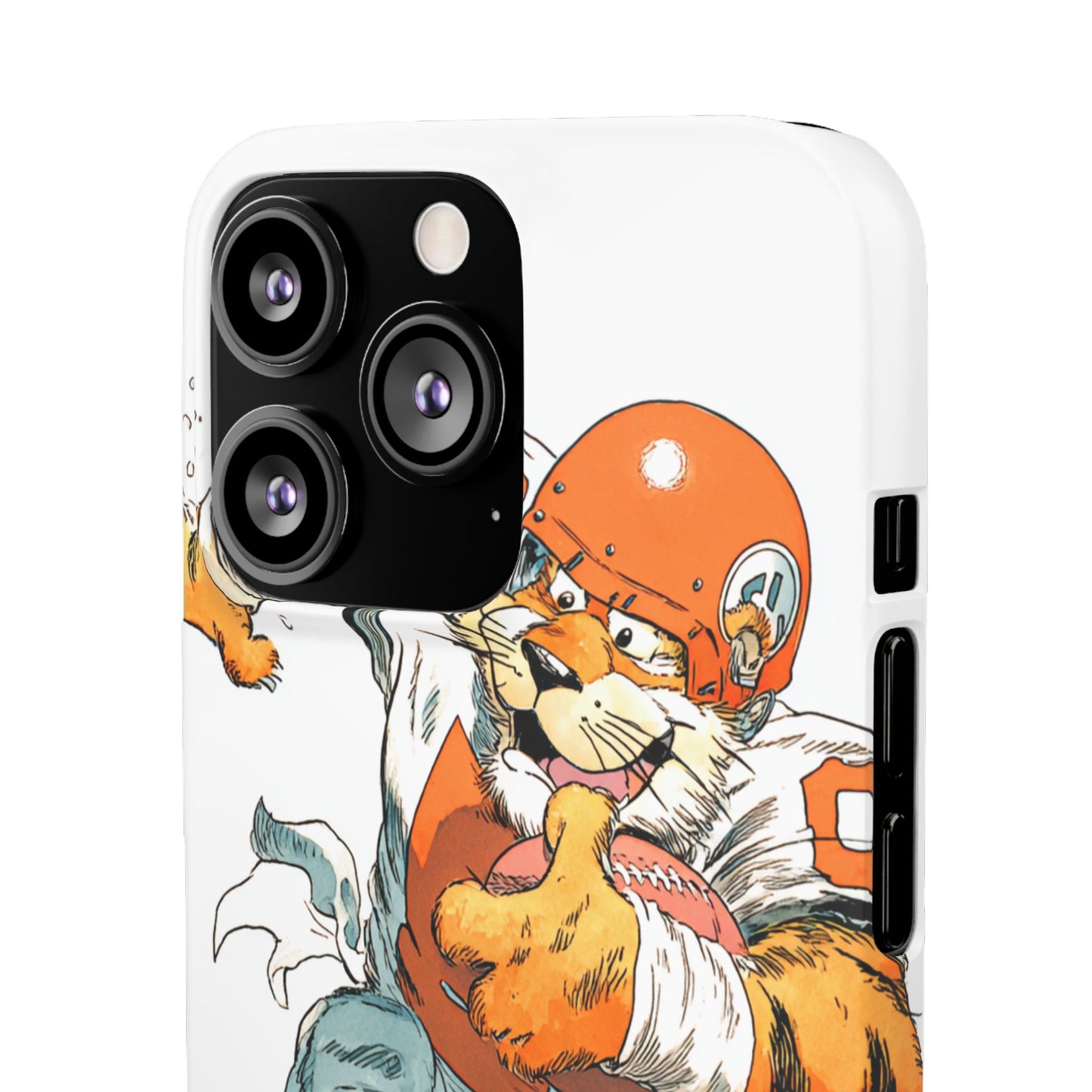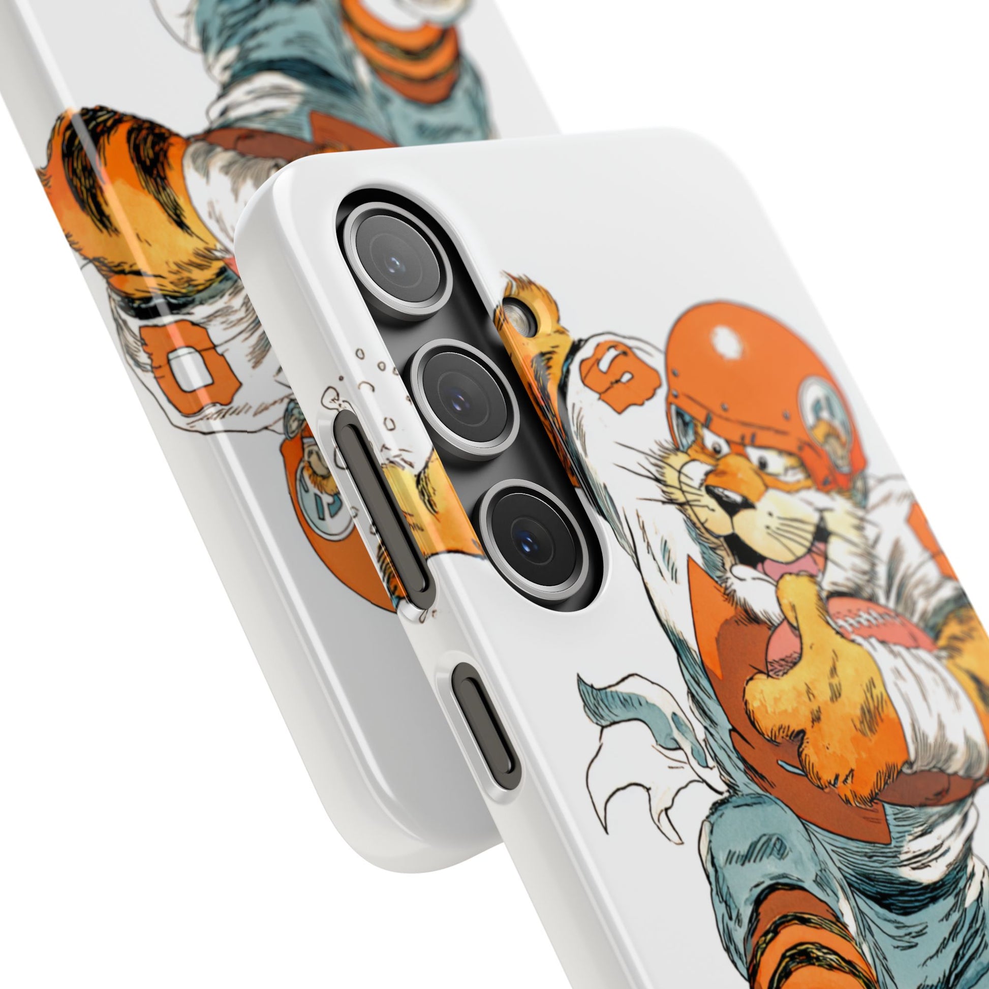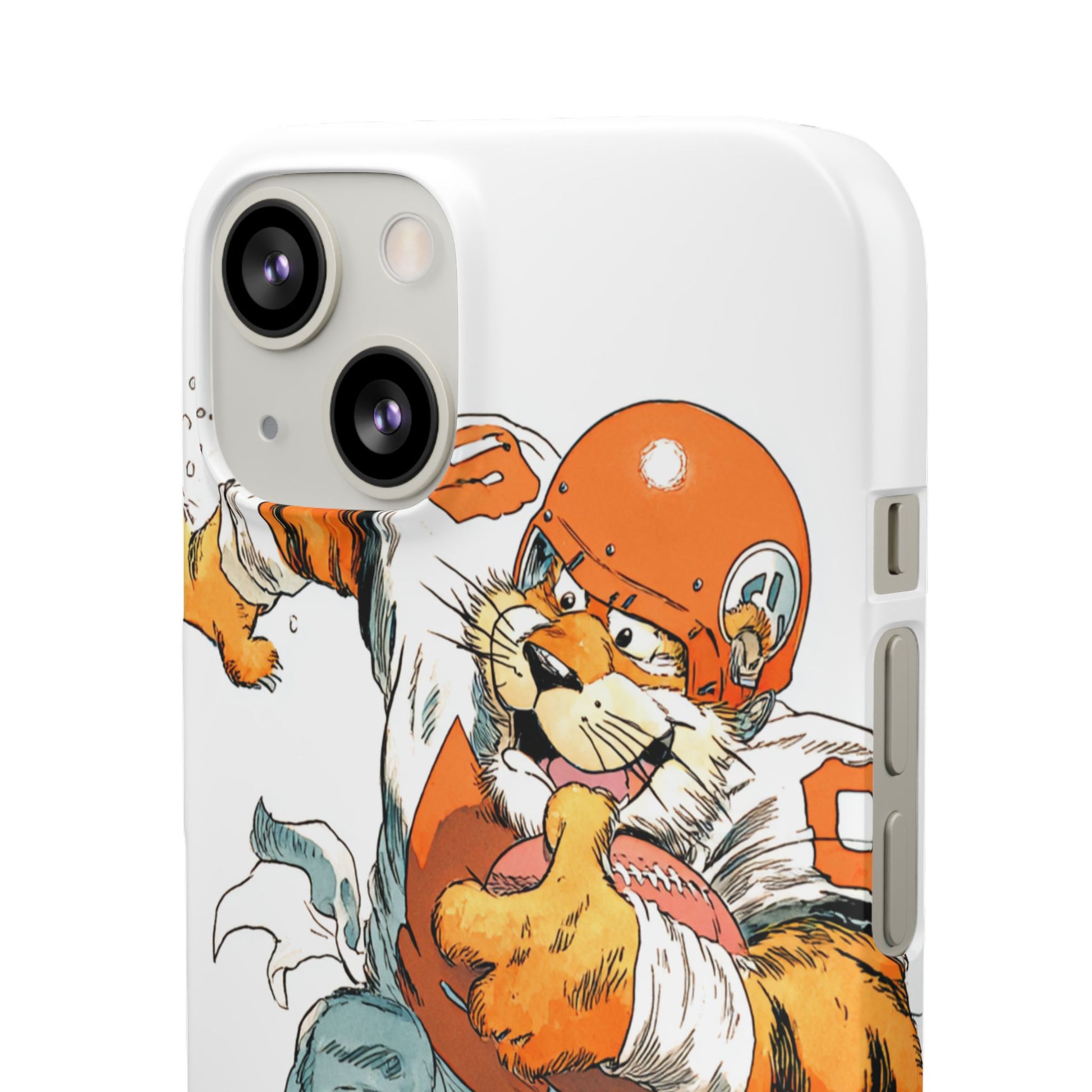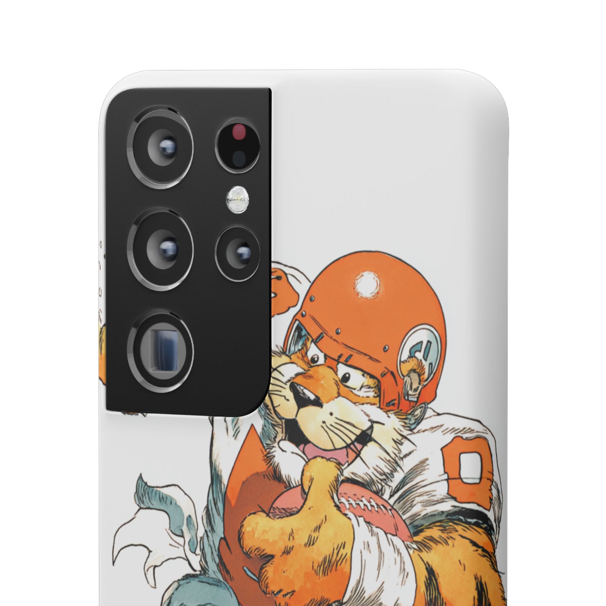 Vibrant Cincinnati Bengals Coartoon Art Tiger Playing Football phone case design for football fans. Adds a fun and sporty vibe to your phone. Perfect for adults who are avid football fans or supporters of the Cincinnati Bengals. Great for gifting on birthdays, game days, and holidays.