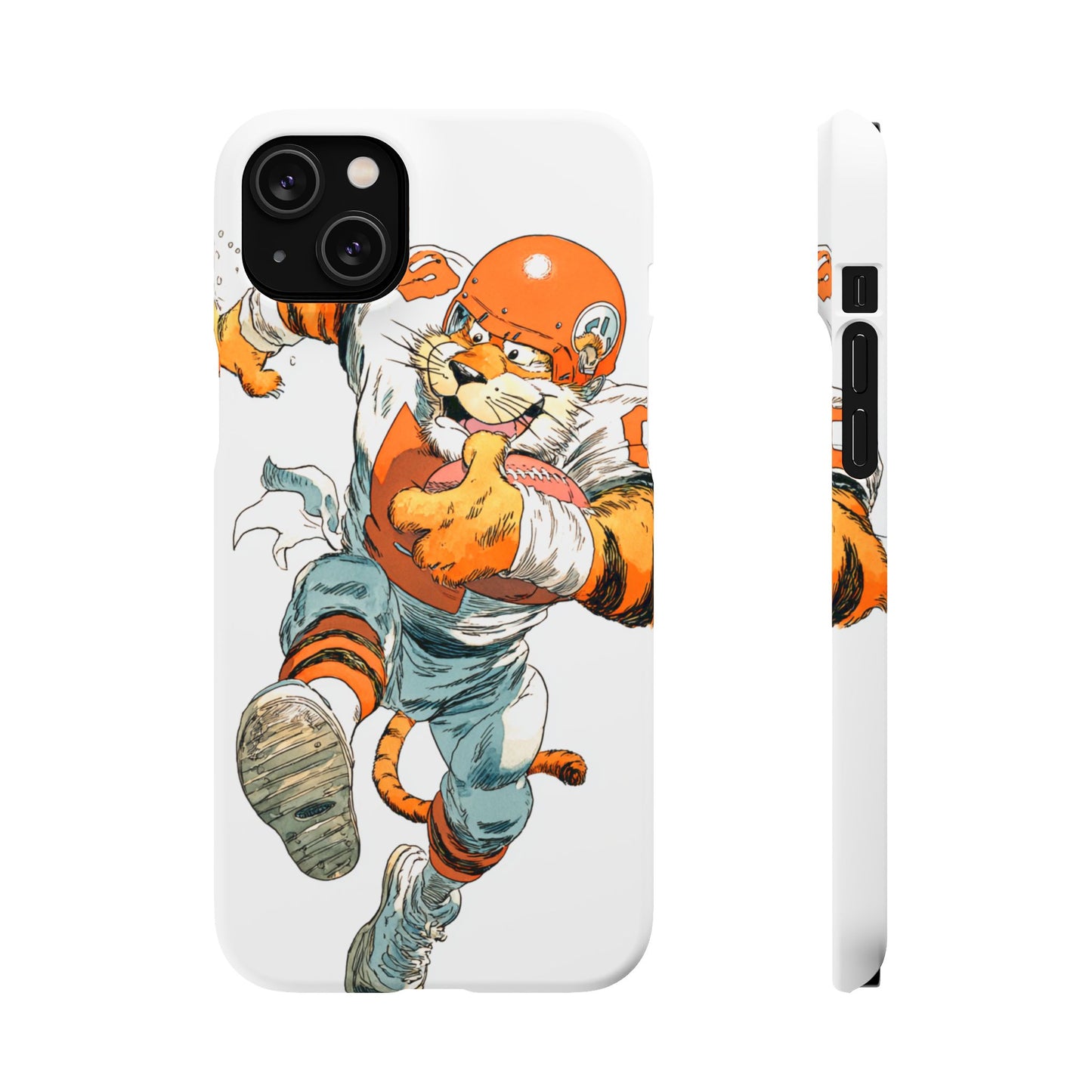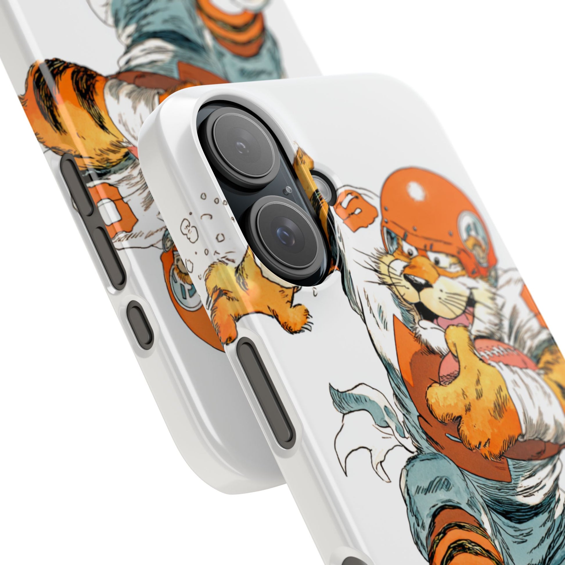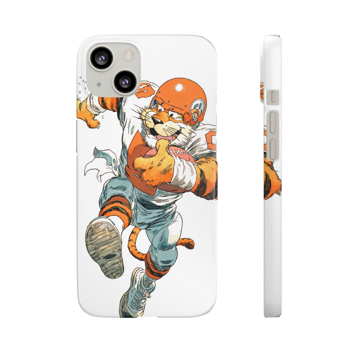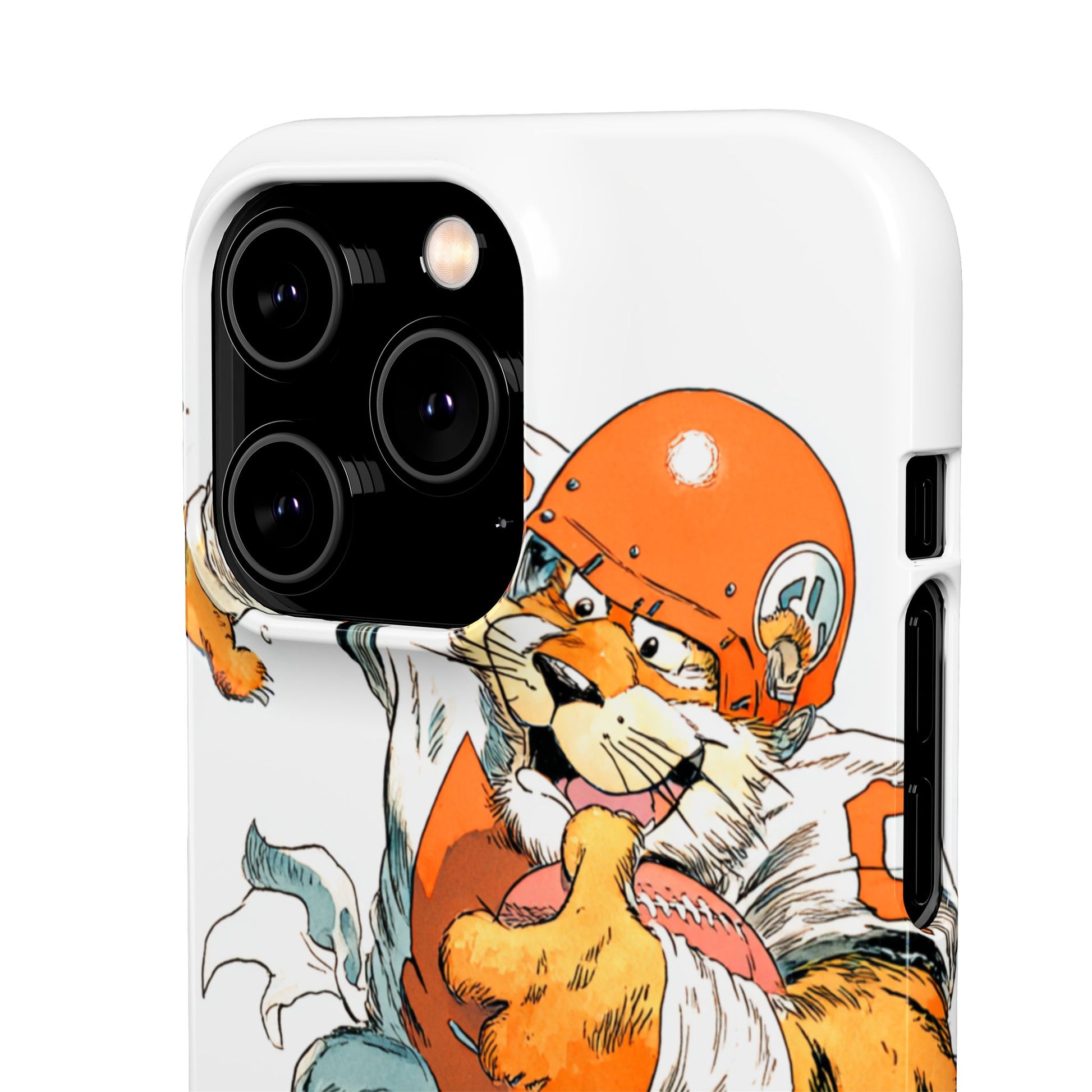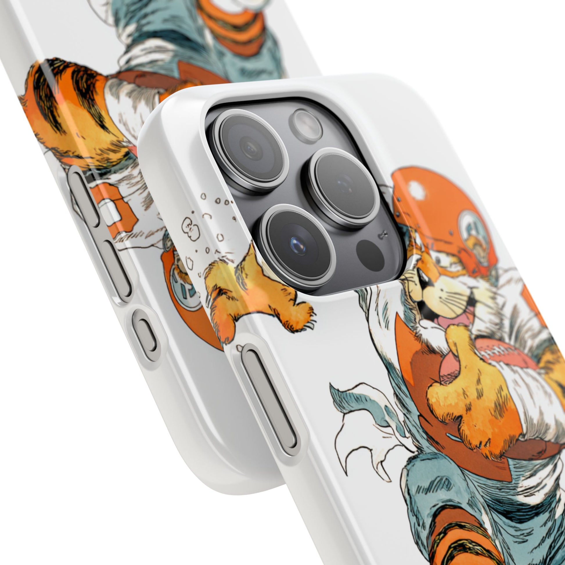Vibrant Cincinnati Bengals Coartoon Art Tiger Playing Football phone case design for football fans. Adds a fun and sporty vibe to your phone. Perfect for adults who are avid football fans or supporters of the Cincinnati Bengals. Great for gifting on birthdays, game days, and holidays.