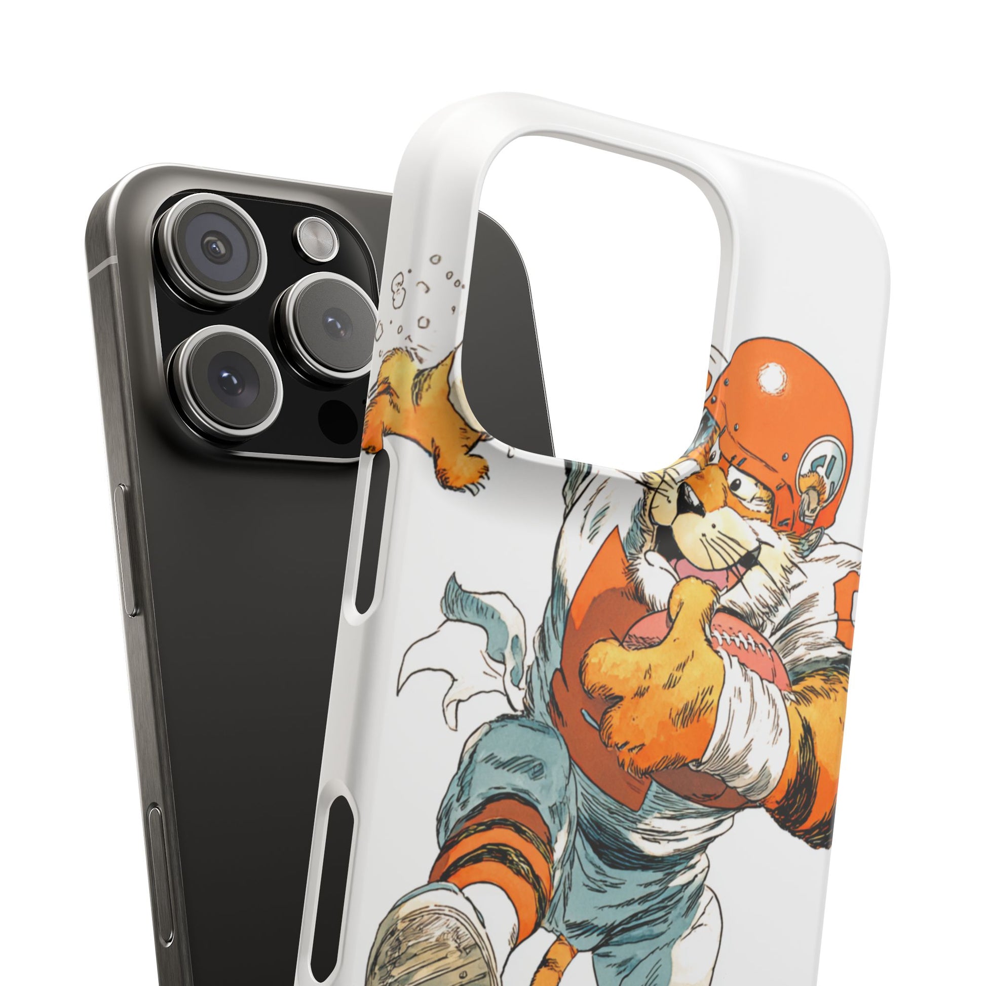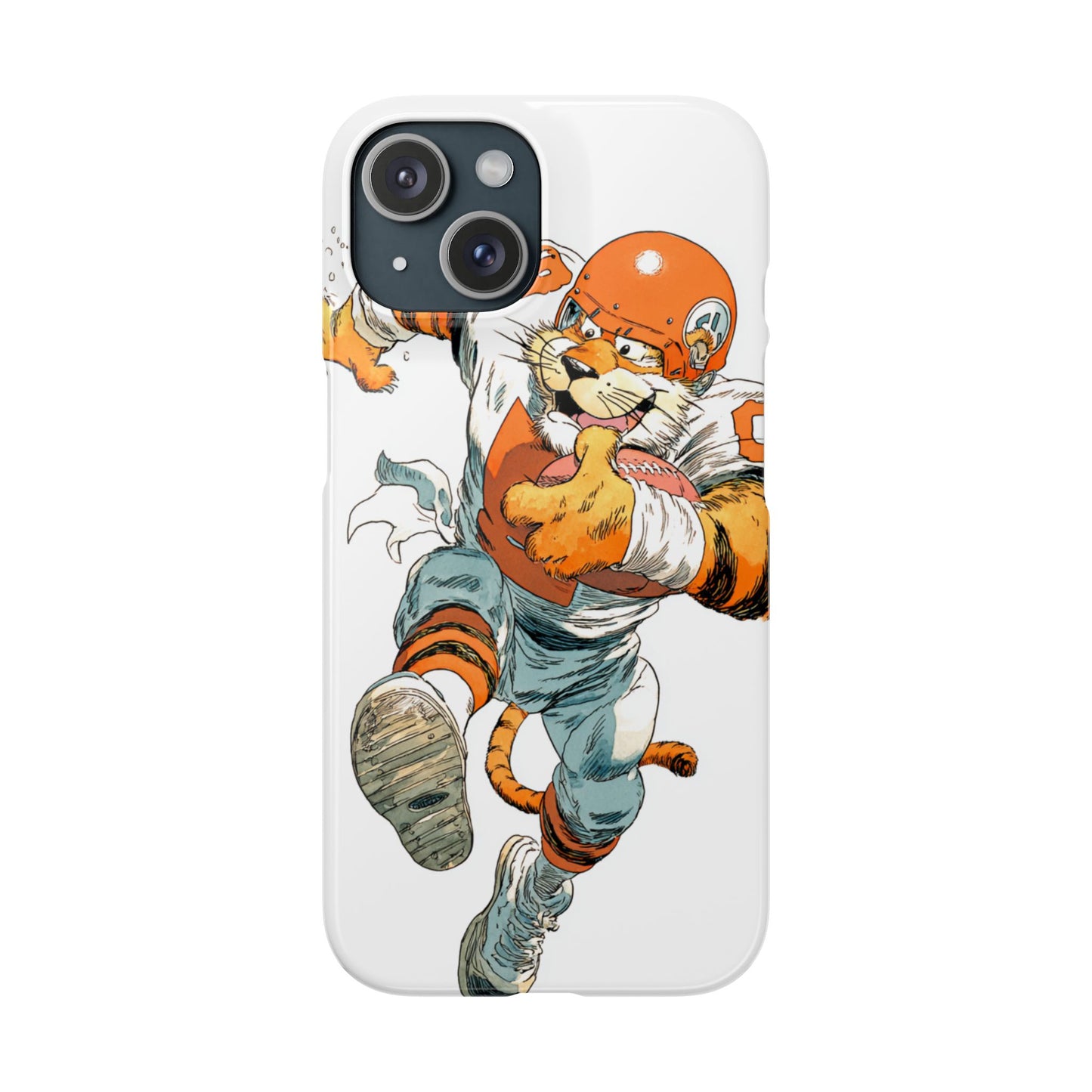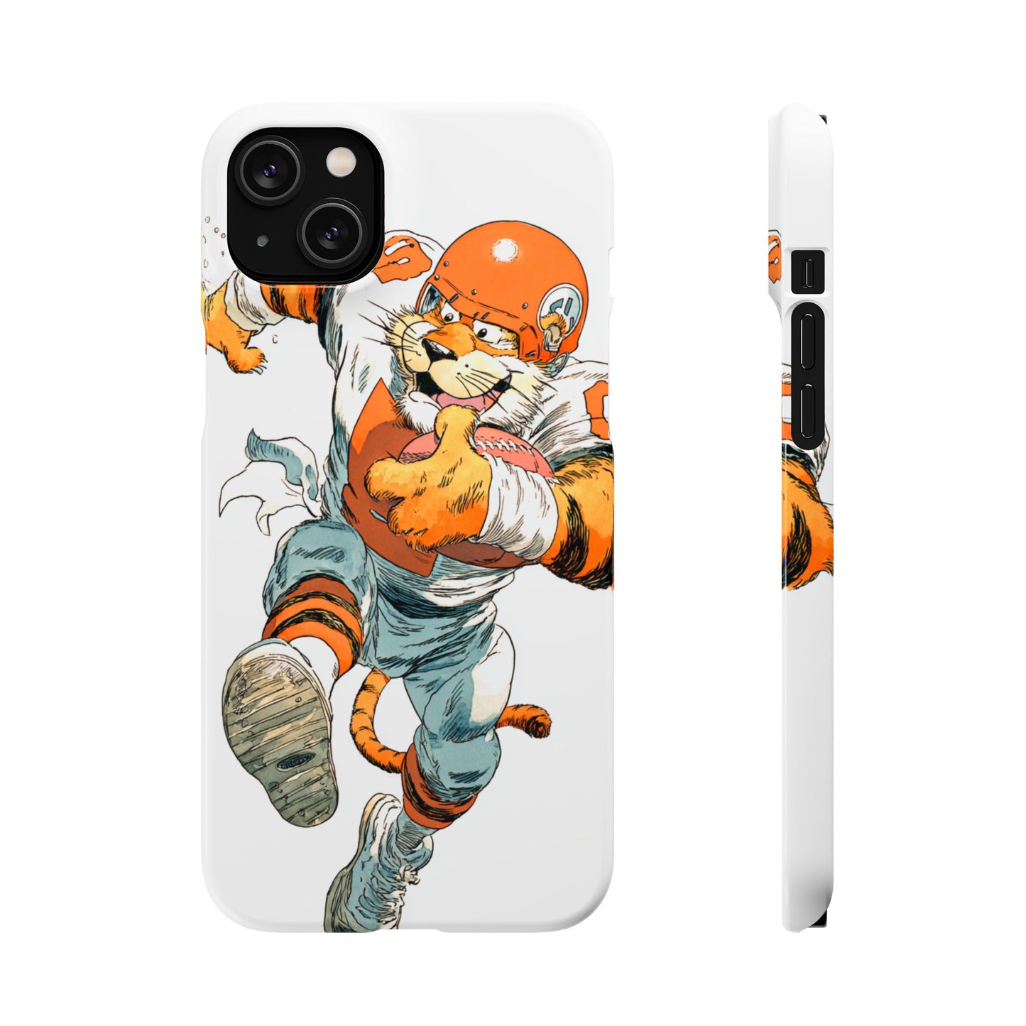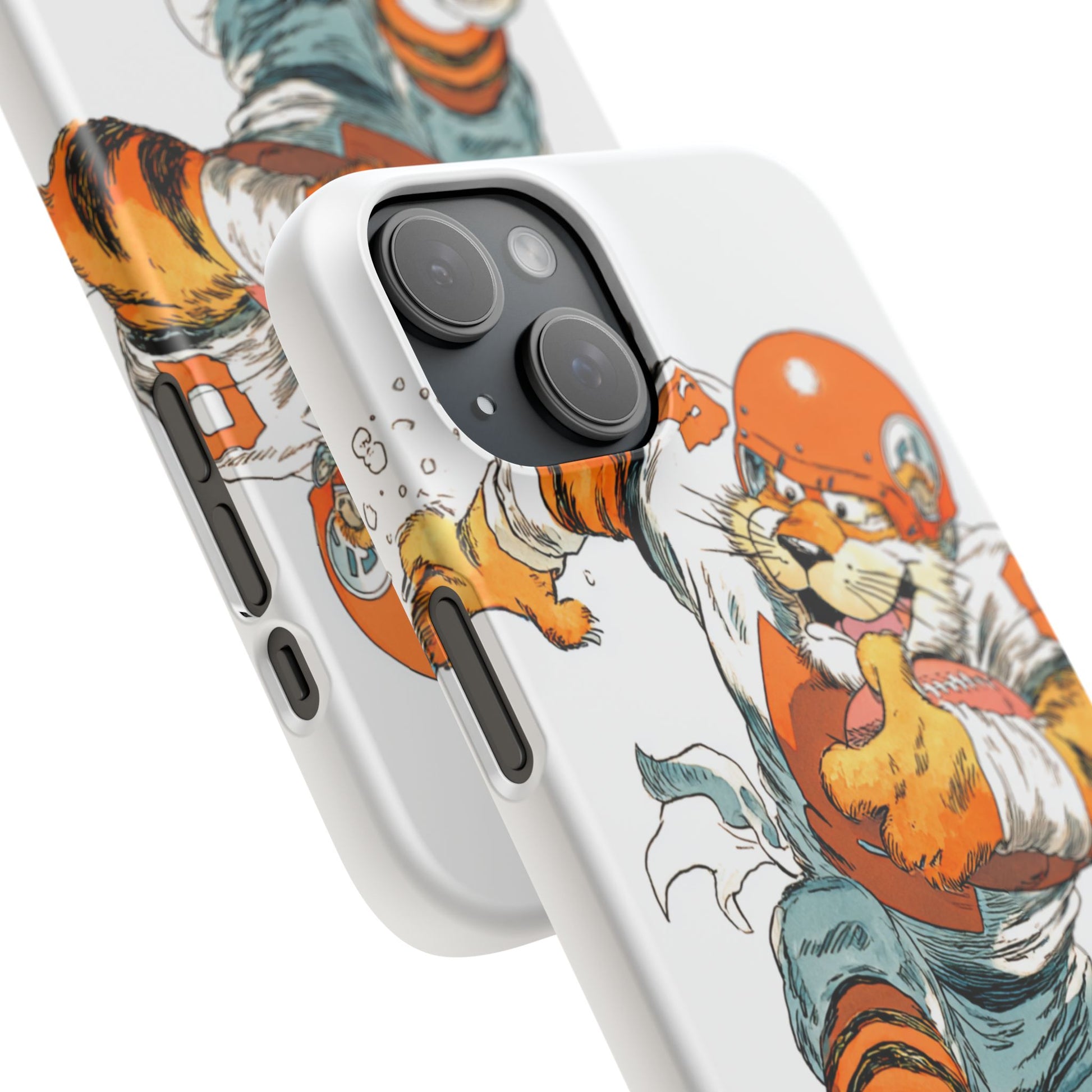 Vibrant Cincinnati Bengals Coartoon Art Tiger Playing Football phone case design for football fans. Adds a fun and sporty vibe to your phone. Perfect for adults who are avid football fans or supporters of the Cincinnati Bengals. Great for gifting on birthdays, game days, and holidays.