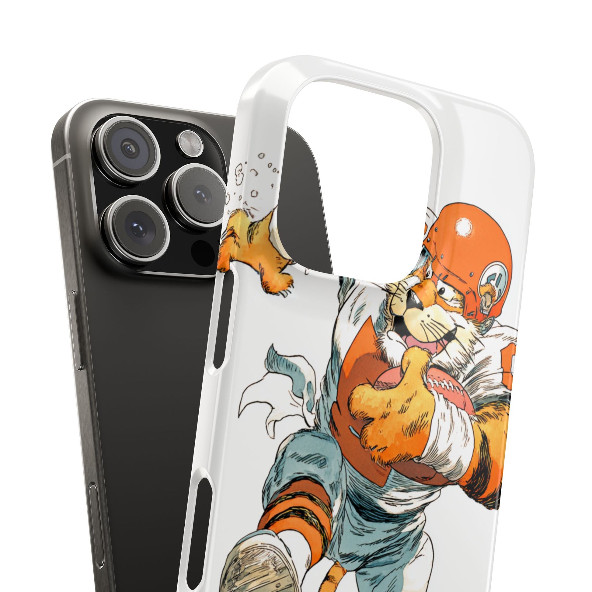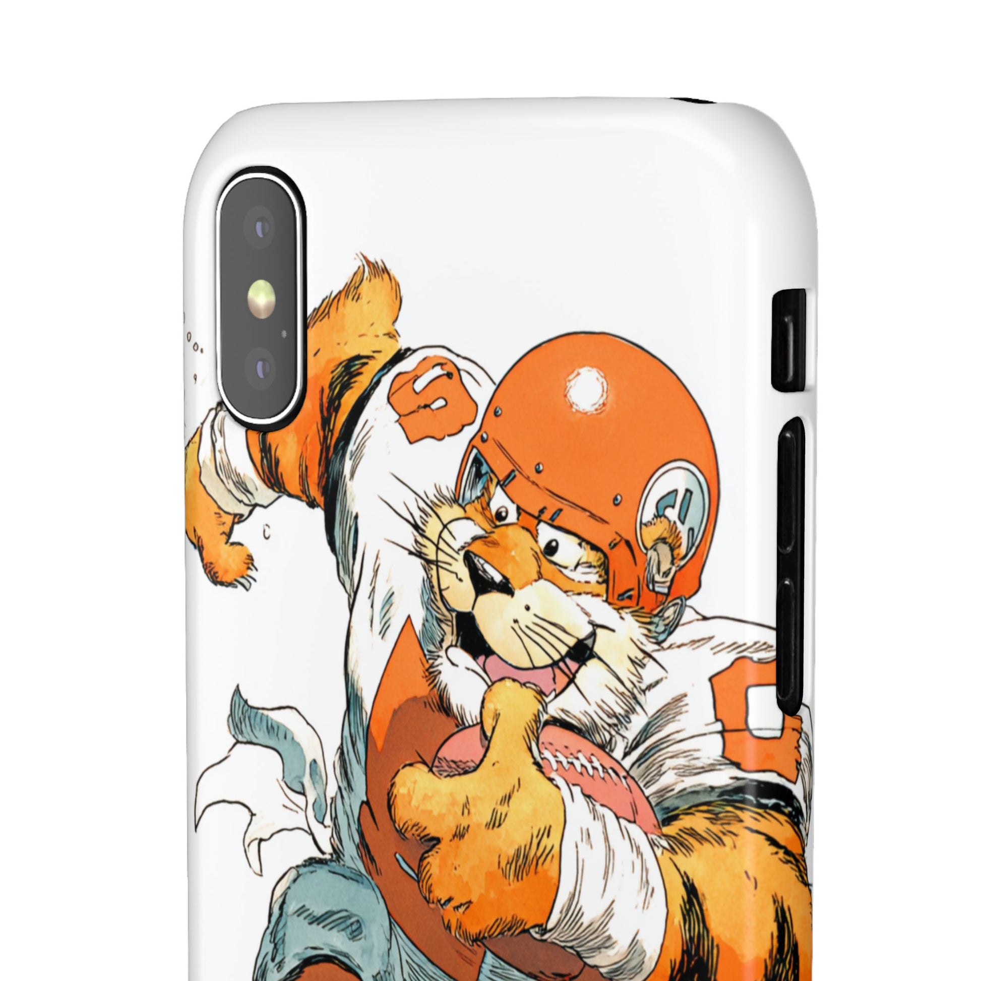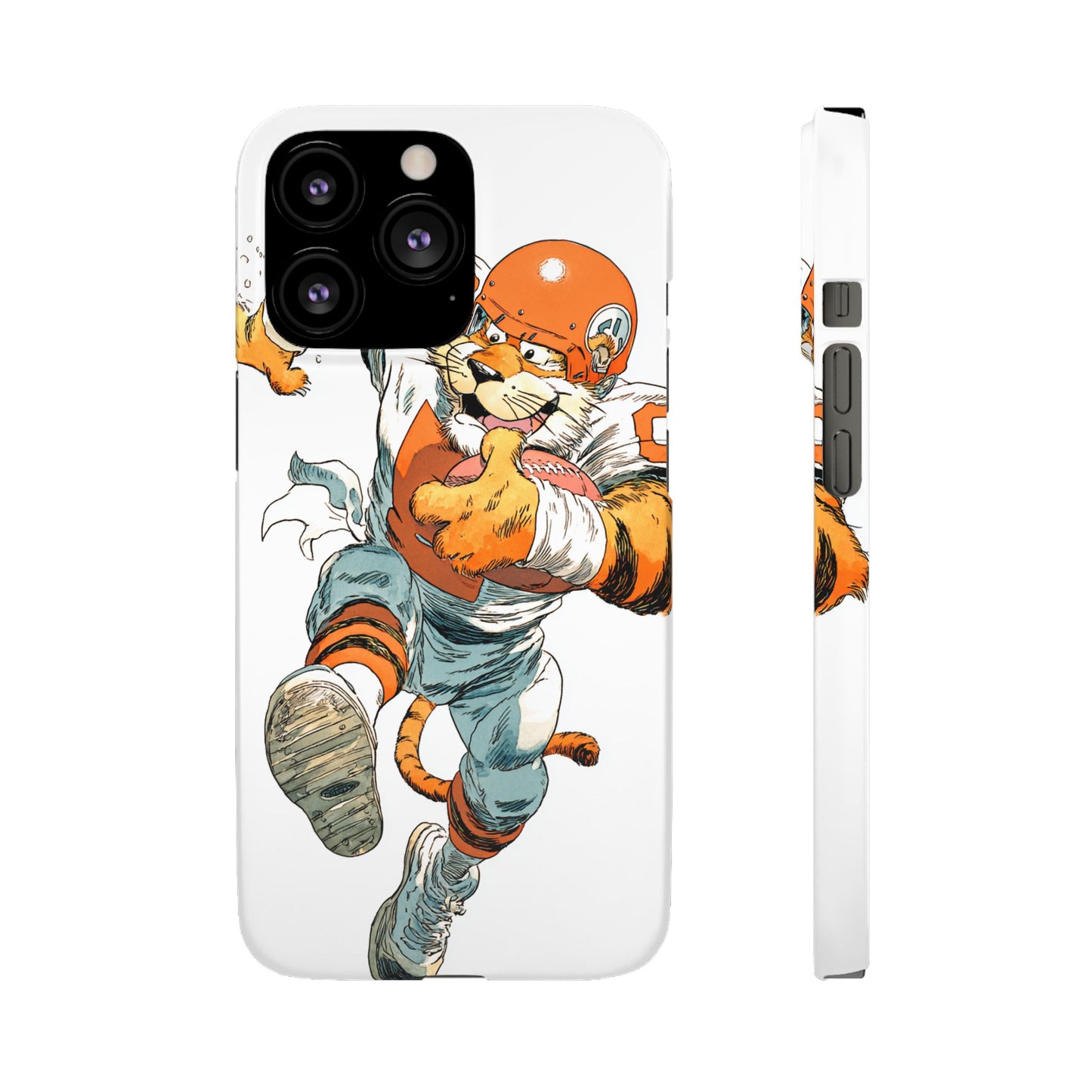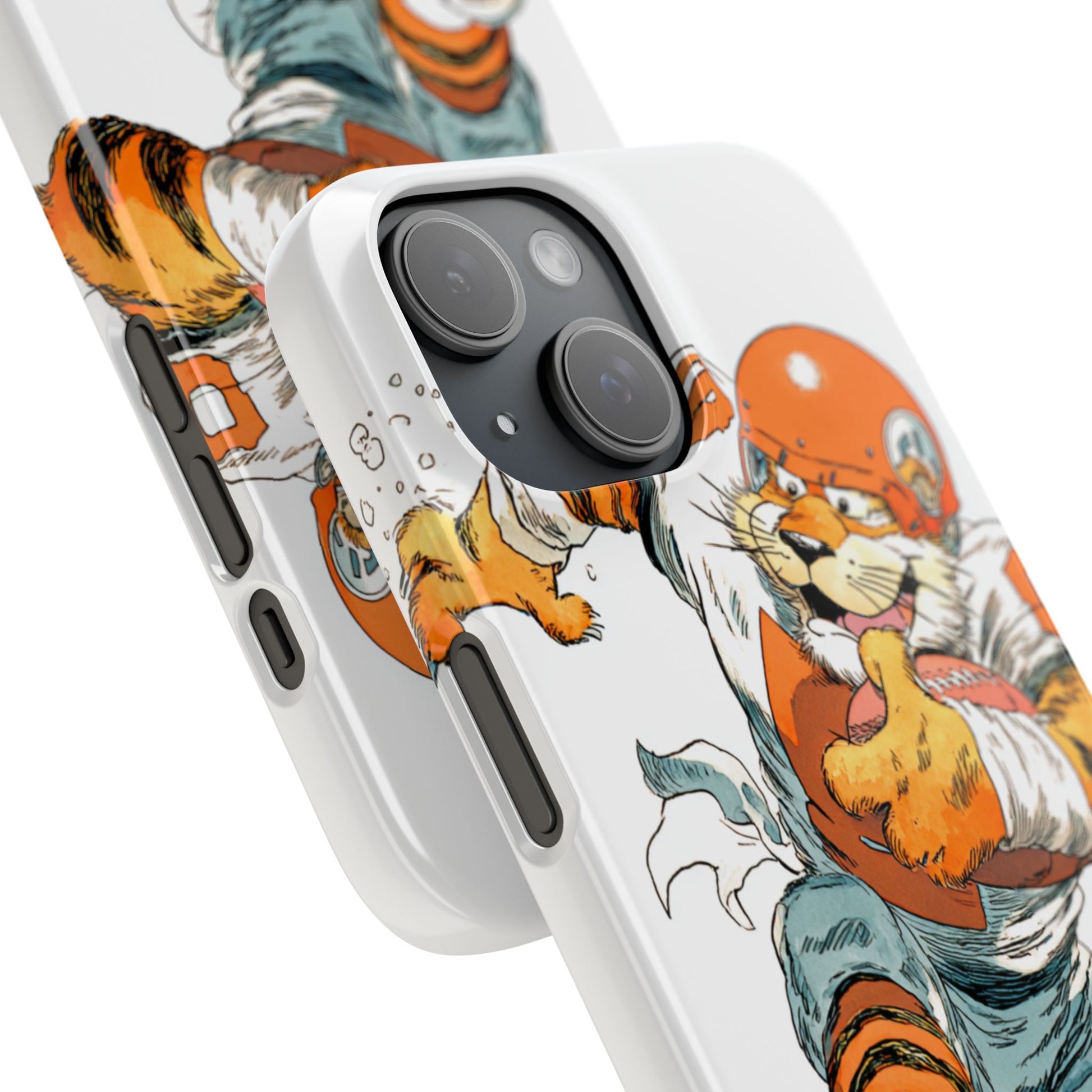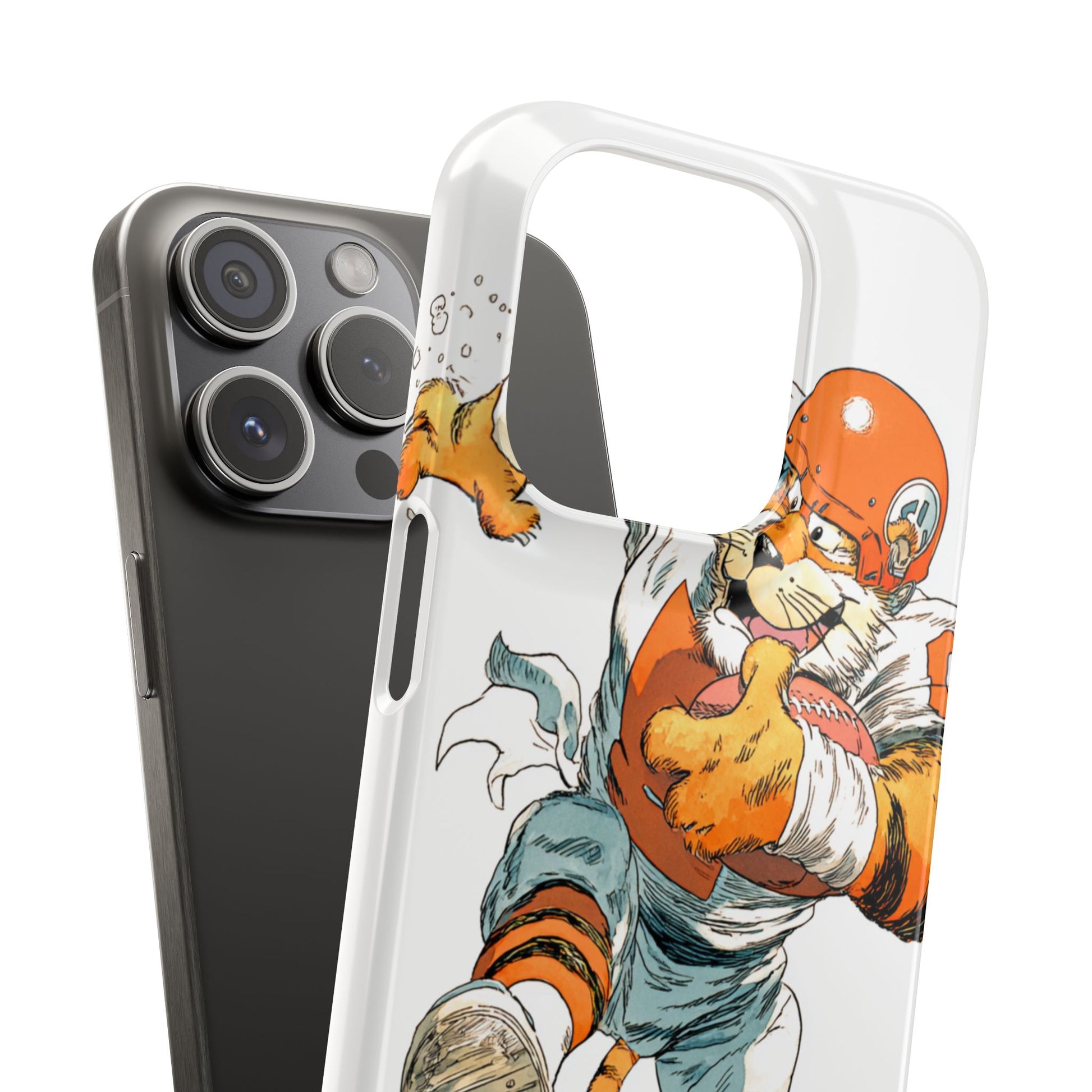Vibrant Cincinnati Bengals Coartoon Art Tiger Playing Football phone case design for football fans. Adds a fun and sporty vibe to your phone. Perfect for adults who are avid football fans or supporters of the Cincinnati Bengals. Great for gifting on birthdays, game days, and holidays.