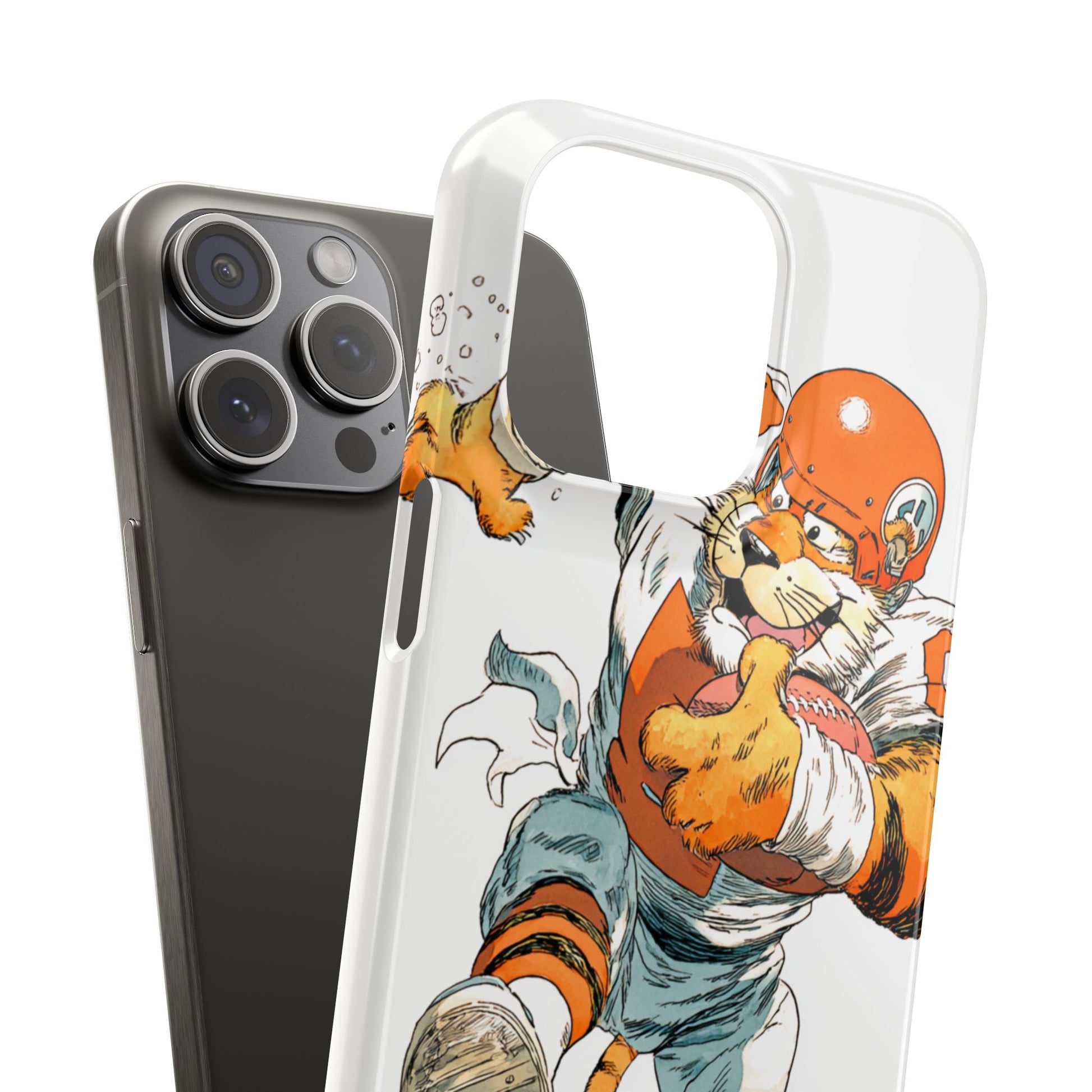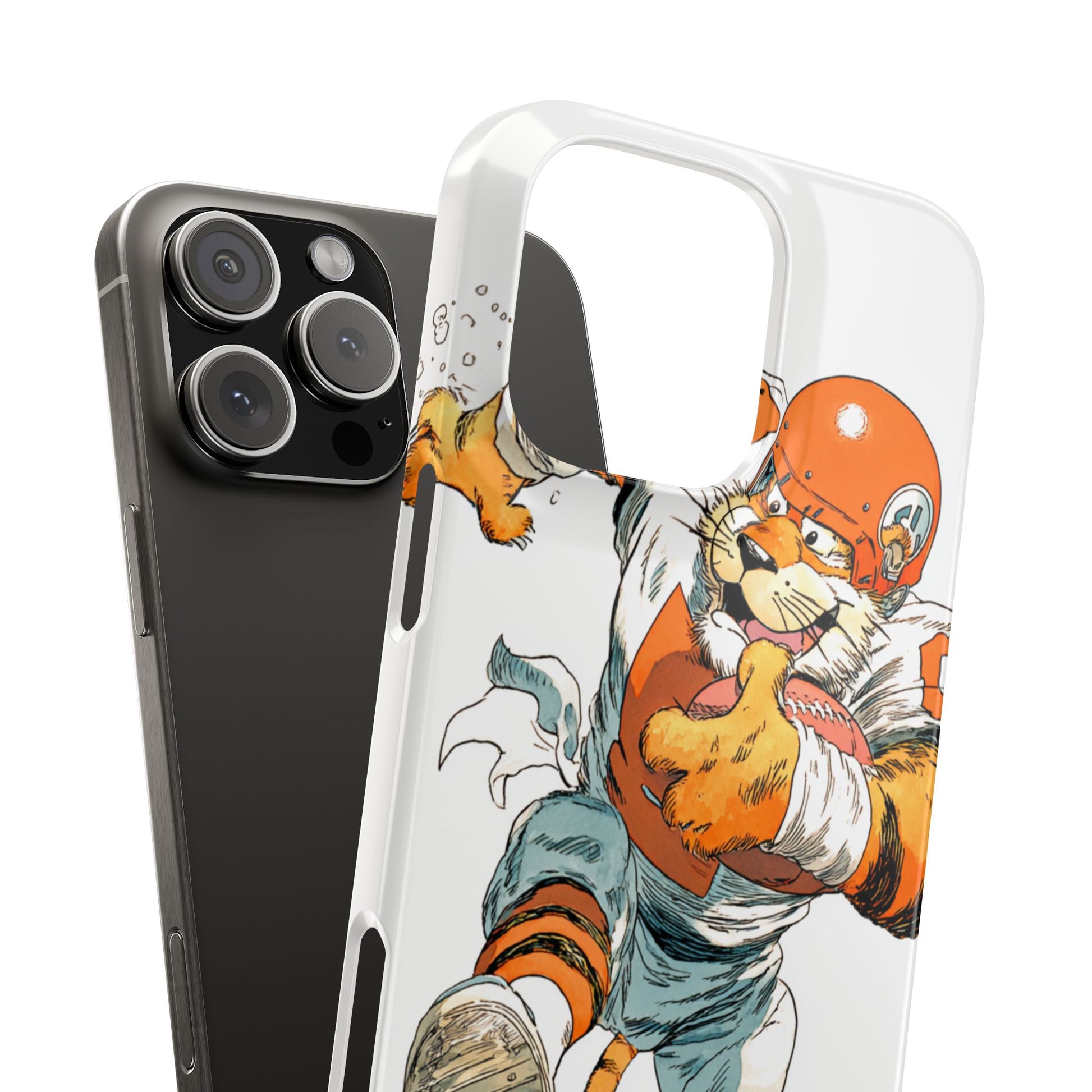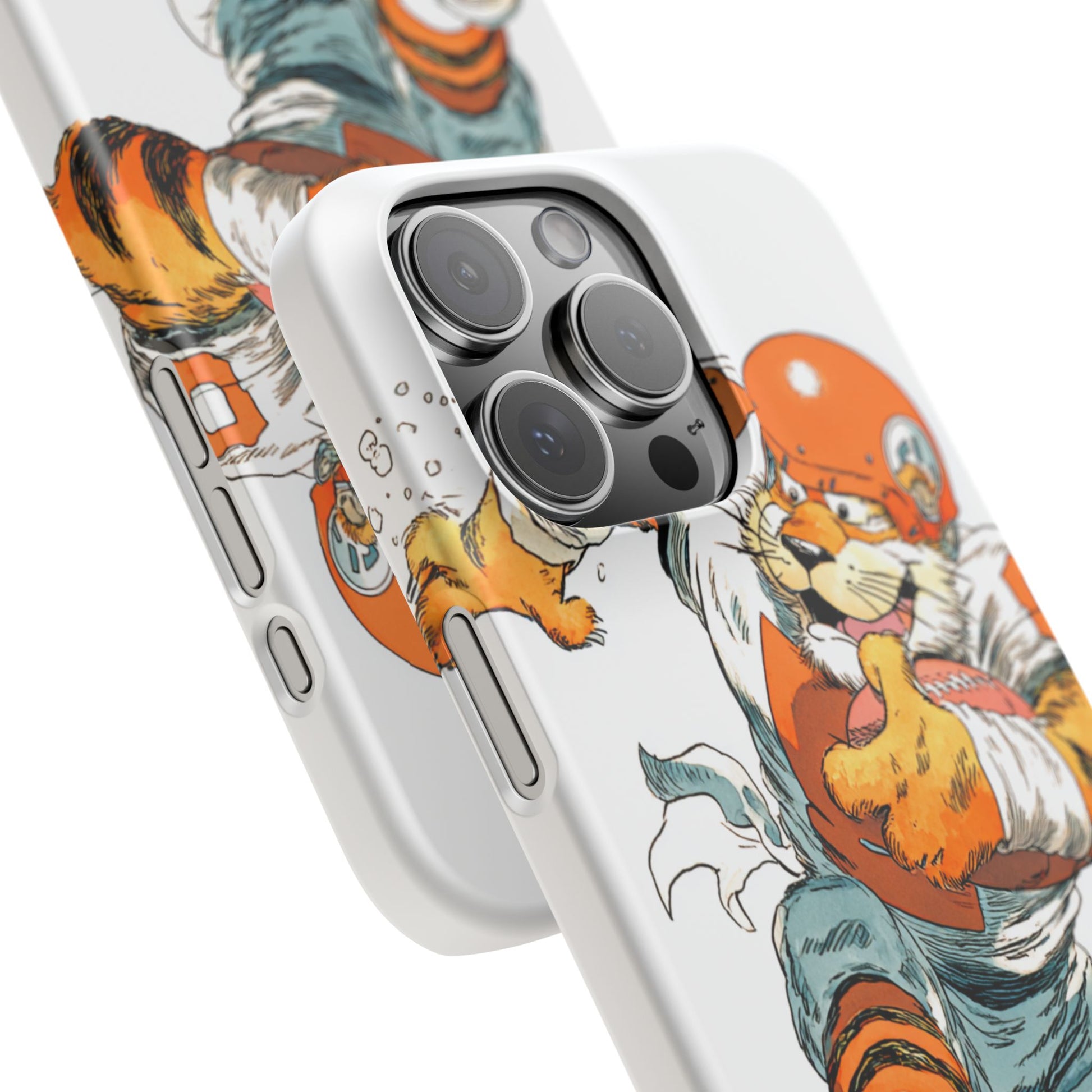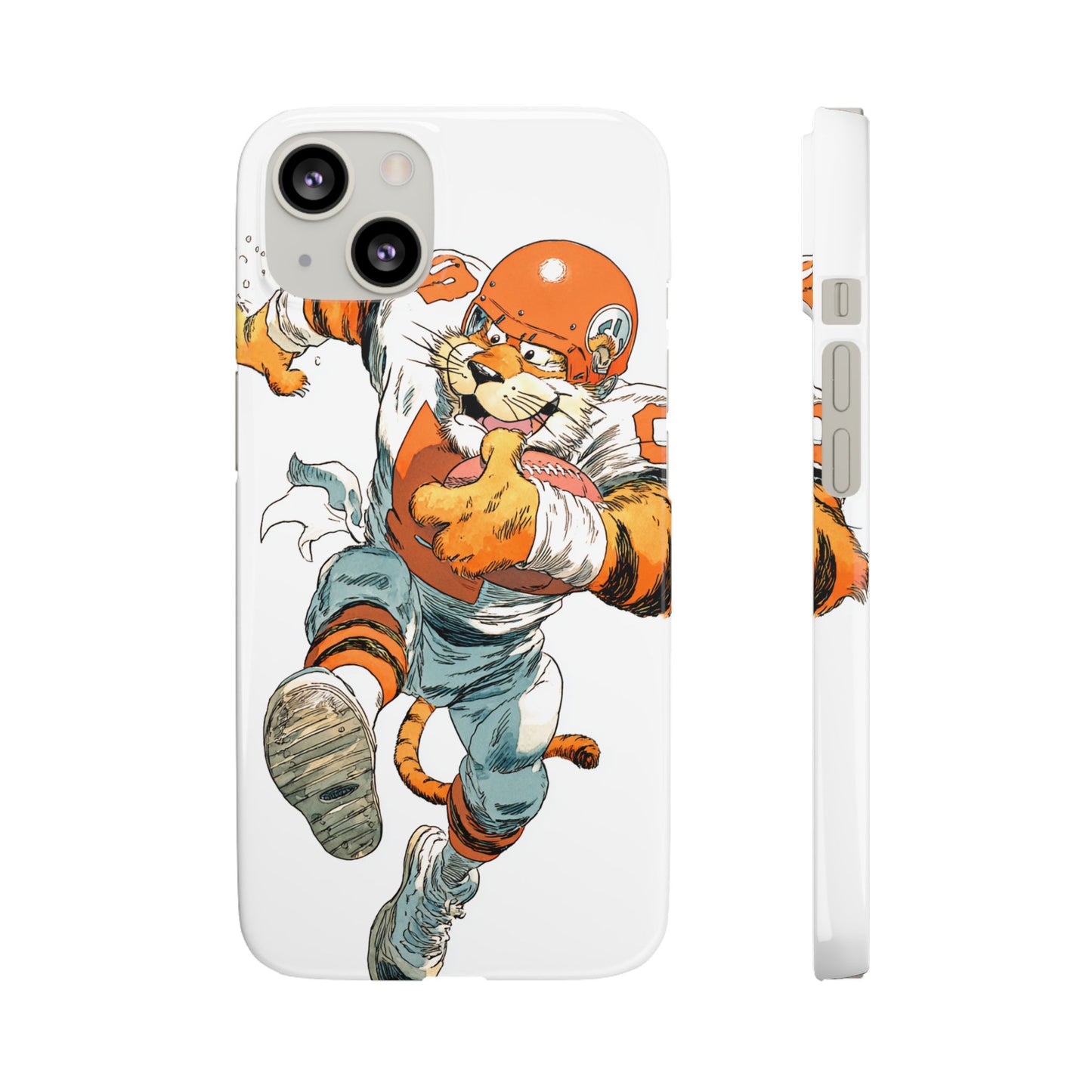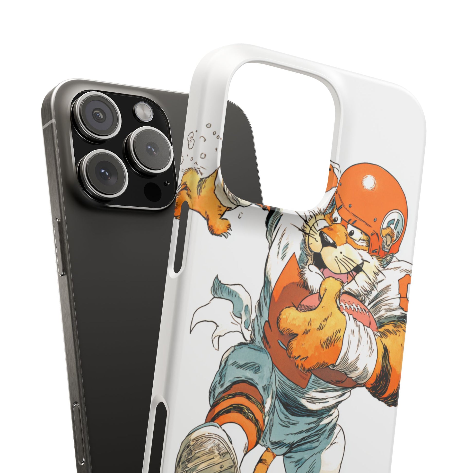 Vibrant Cincinnati Bengals Coartoon Art Tiger Playing Football phone case design for football fans. Adds a fun and sporty vibe to your phone. Perfect for adults who are avid football fans or supporters of the Cincinnati Bengals. Great for gifting on birthdays, game days, and holidays.