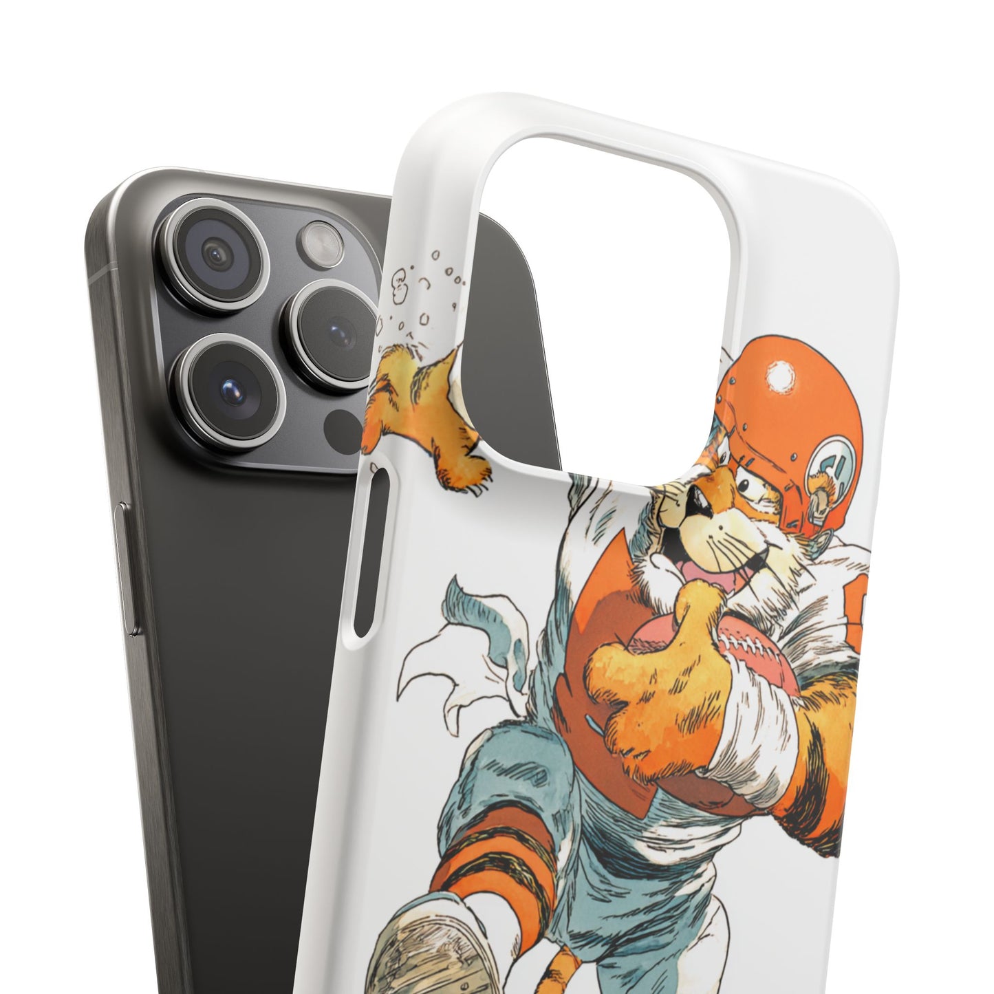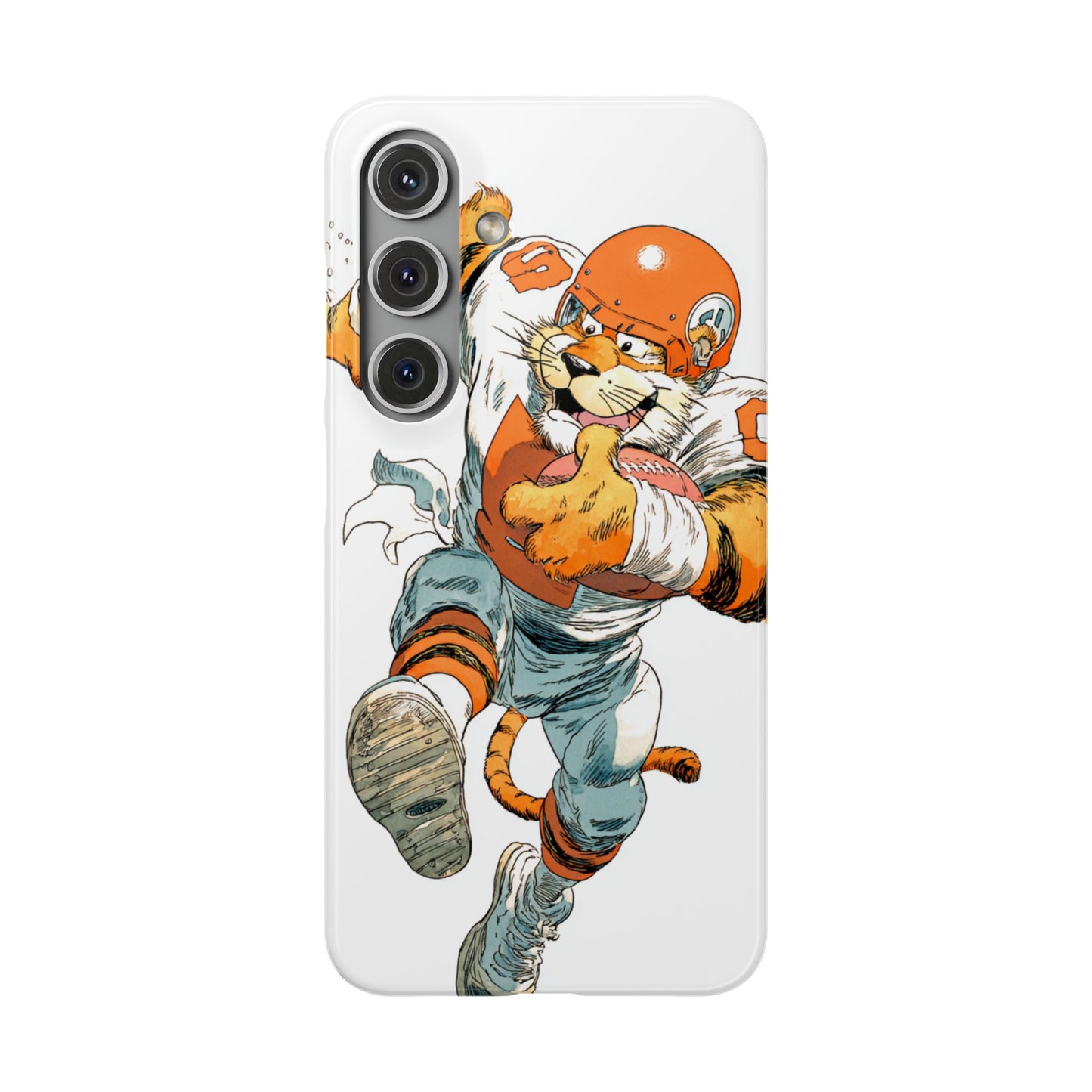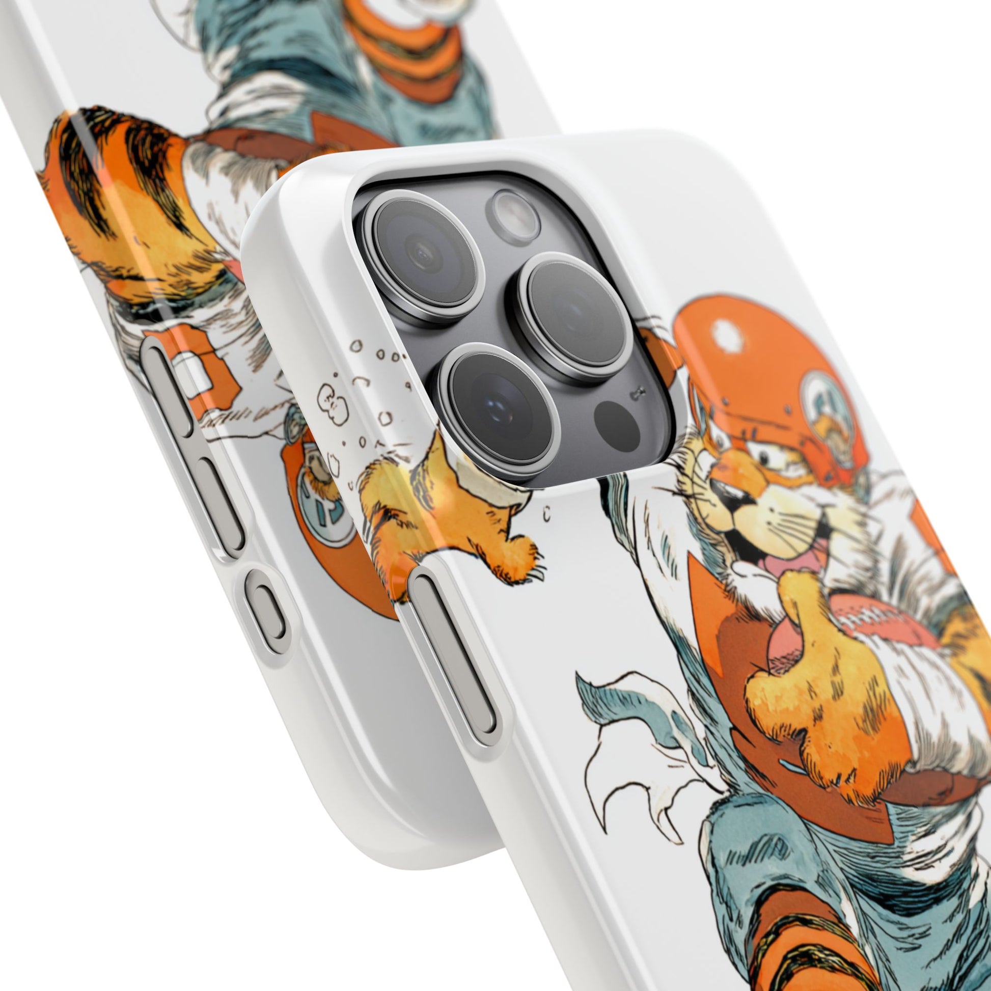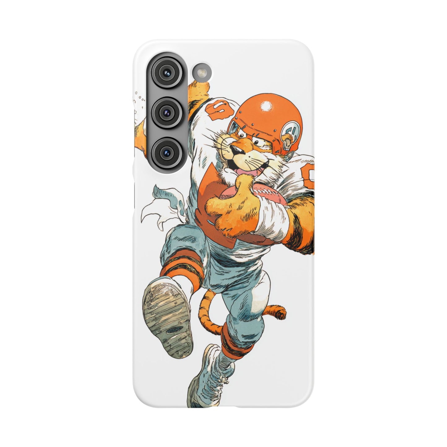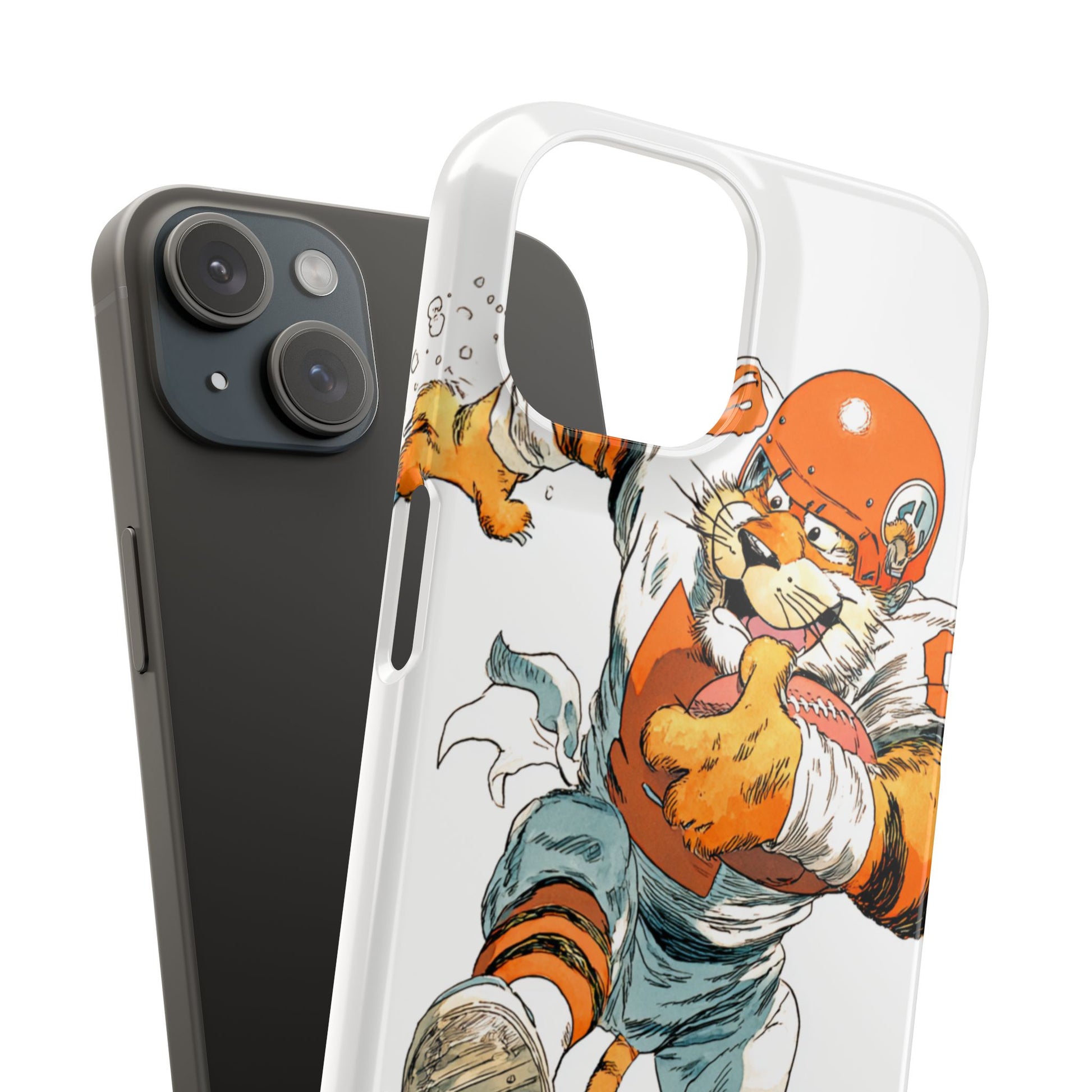 Vibrant Cincinnati Bengals Coartoon Art Tiger Playing Football phone case design for football fans. Adds a fun and sporty vibe to your phone. Perfect for adults who are avid football fans or supporters of the Cincinnati Bengals. Great for gifting on birthdays, game days, and holidays.