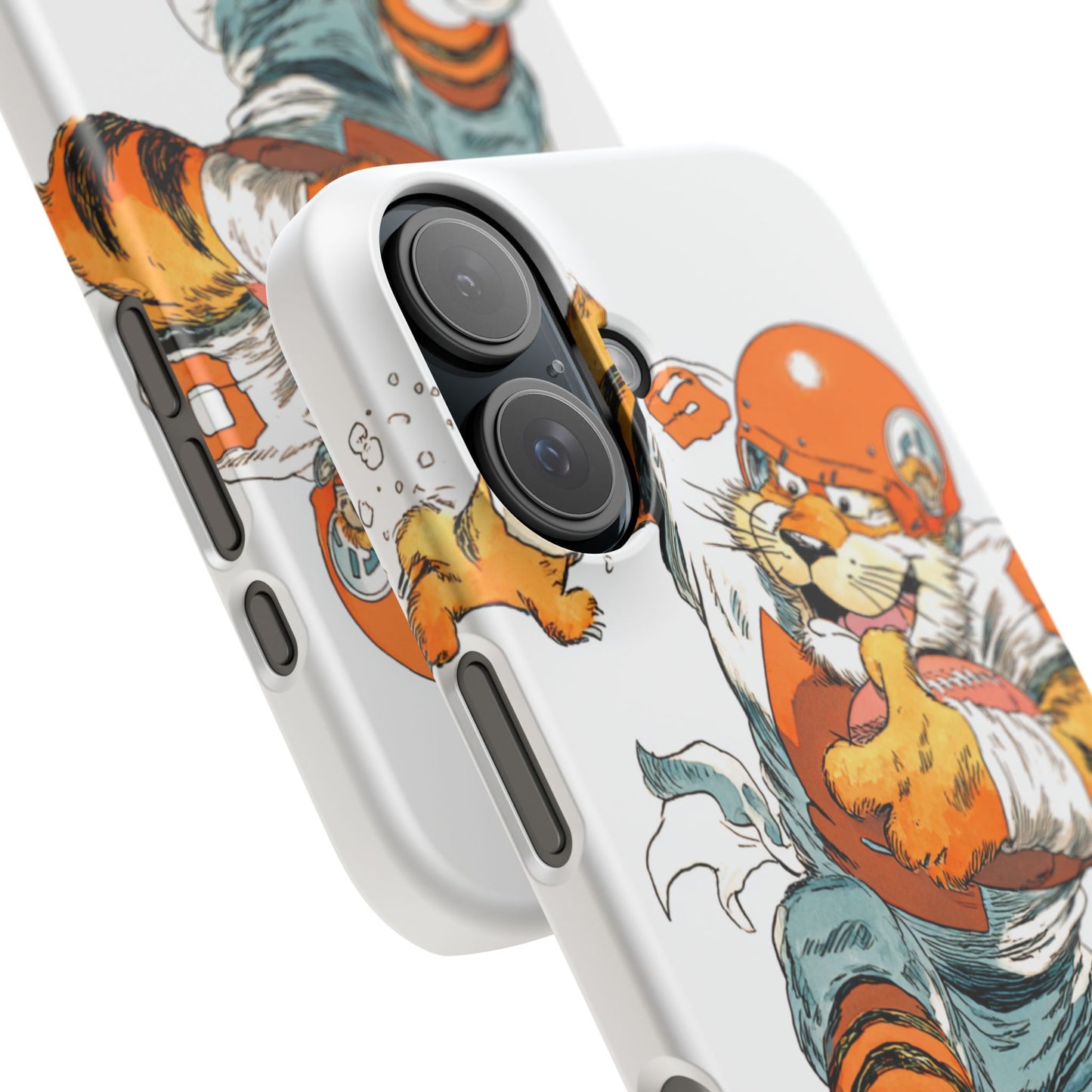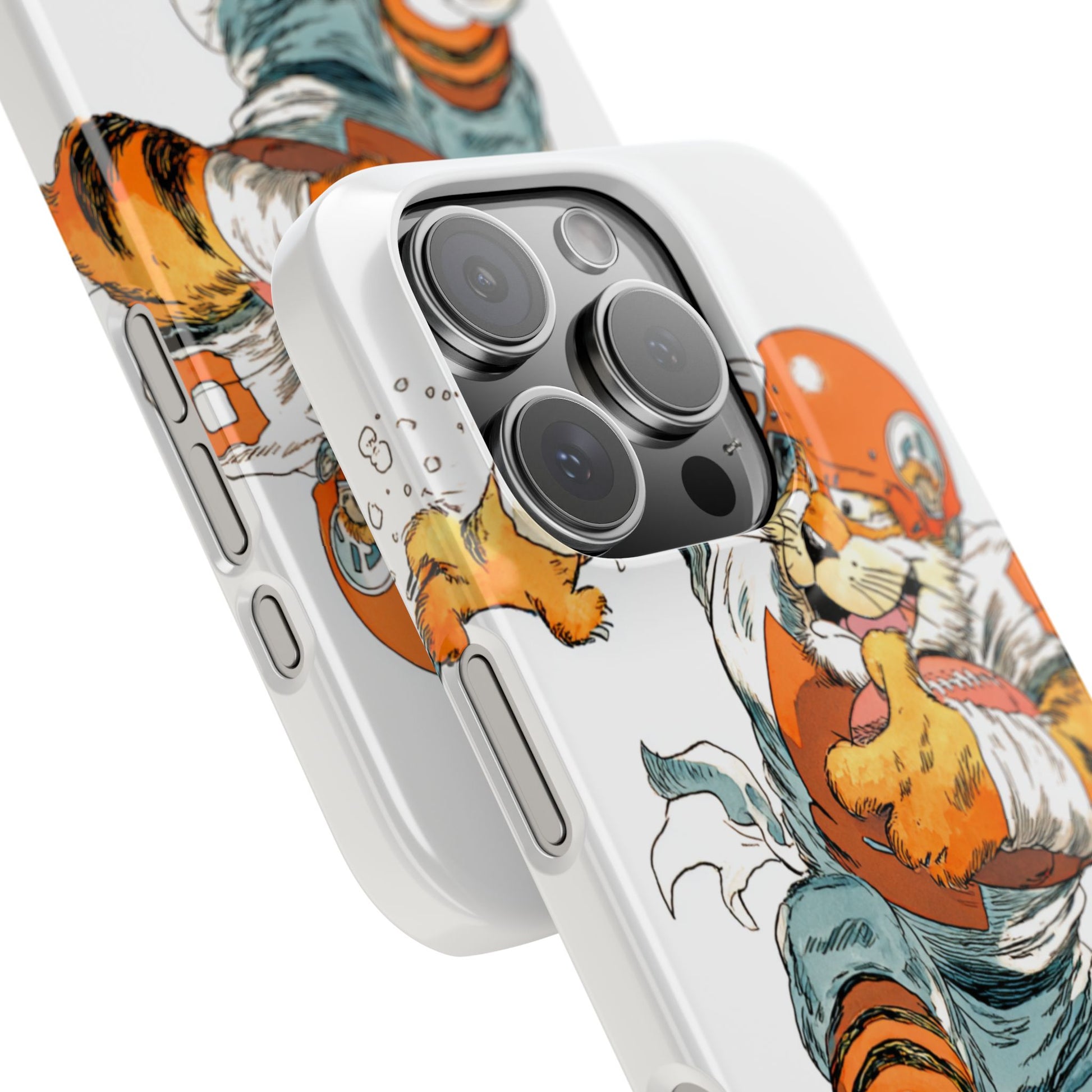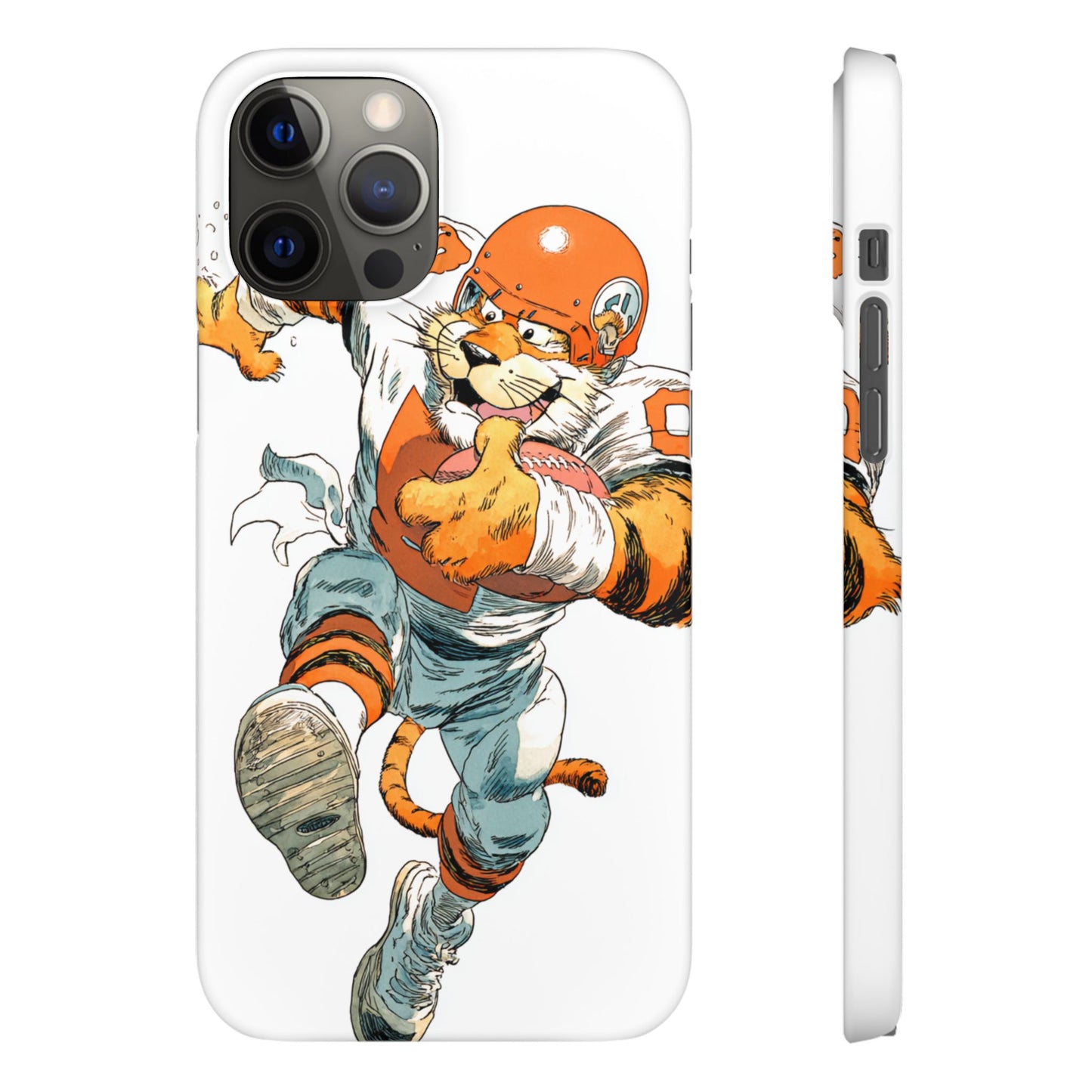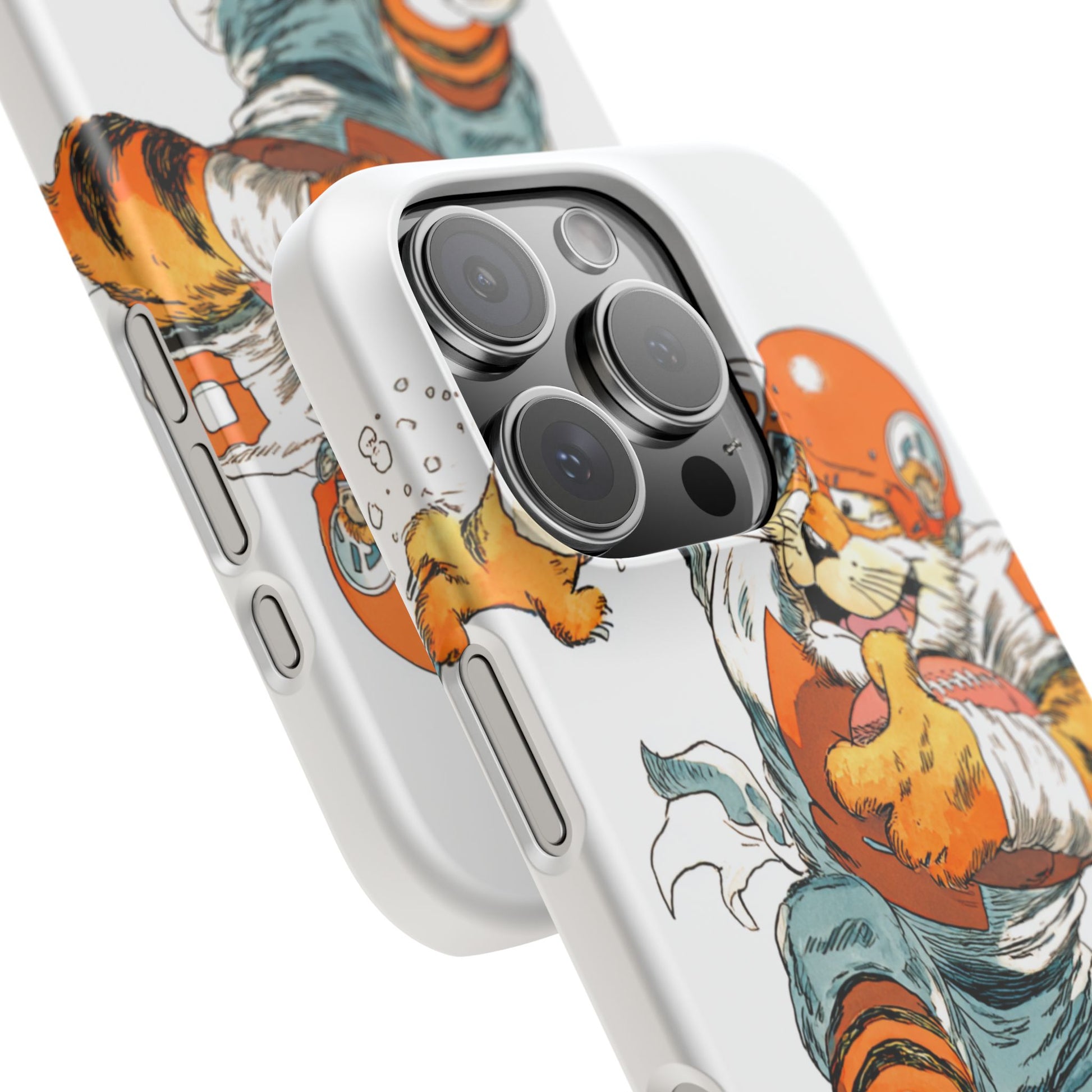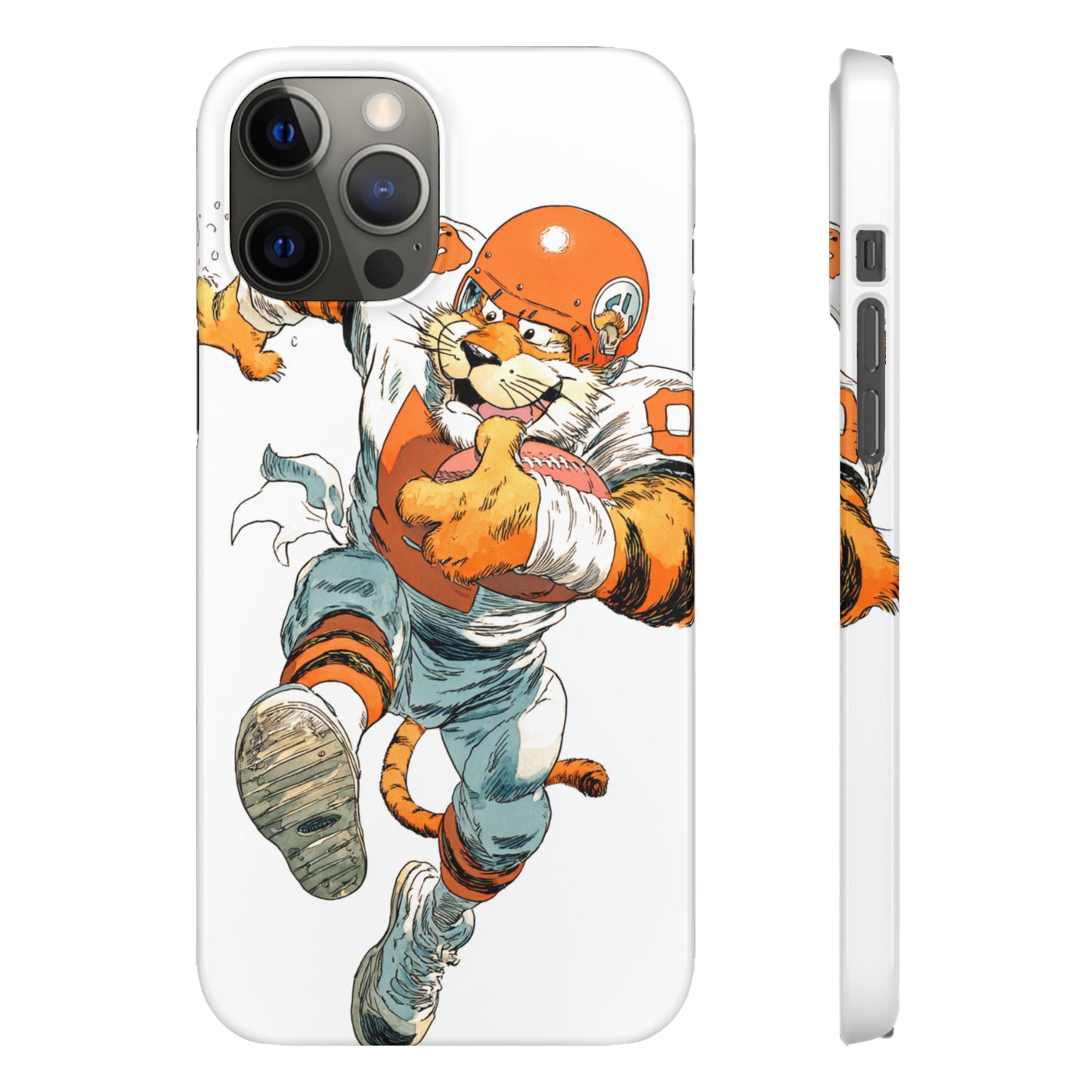 Vibrant Cincinnati Bengals Coartoon Art Tiger Playing Football phone case design for football fans. Adds a fun and sporty vibe to your phone. Perfect for adults who are avid football fans or supporters of the Cincinnati Bengals. Great for gifting on birthdays, game days, and holidays.