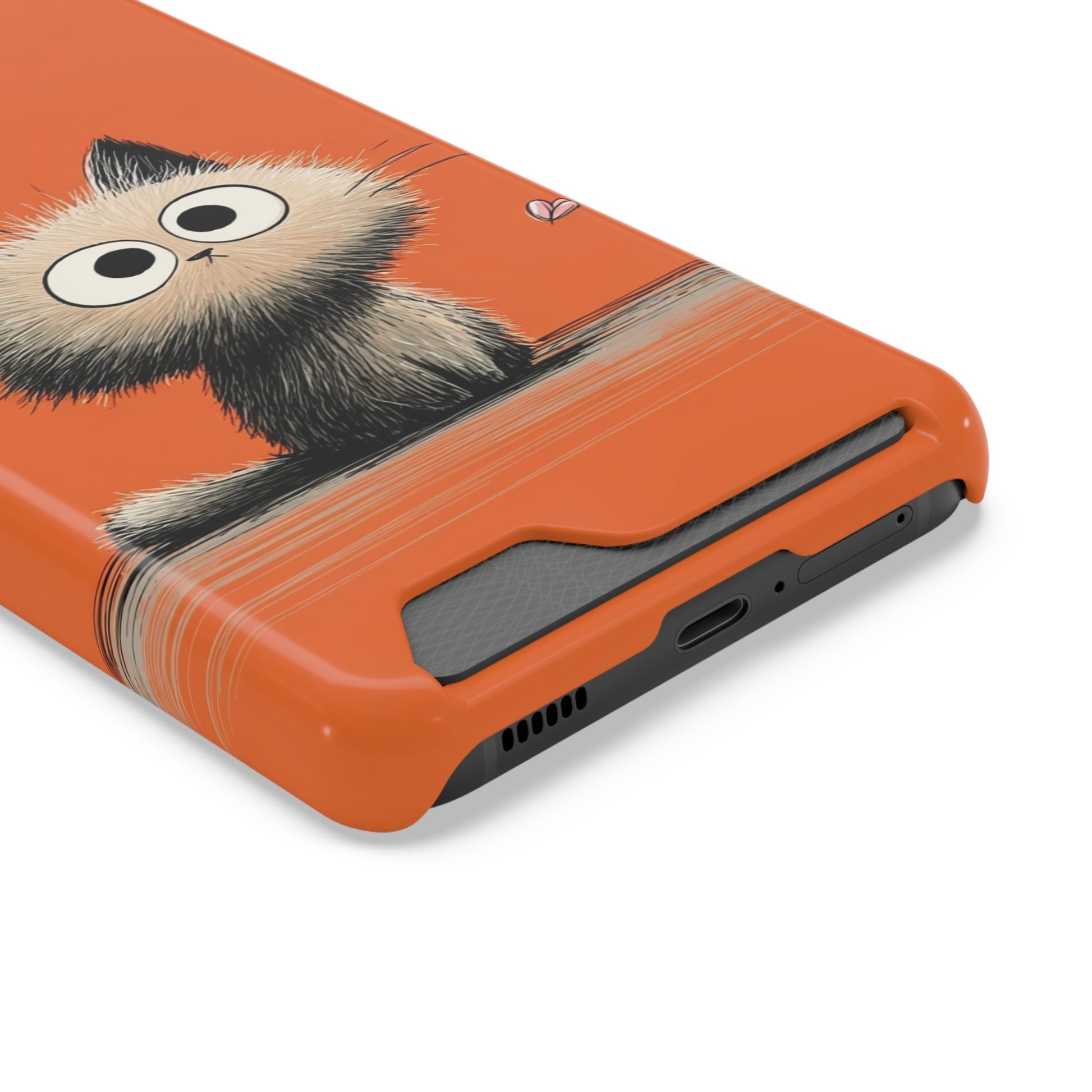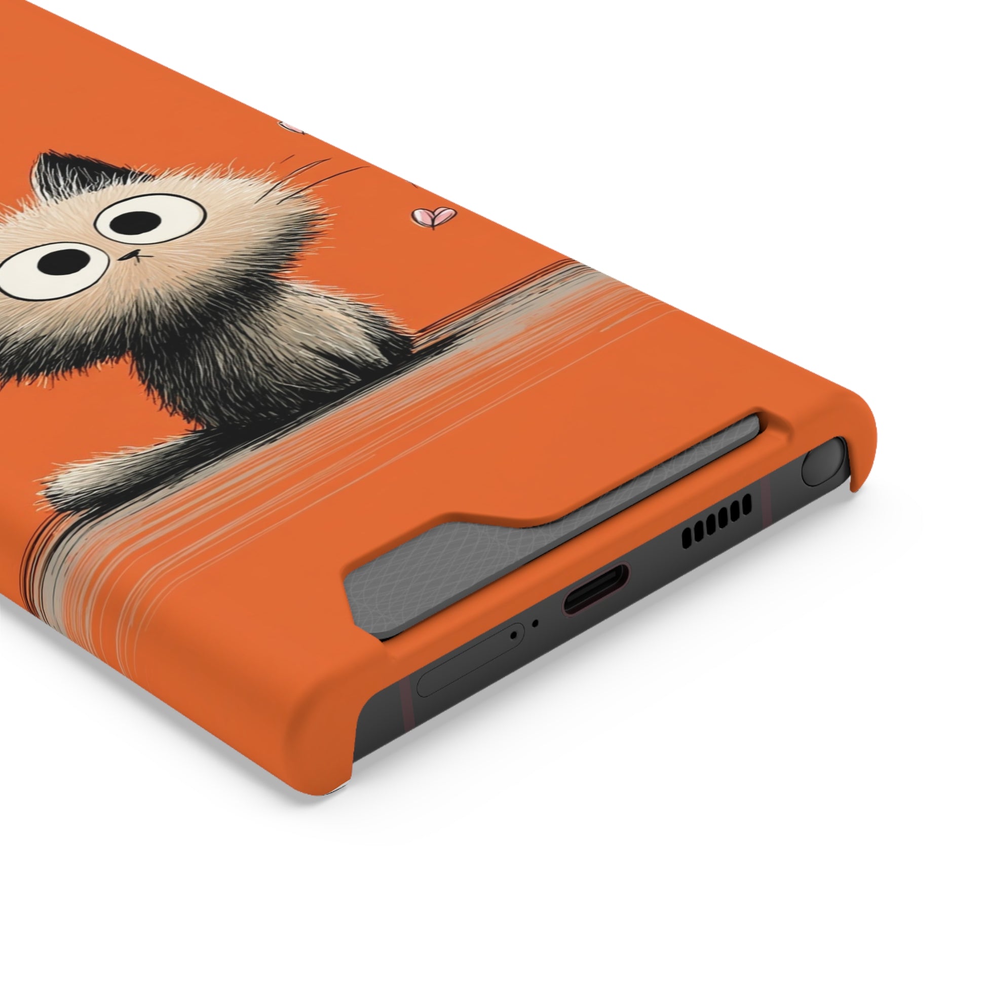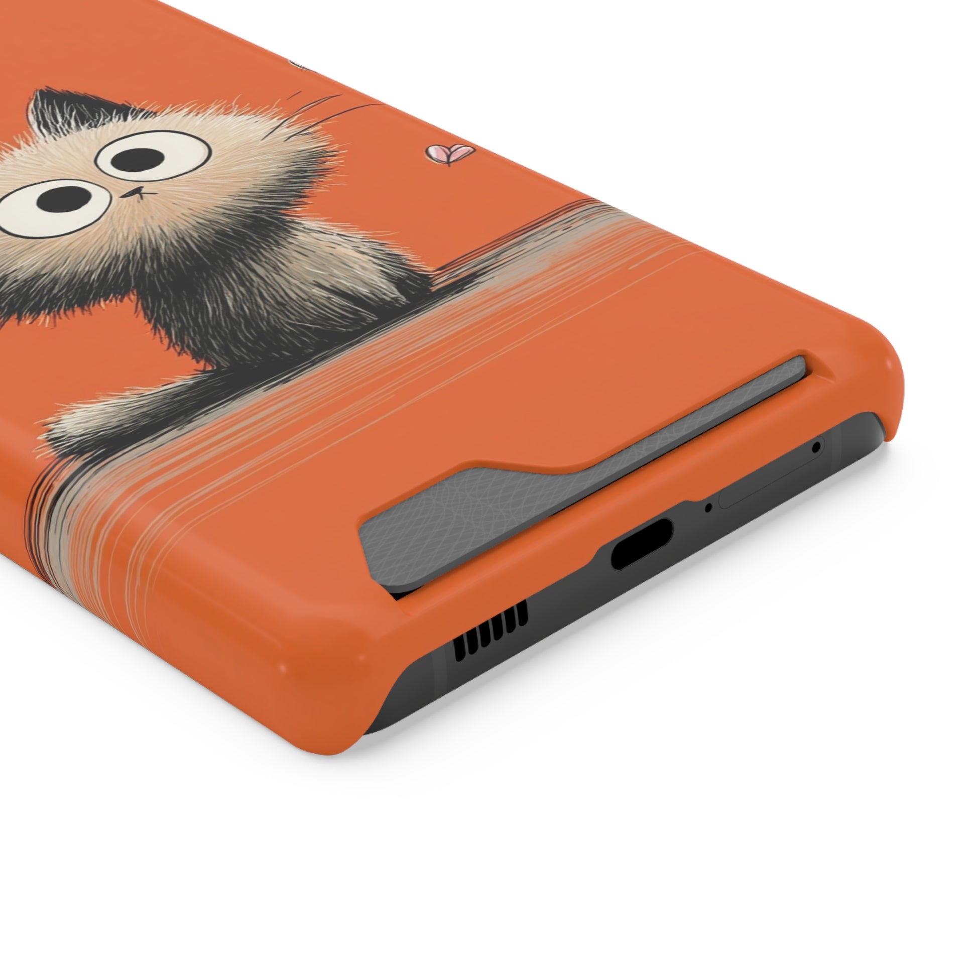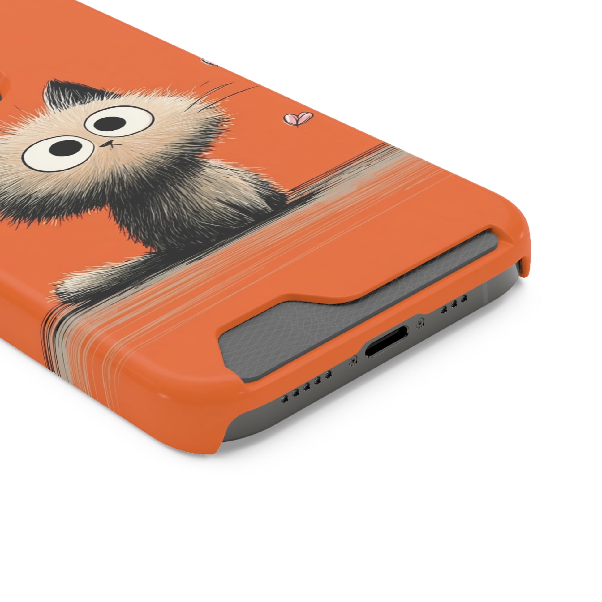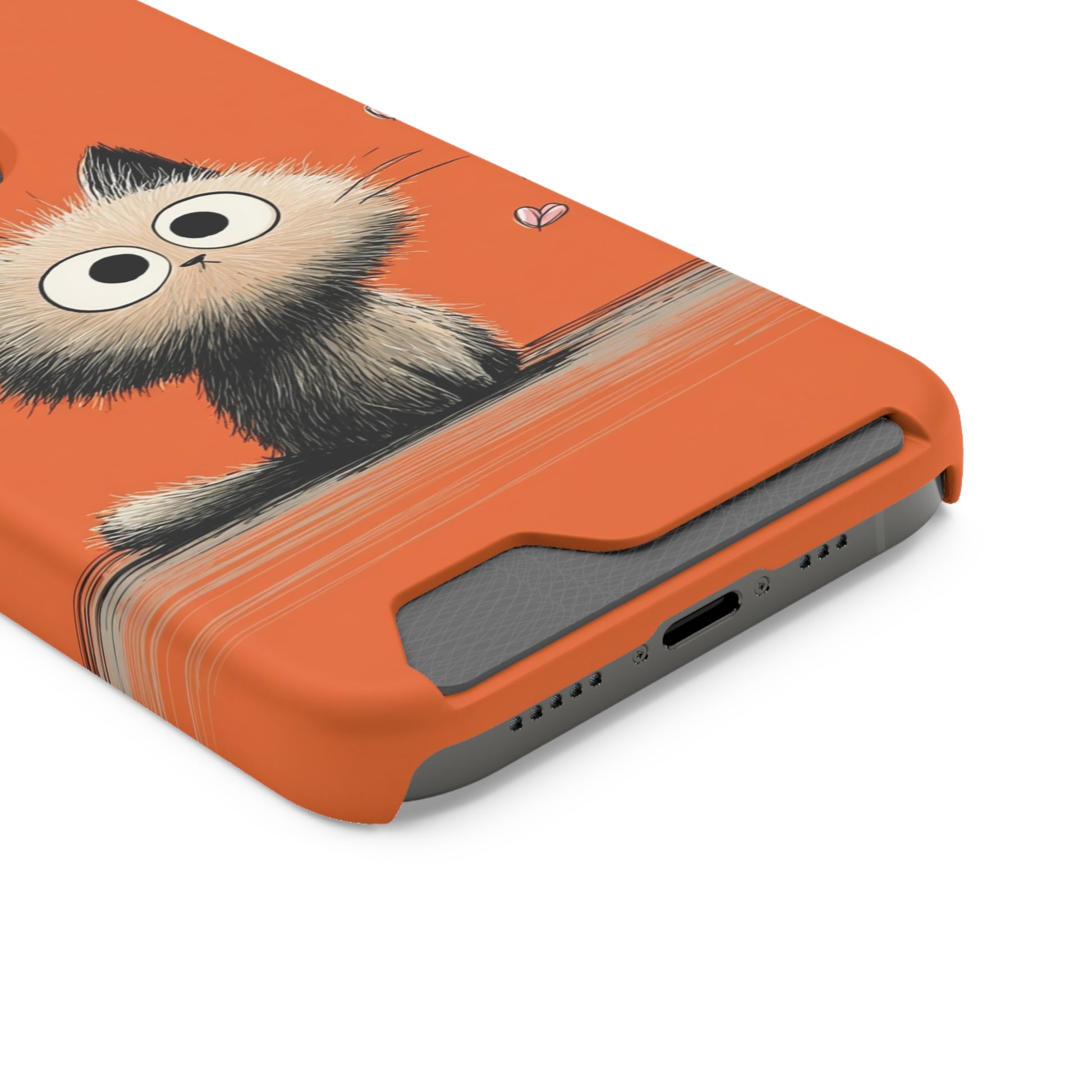 Cute Cat Phone Case with Card Holder, Playful Kitty Design, Pet Lover Gift, Cat Mom Accessory, Fun Birthday Present, Orange Cat Phone Case