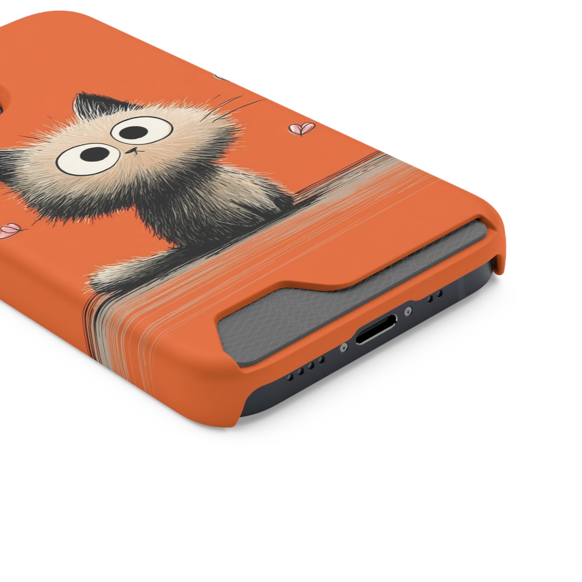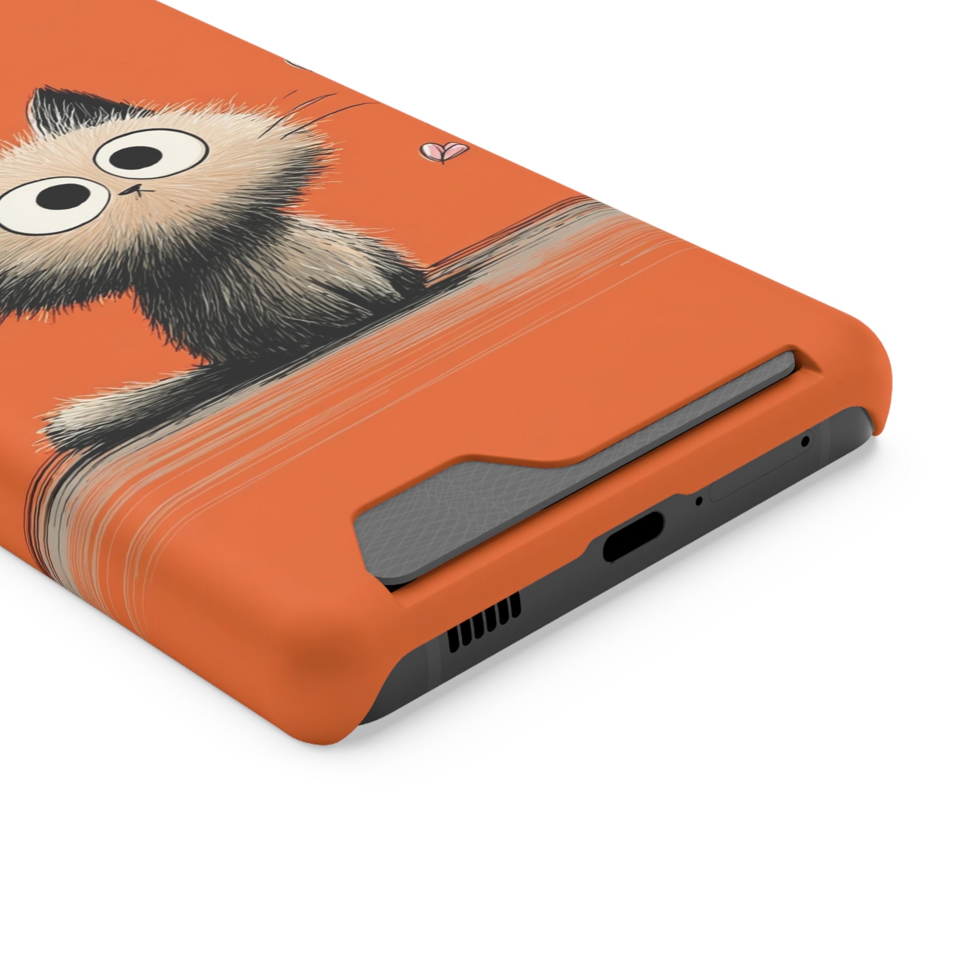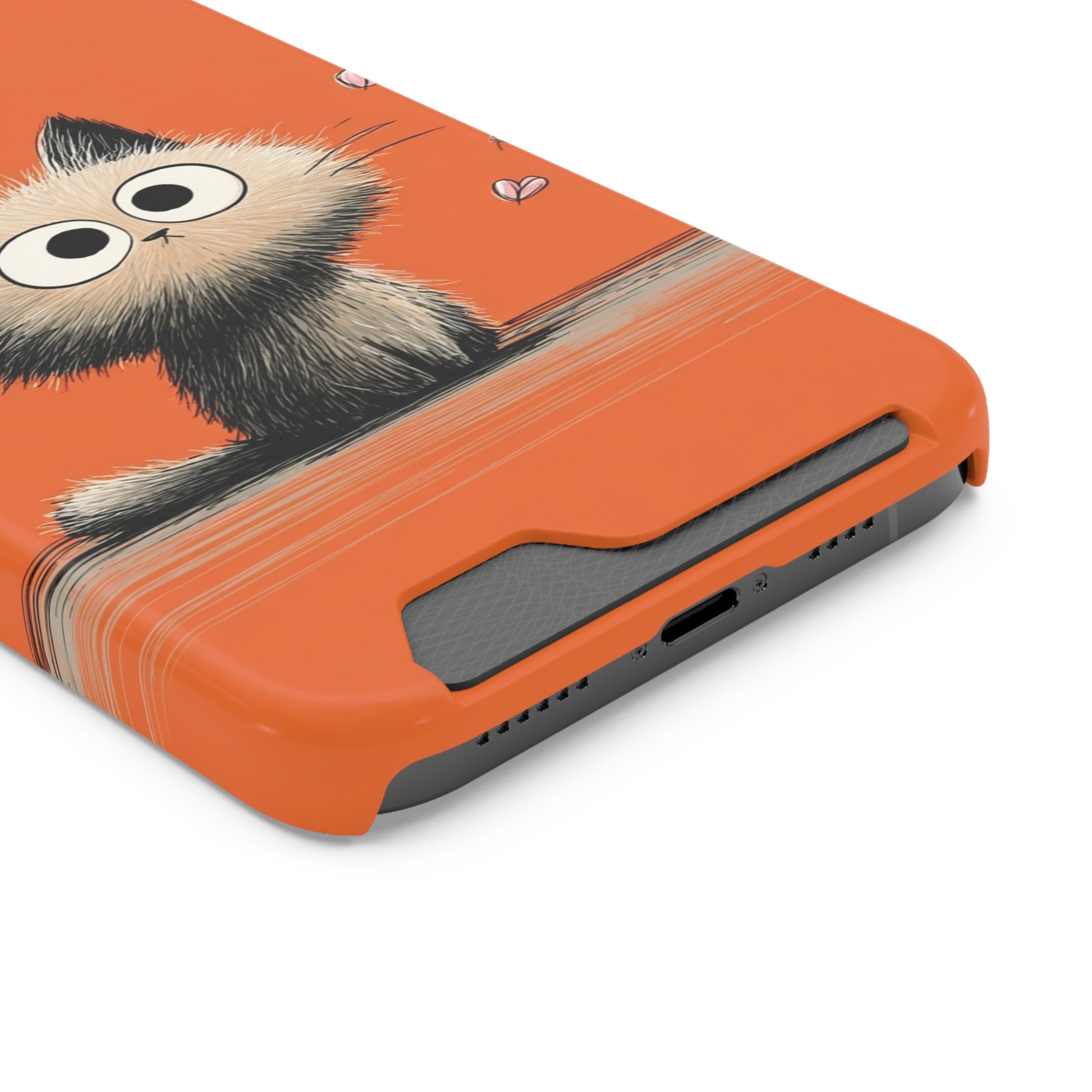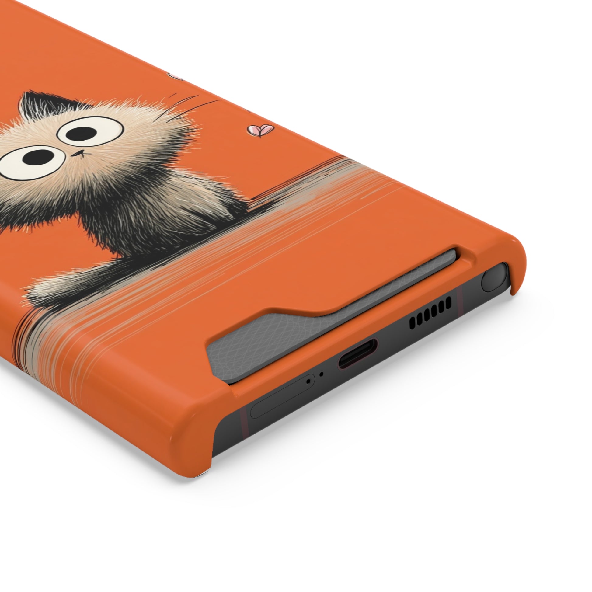 Cute Cat Phone Case with Card Holder, Playful Kitty Design, Pet Lover Gift, Cat Mom Accessory, Fun Birthday Present, Orange Cat Phone Case