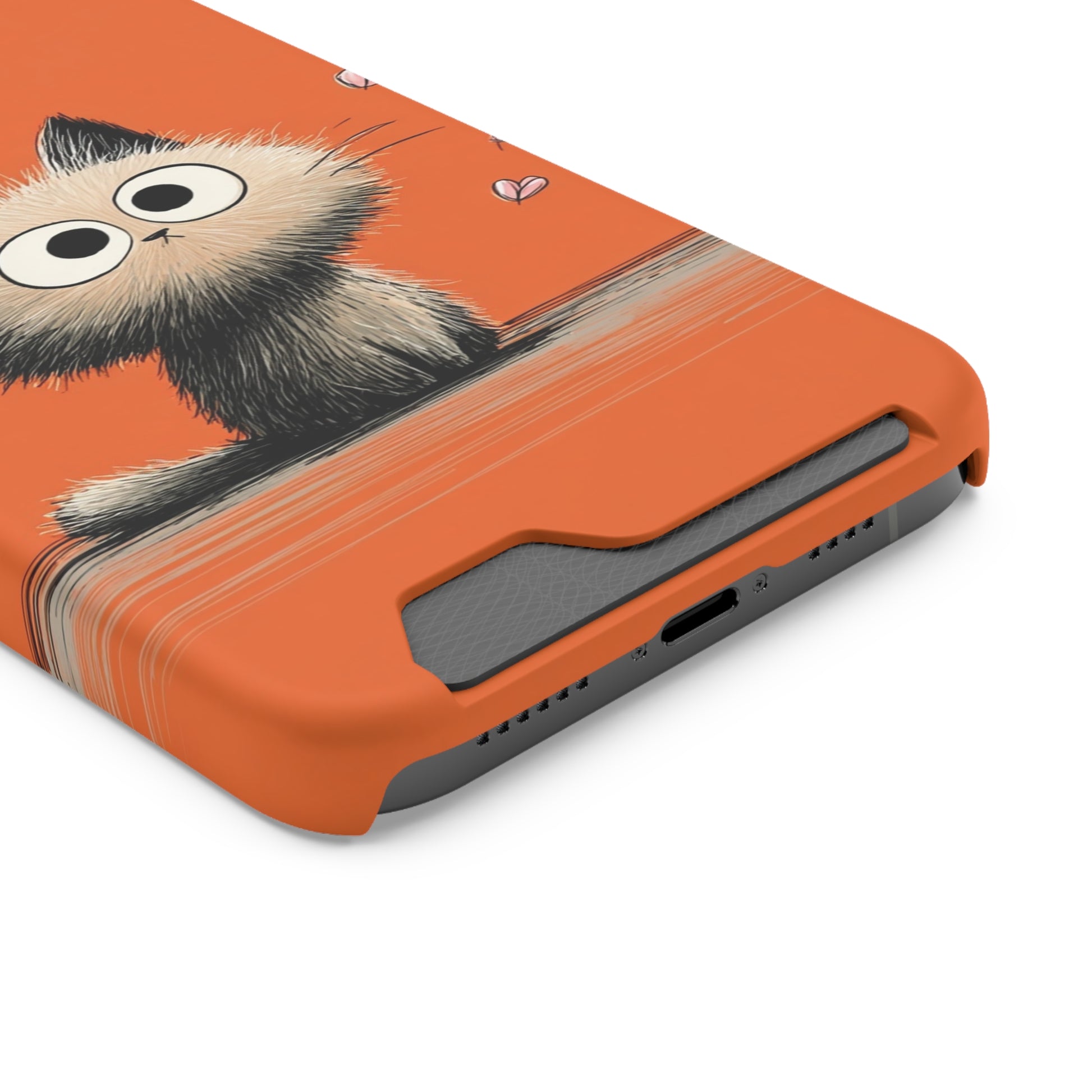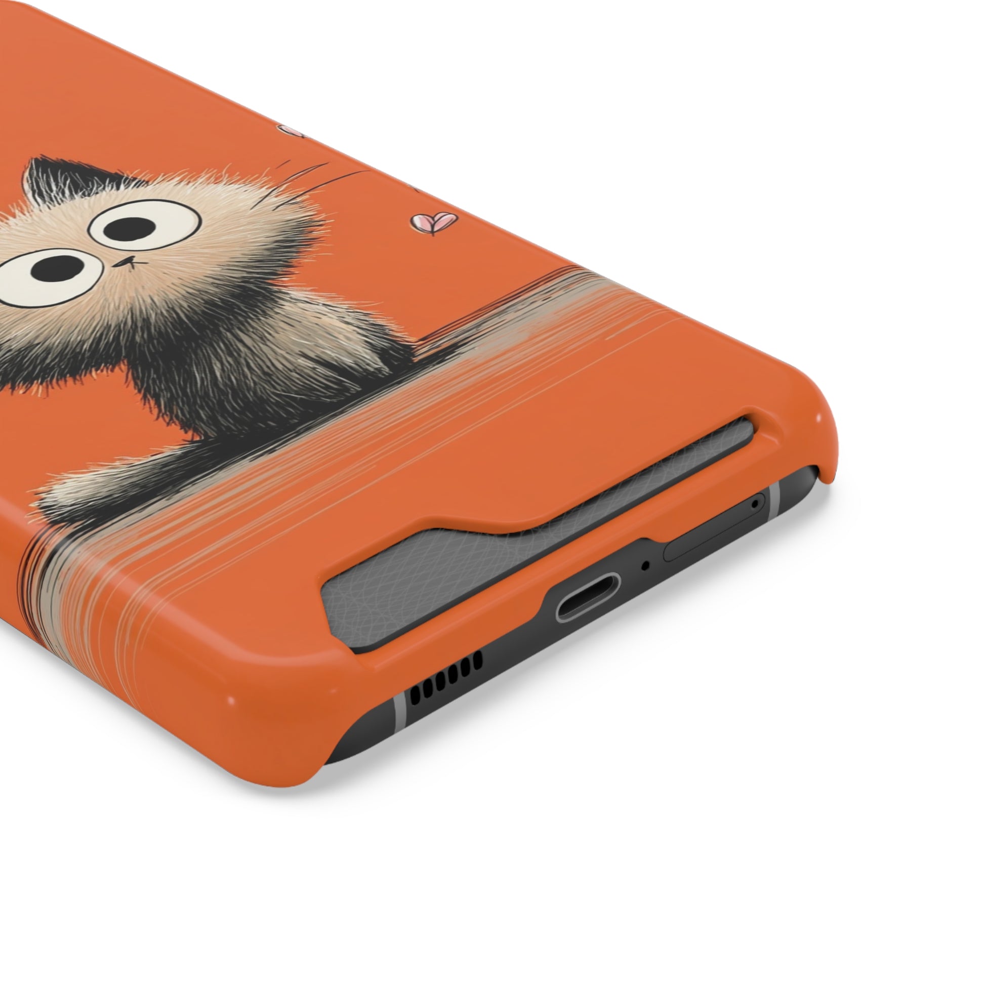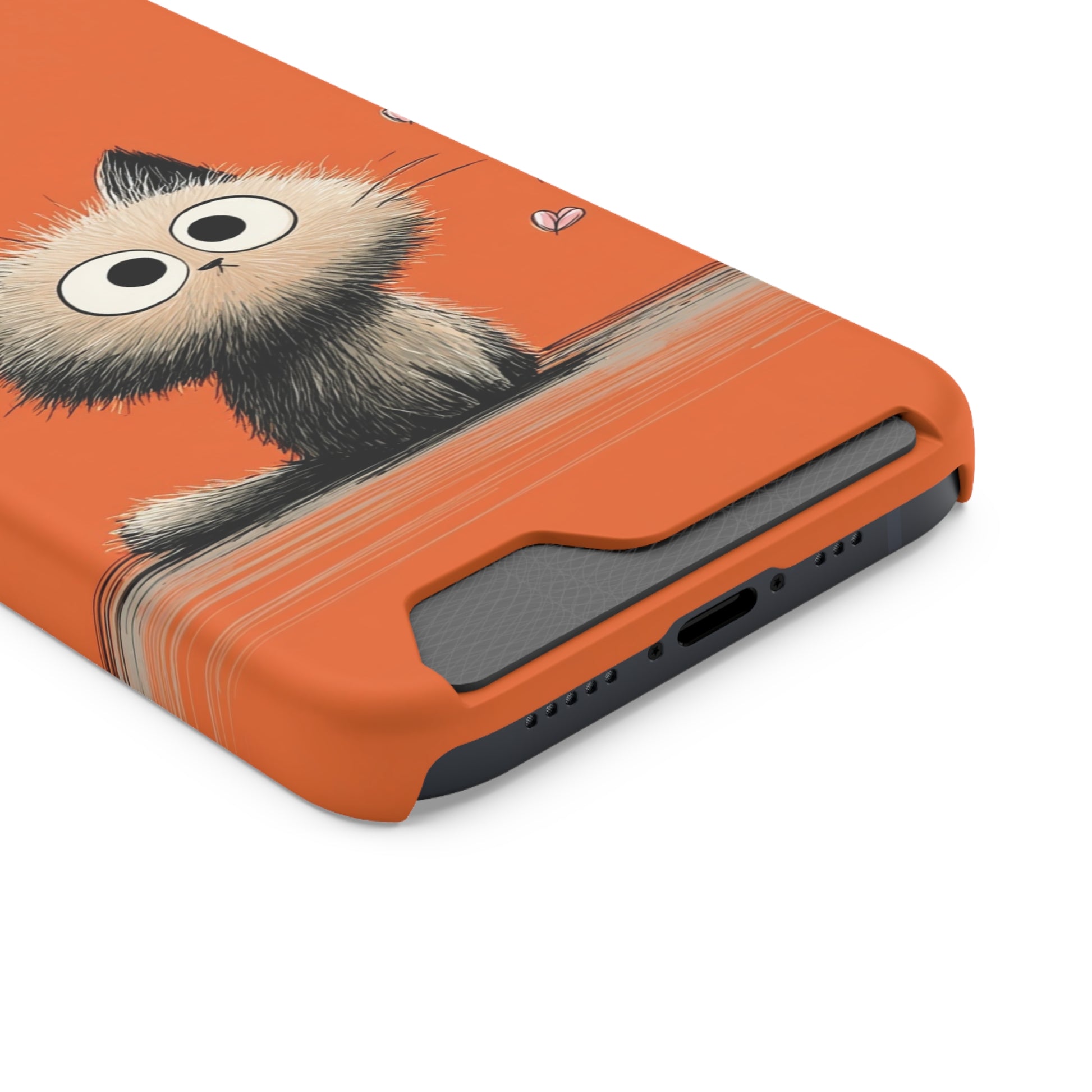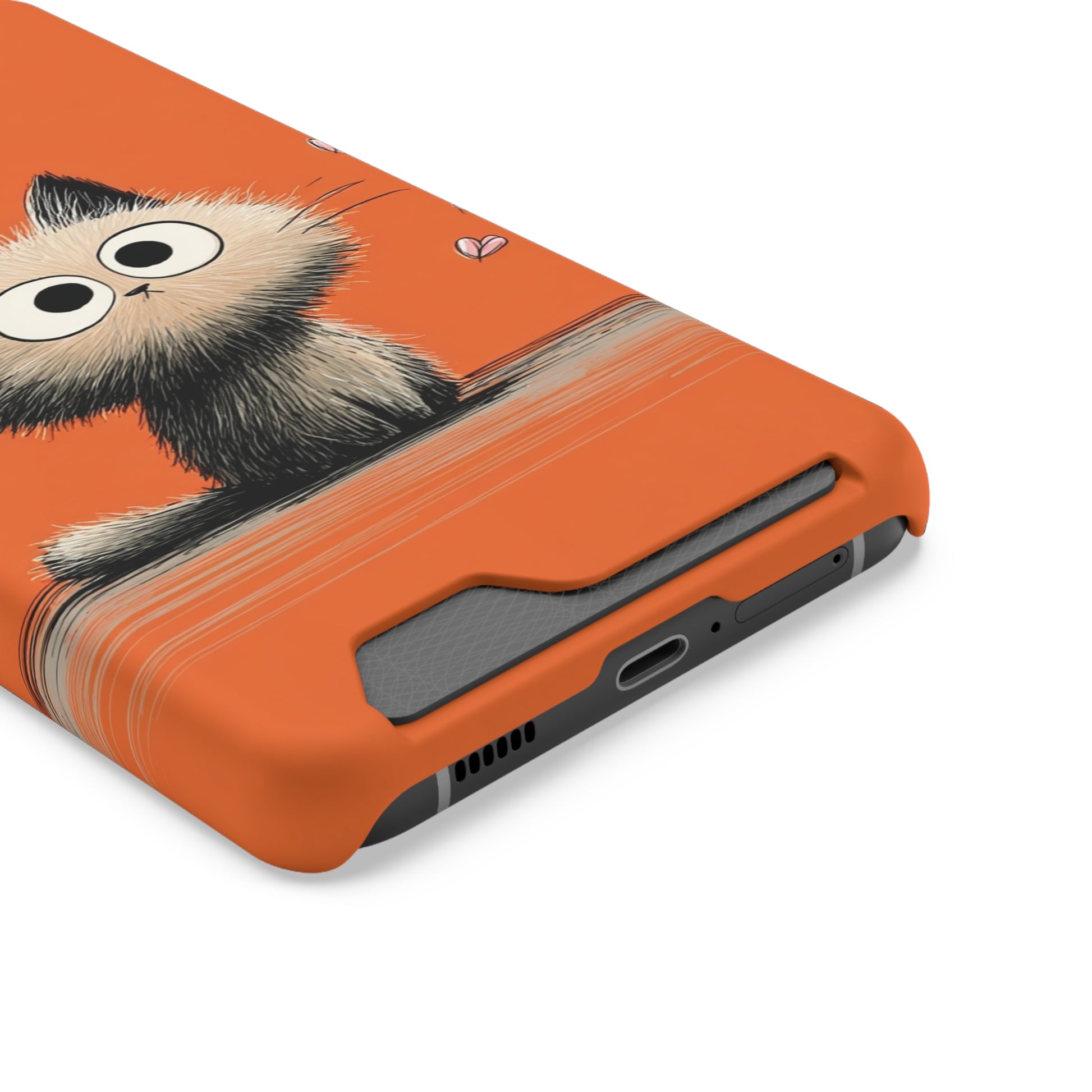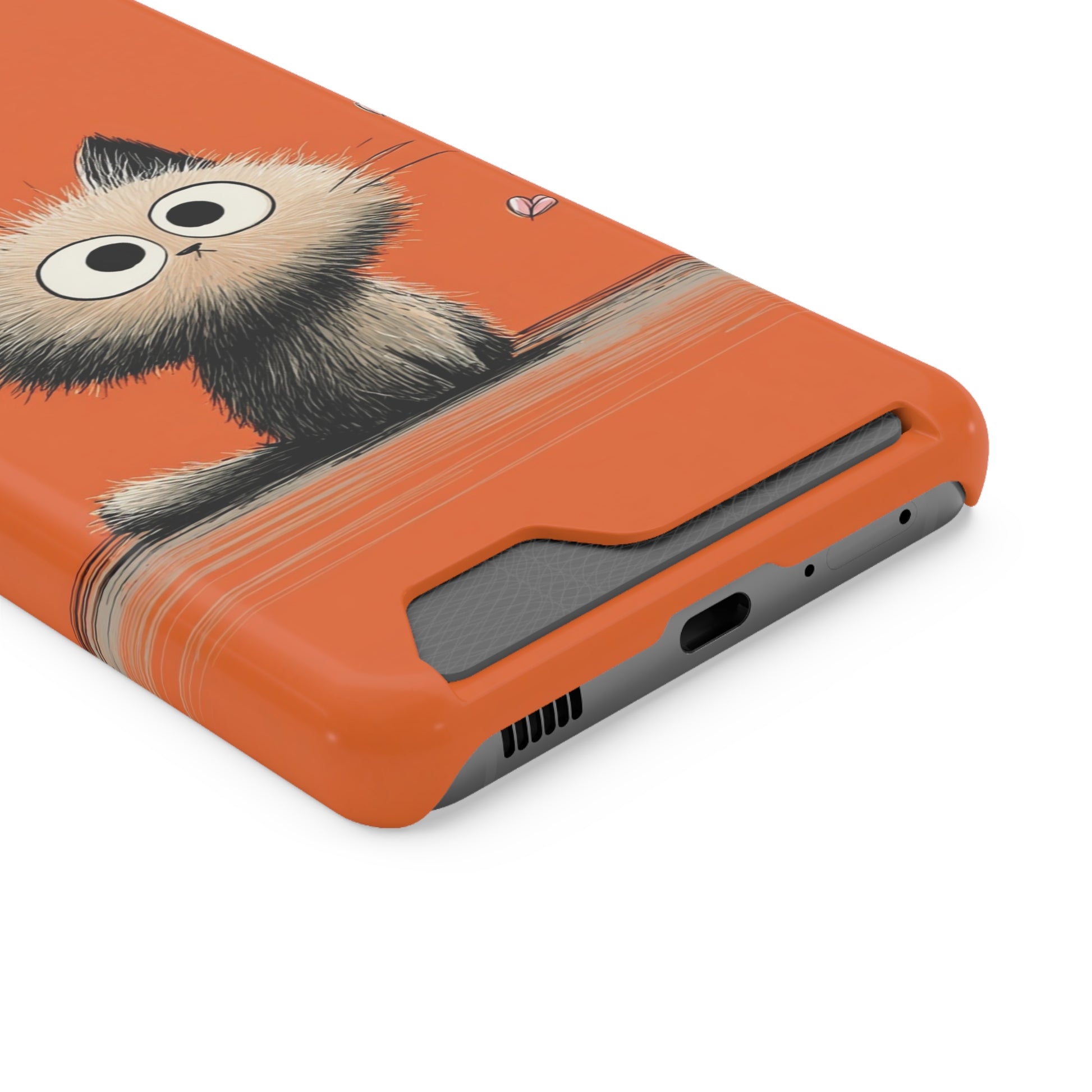 Cute Cat Phone Case with Card Holder, Playful Kitty Design, Pet Lover Gift, Cat Mom Accessory, Fun Birthday Present, Orange Cat Phone Case
