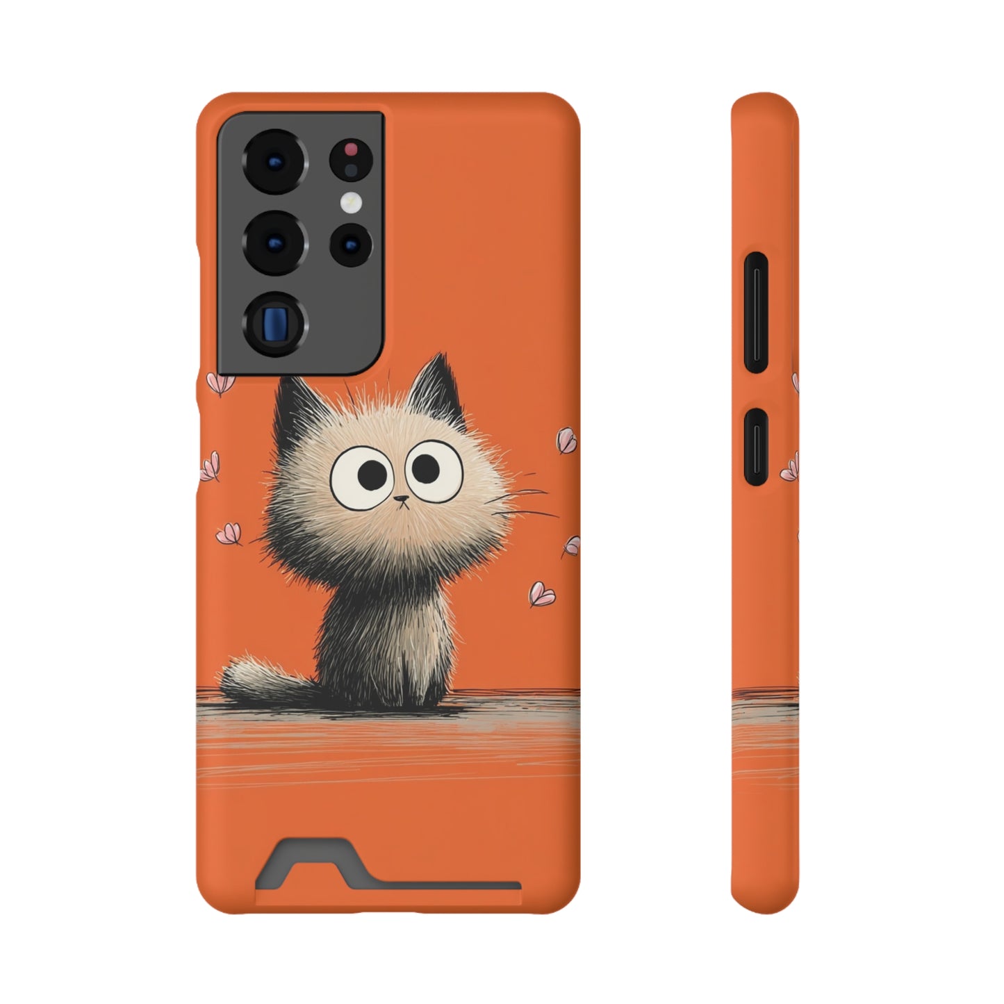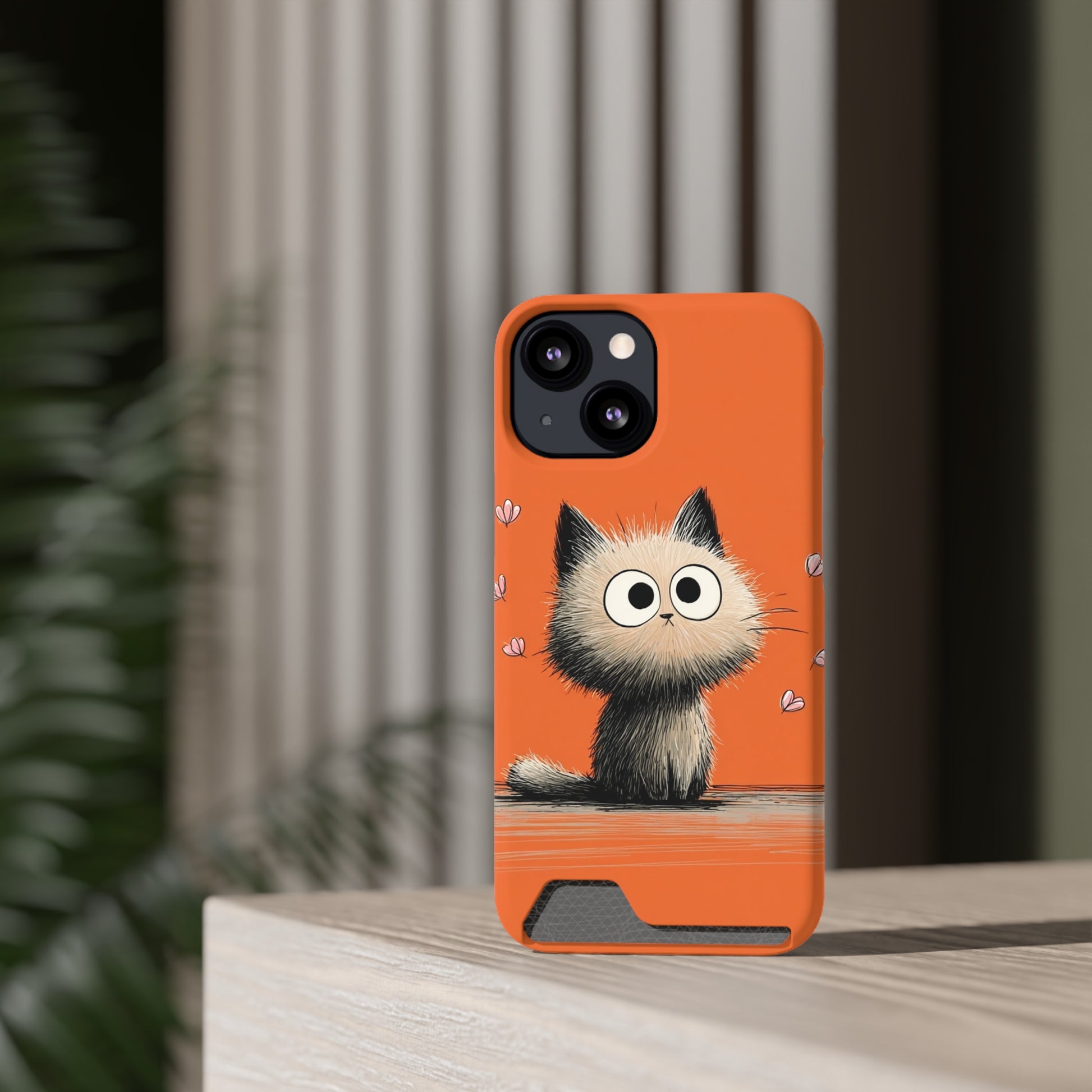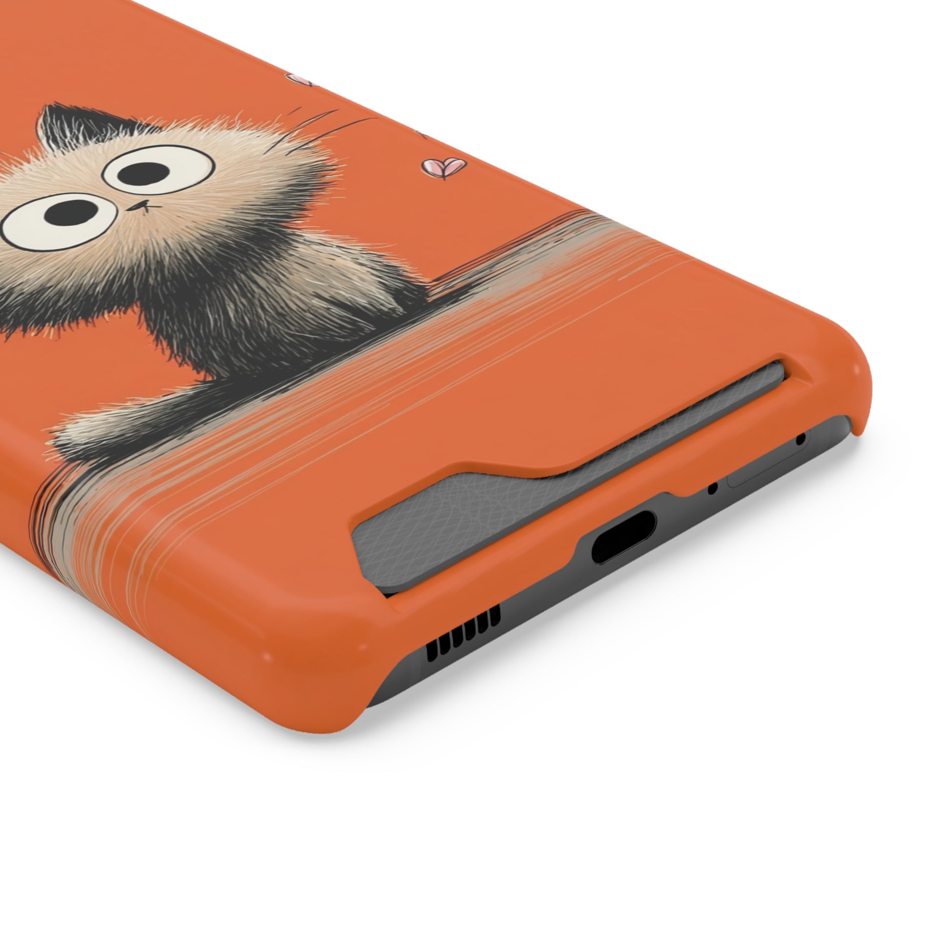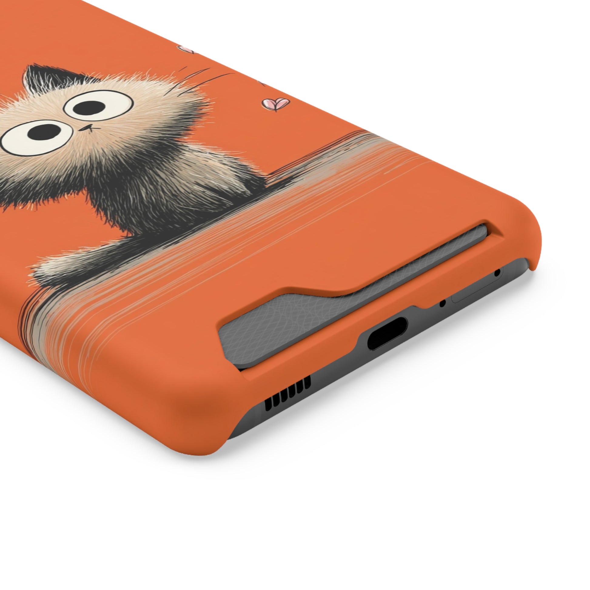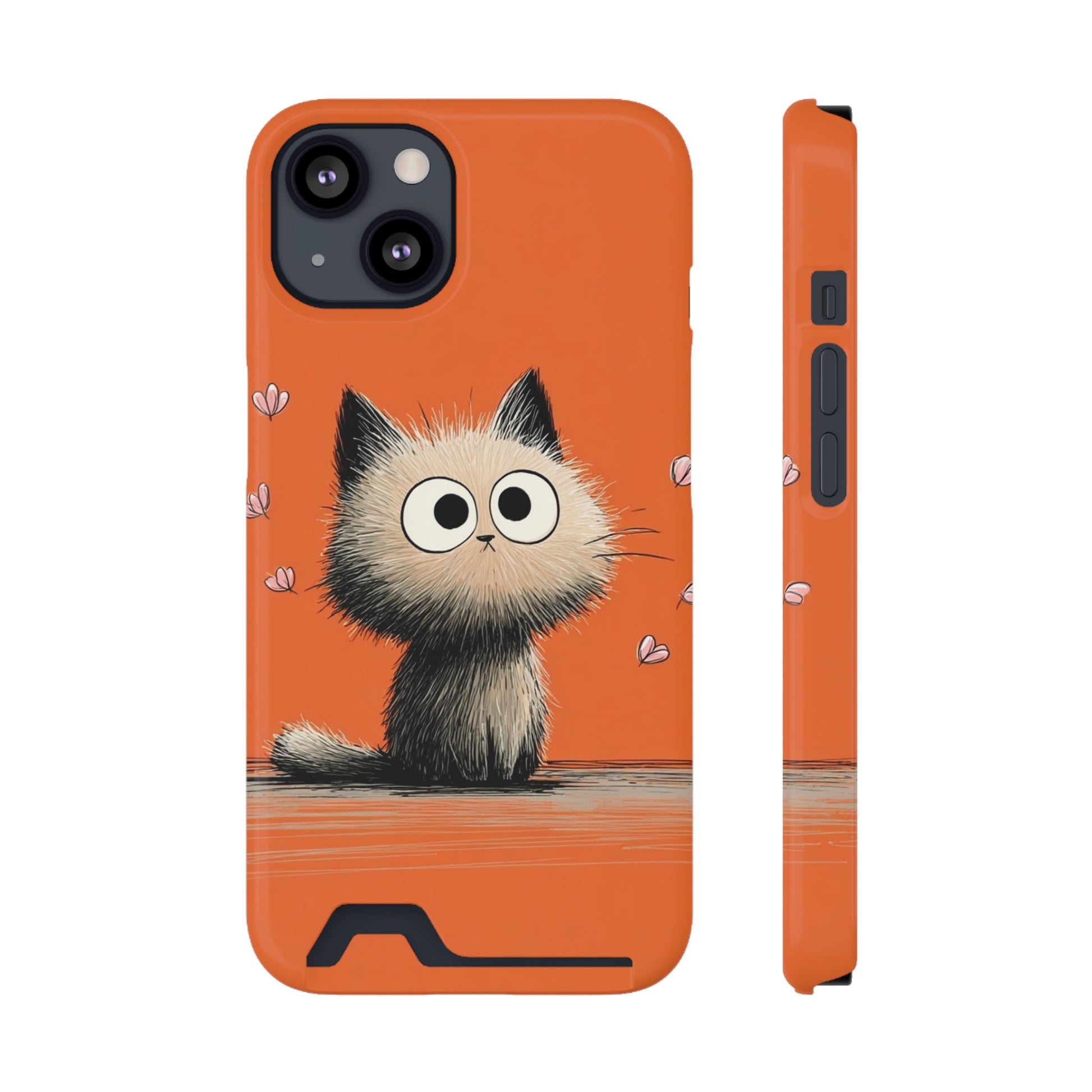 Cute Cat Phone Case with Card Holder, Playful Kitty Design, Pet Lover Gift, Cat Mom Accessory, Fun Birthday Present, Orange Cat Phone Case