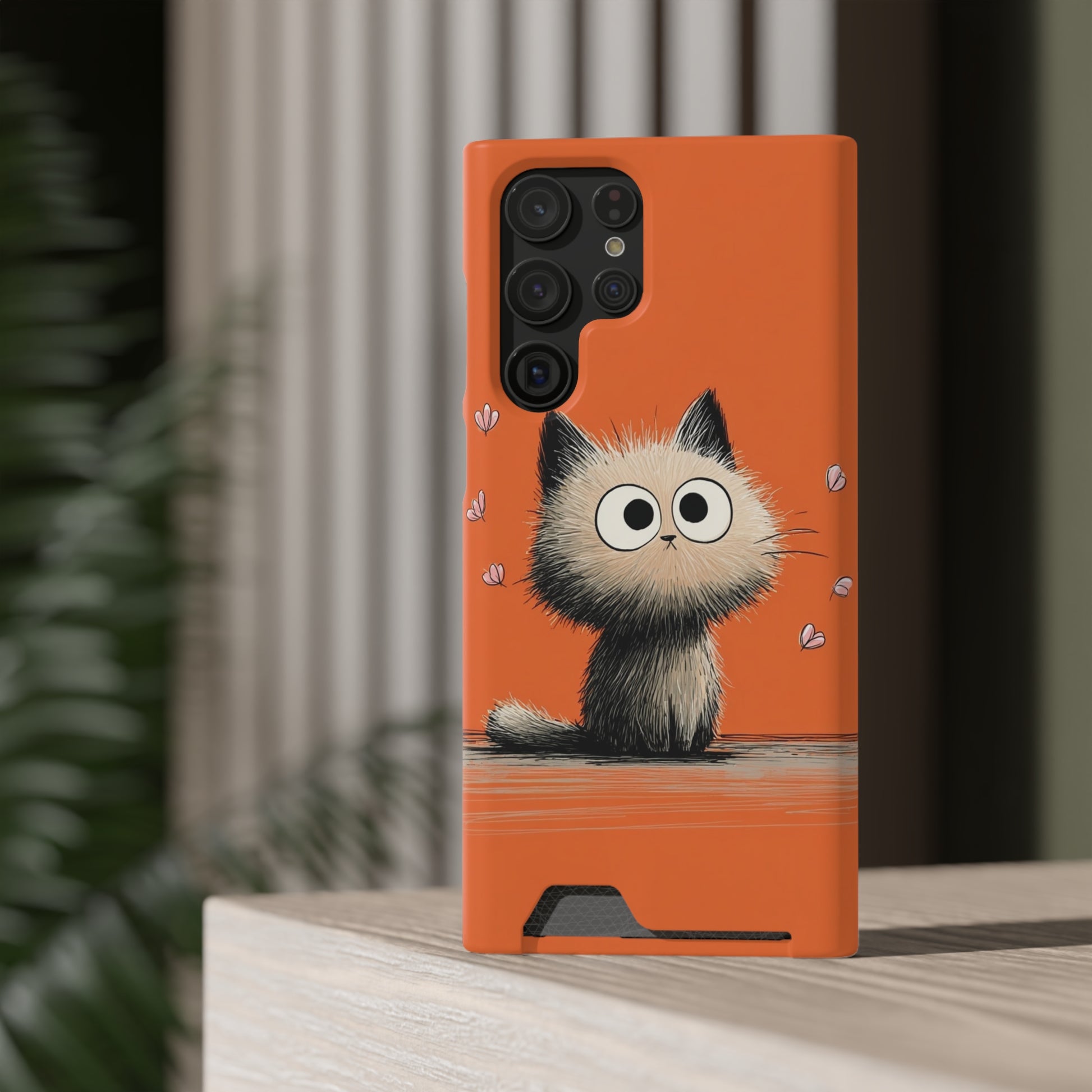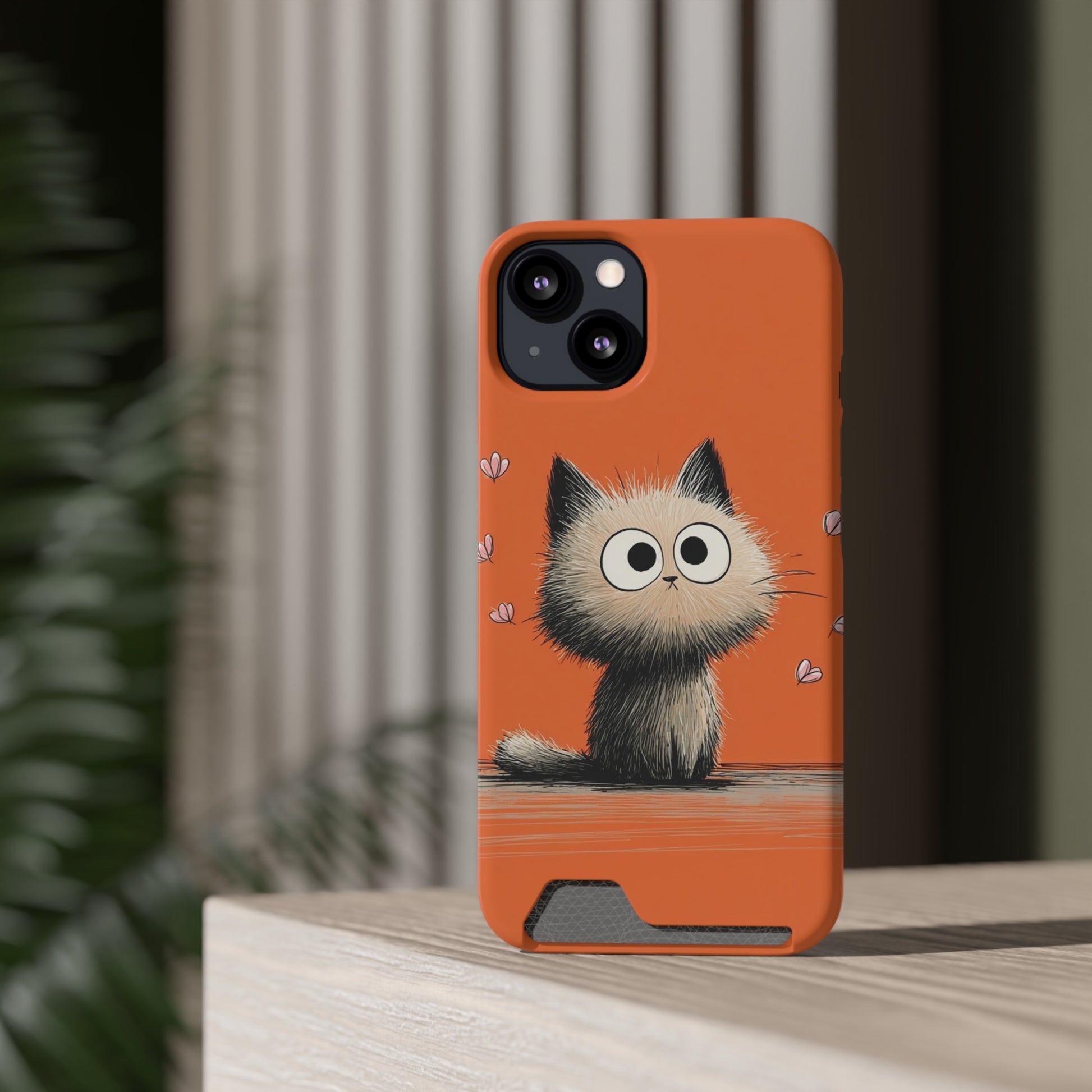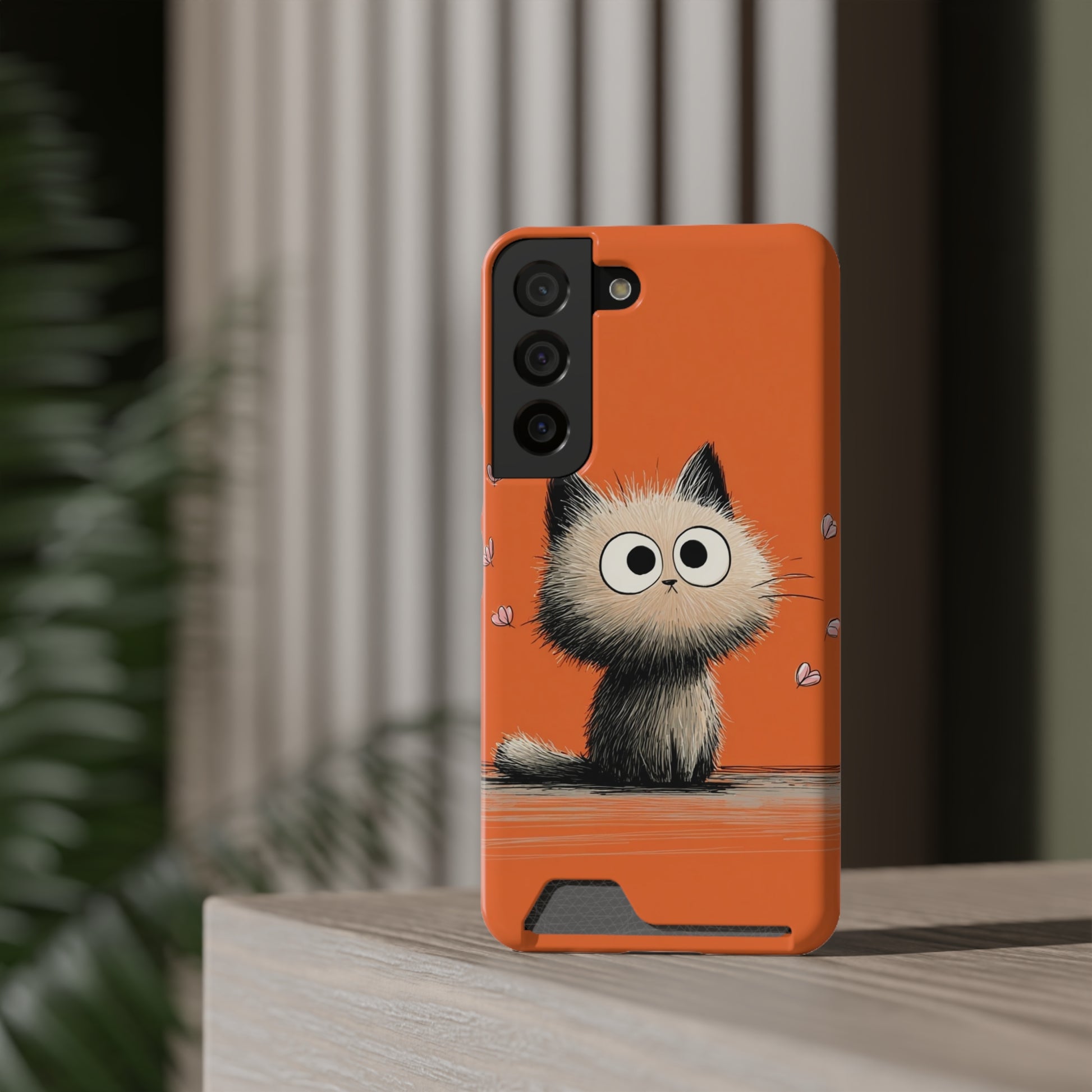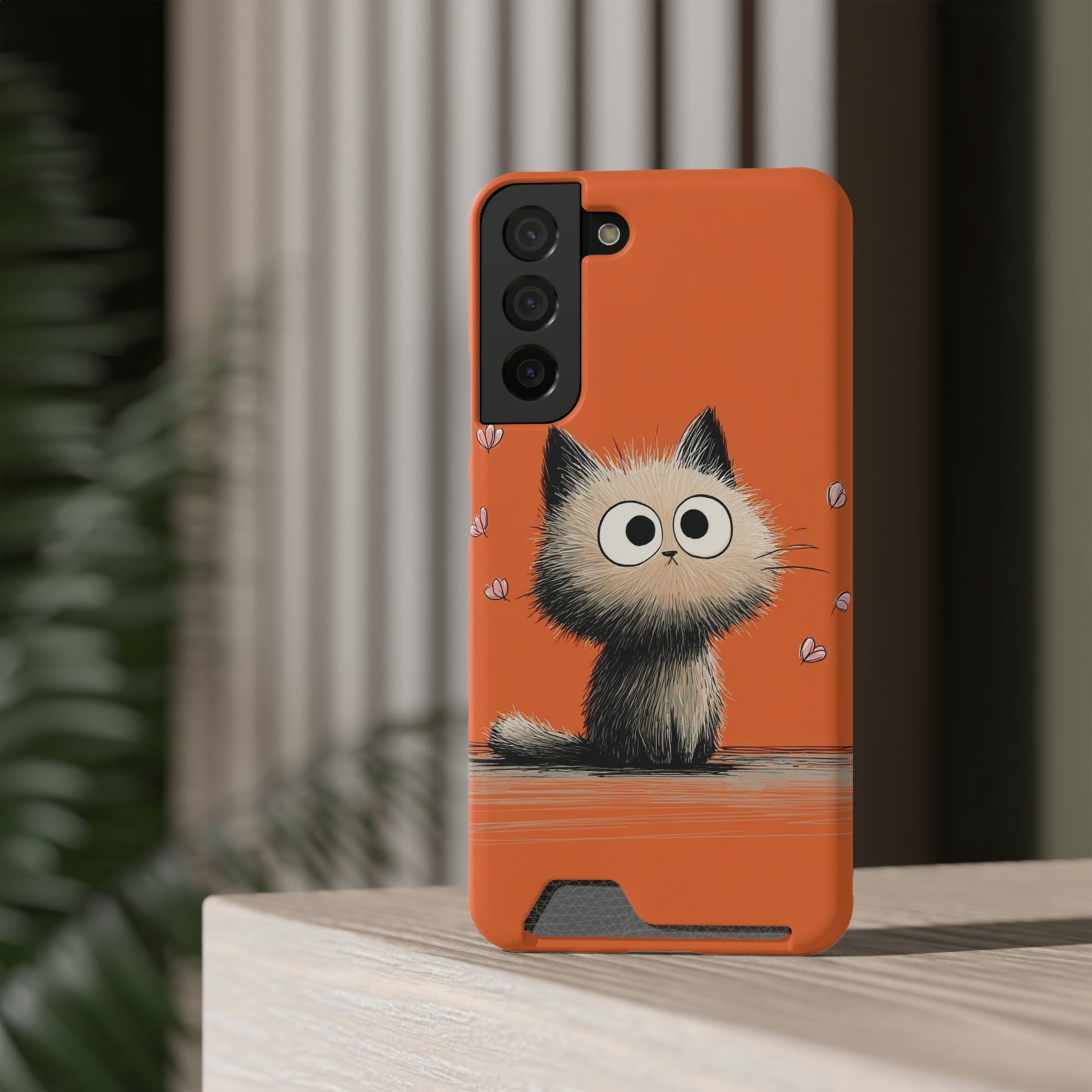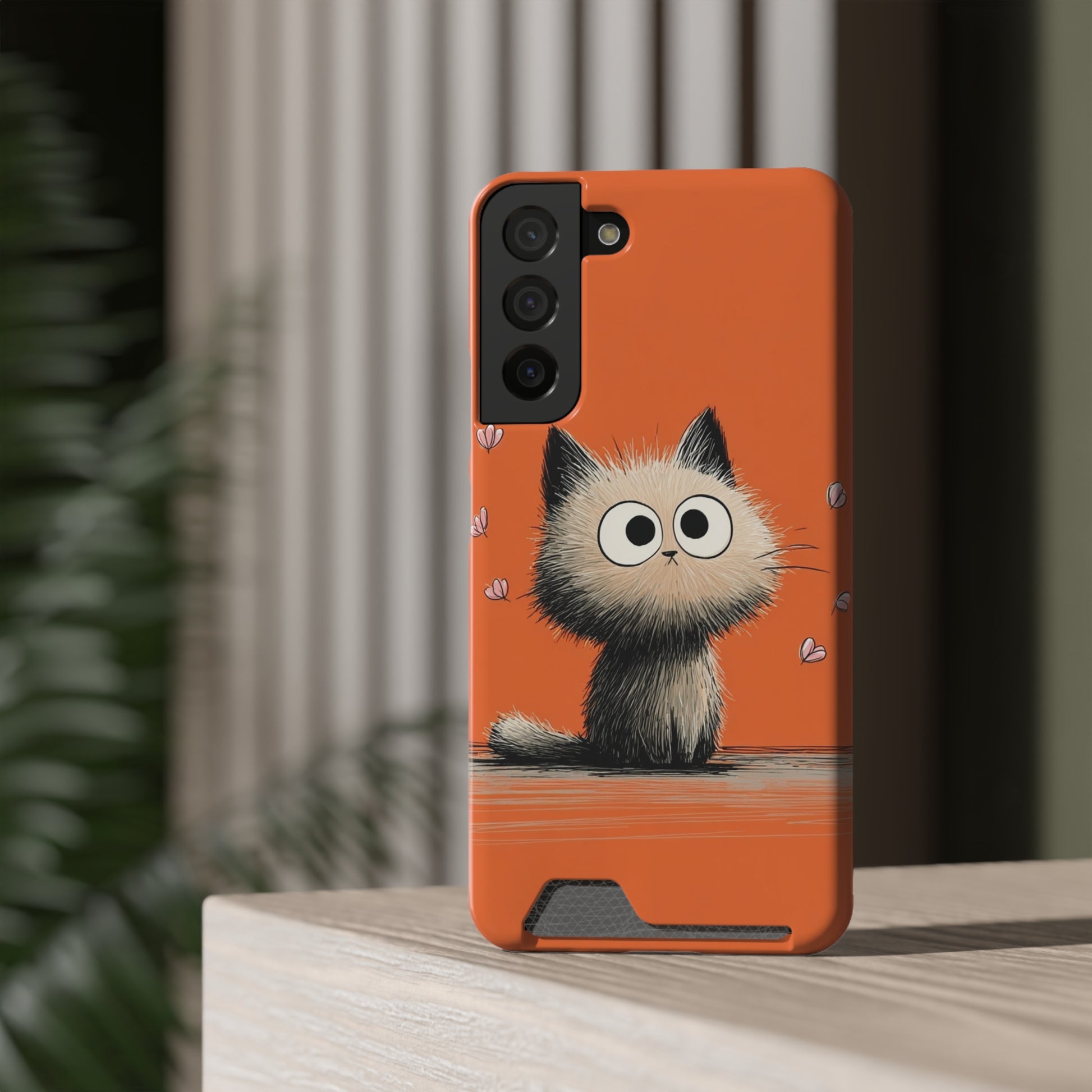 Cute Cat Phone Case with Card Holder, Playful Kitty Design, Pet Lover Gift, Cat Mom Accessory, Fun Birthday Present, Orange Cat Phone Case