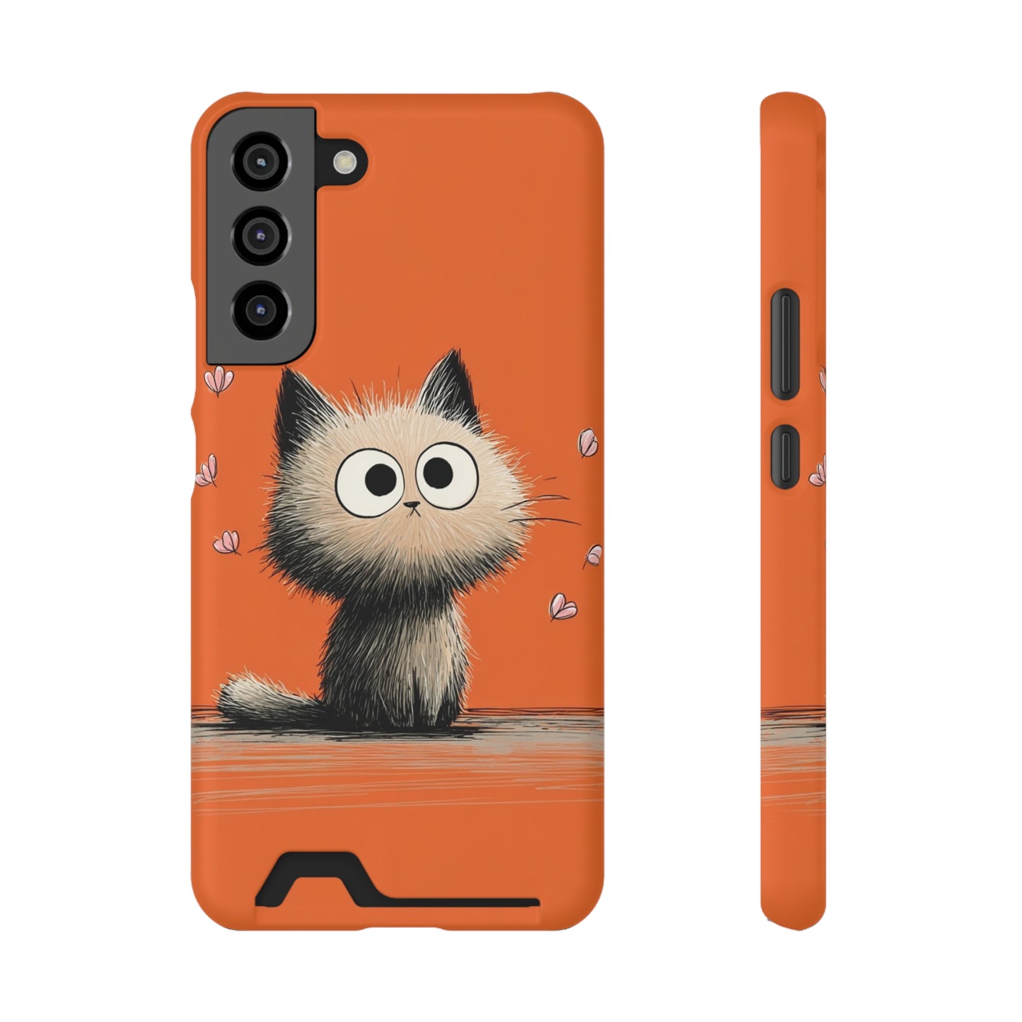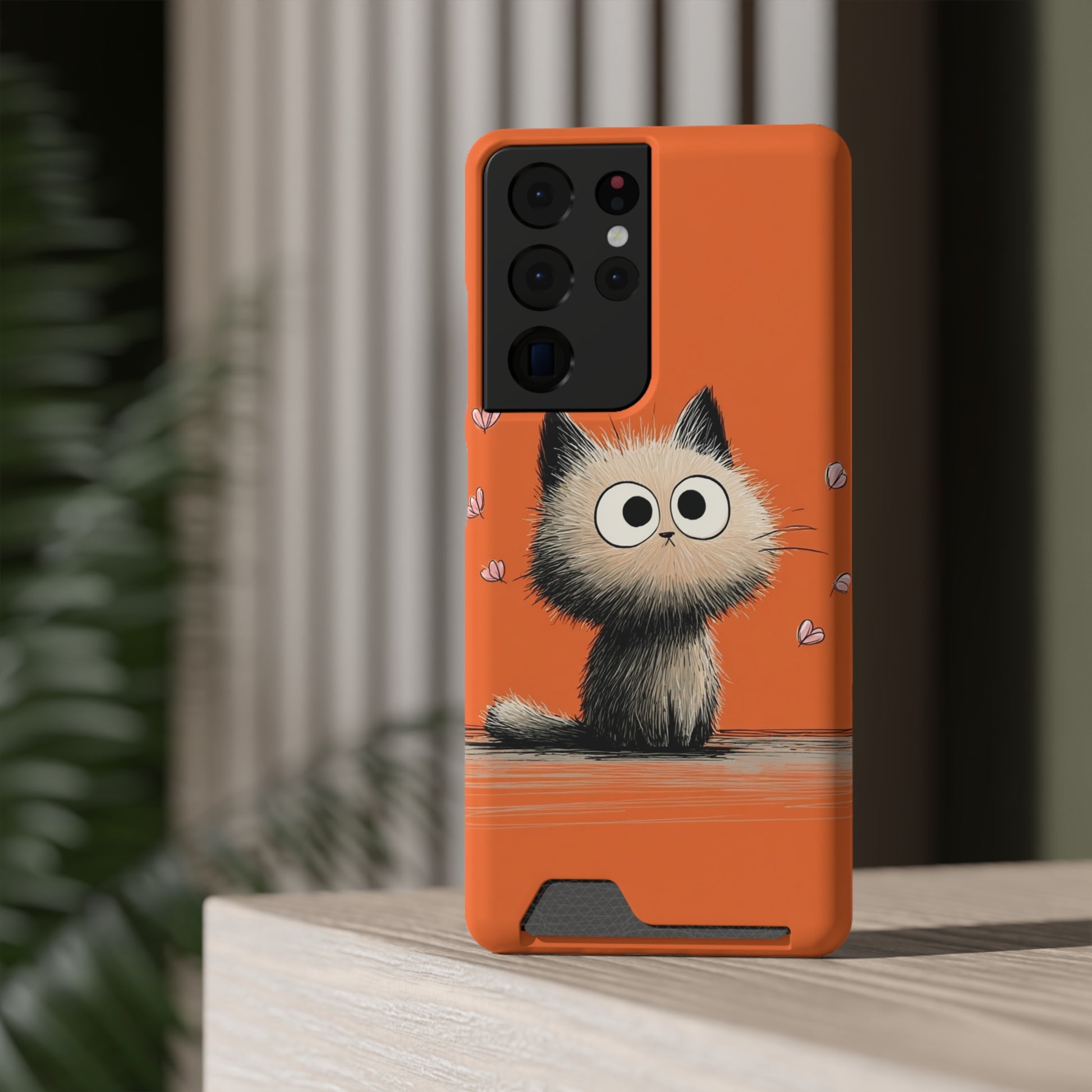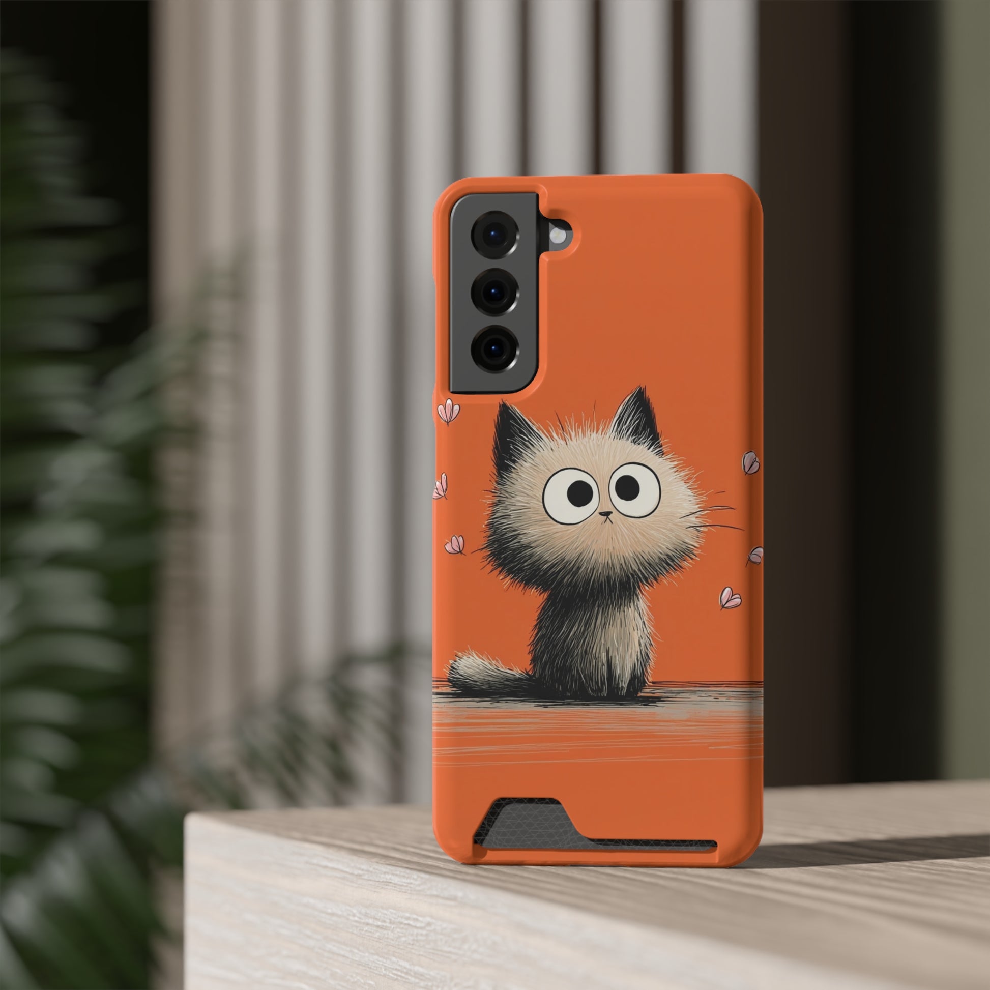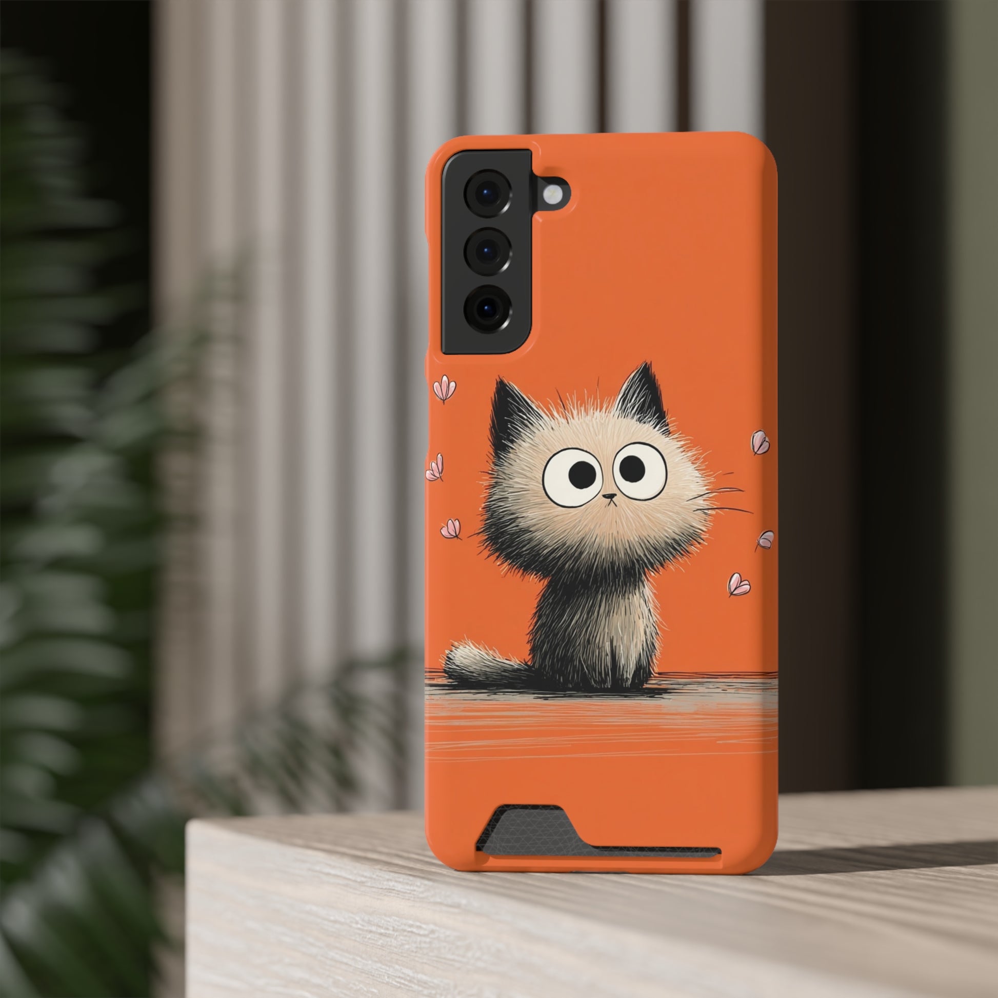 Cute Cat Phone Case with Card Holder, Playful Kitty Design, Pet Lover Gift, Cat Mom Accessory, Fun Birthday Present, Orange Cat Phone Case