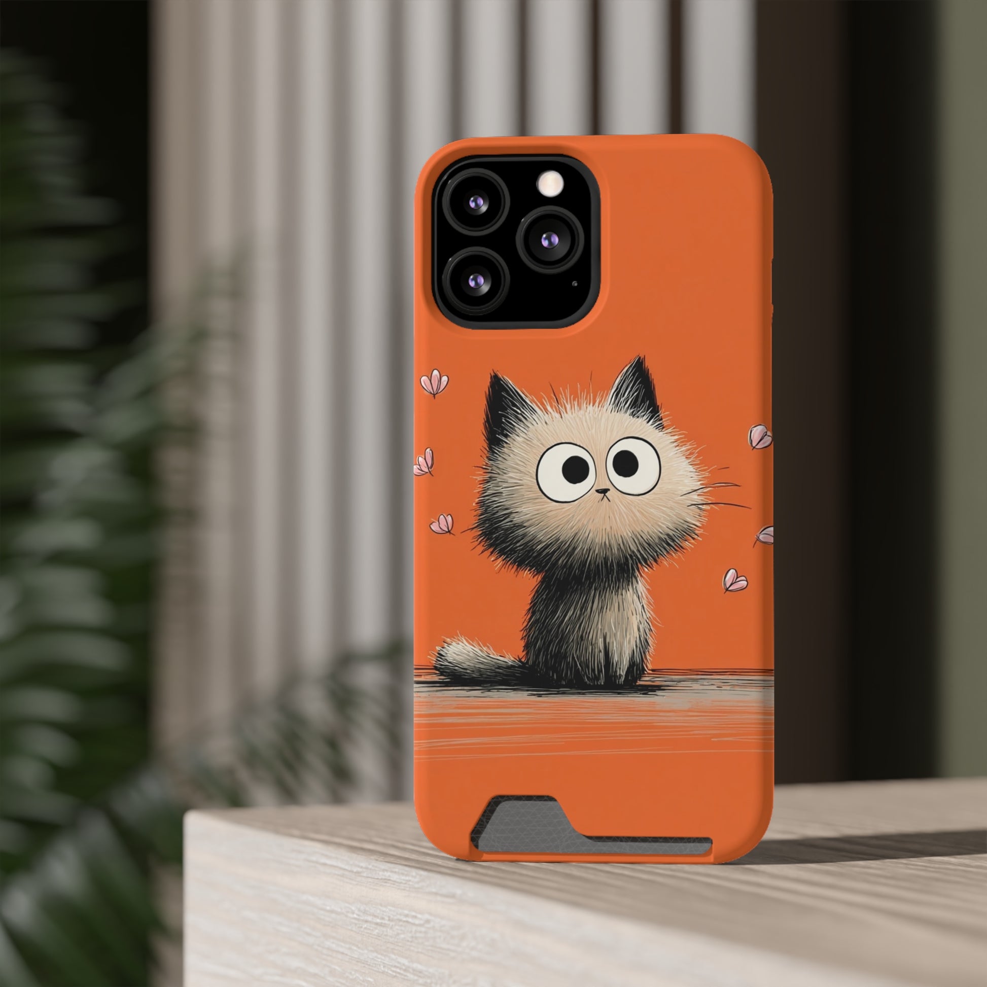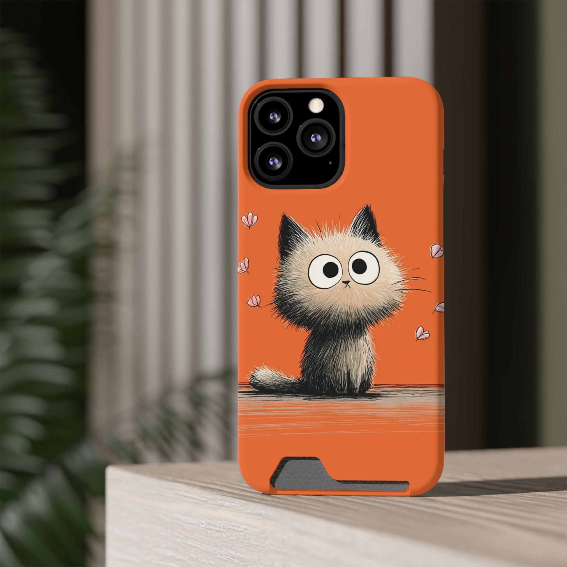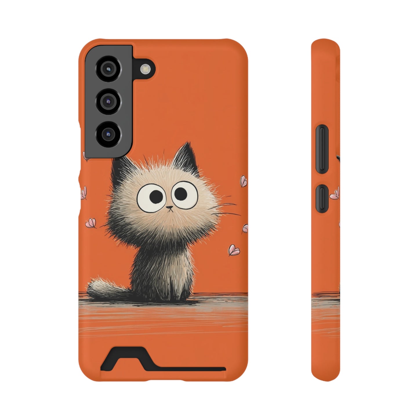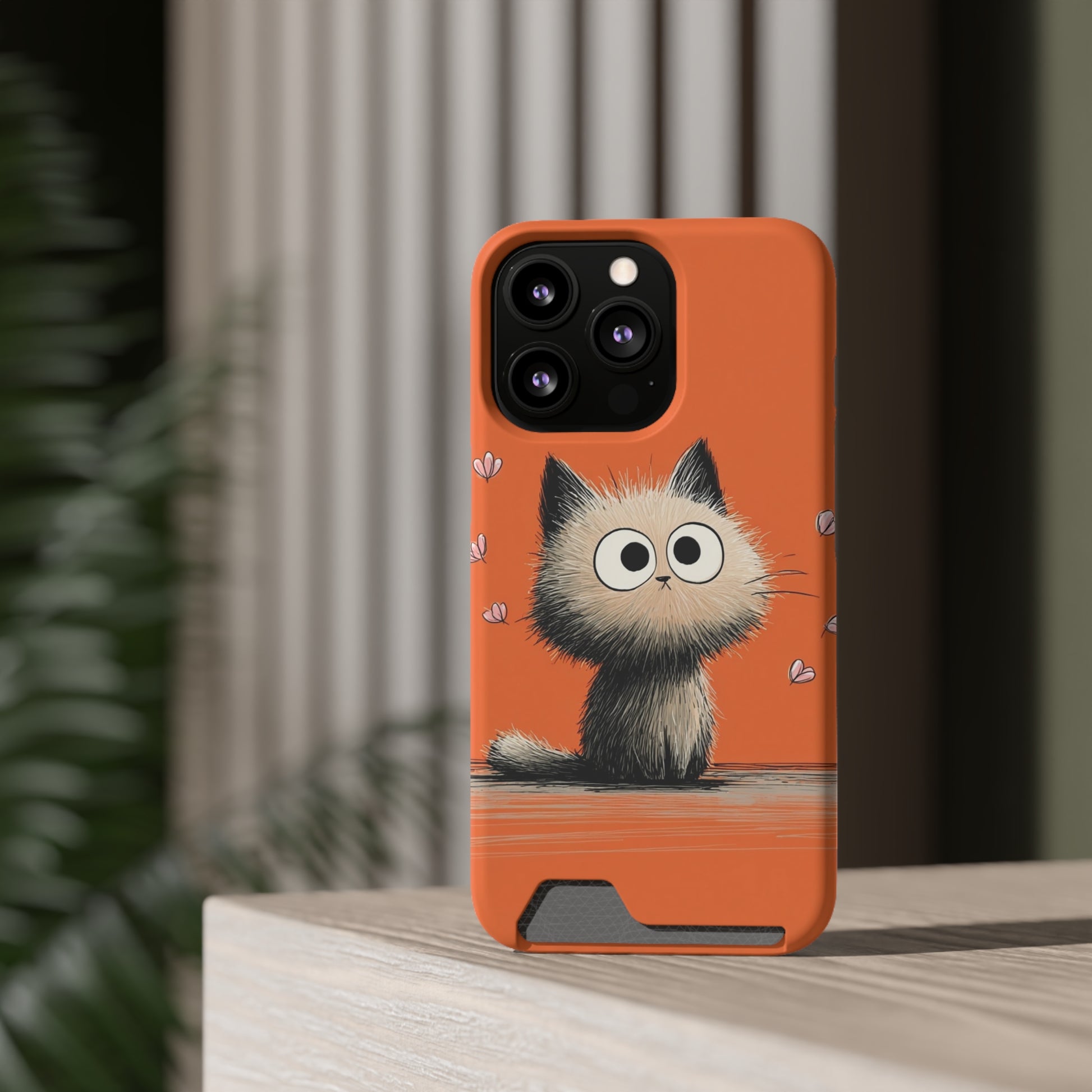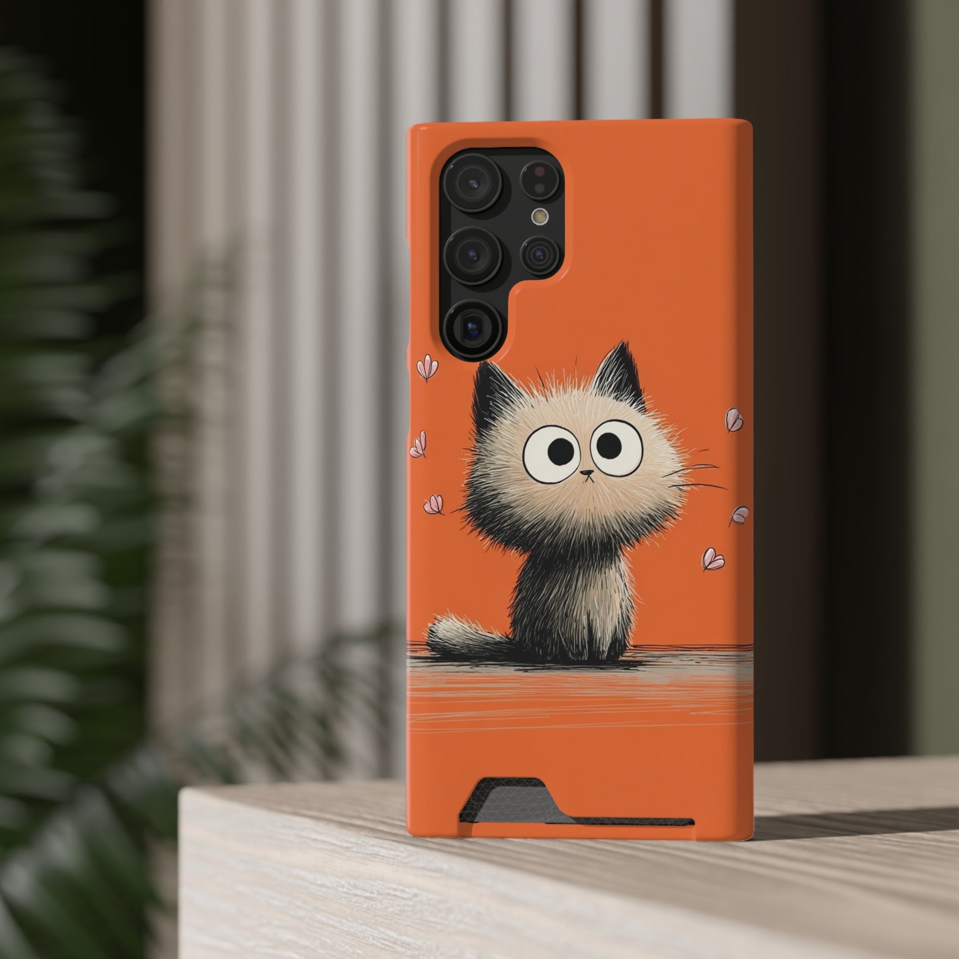 Cute Cat Phone Case with Card Holder, Playful Kitty Design, Pet Lover Gift, Cat Mom Accessory, Fun Birthday Present, Orange Cat Phone Case