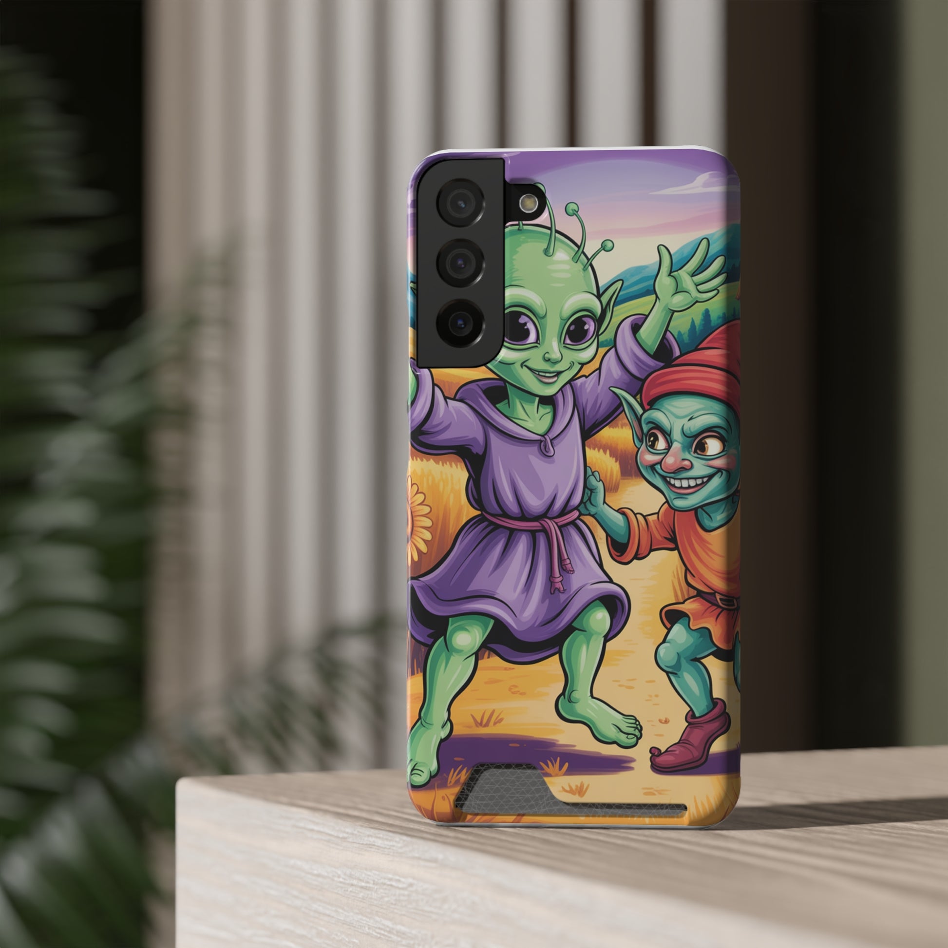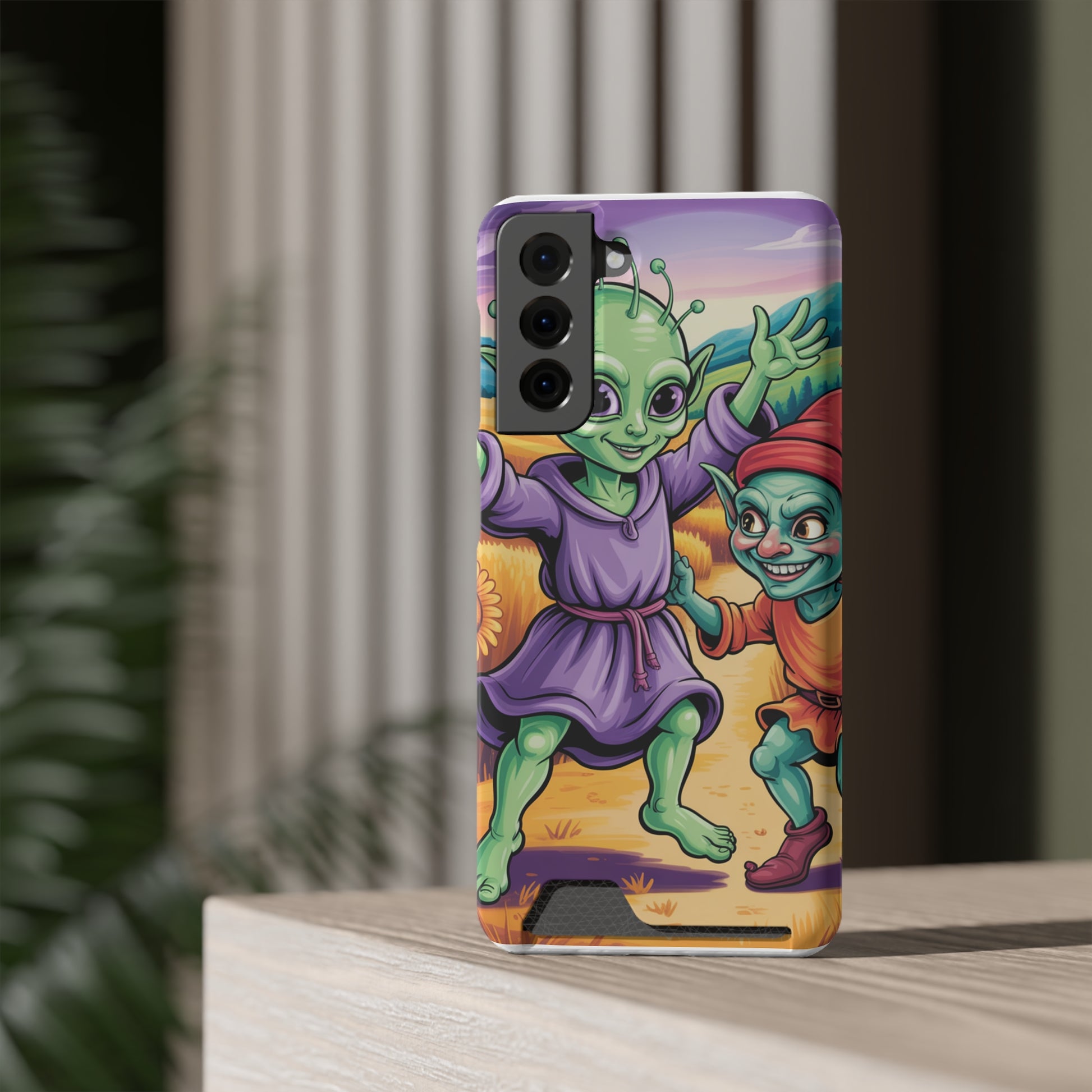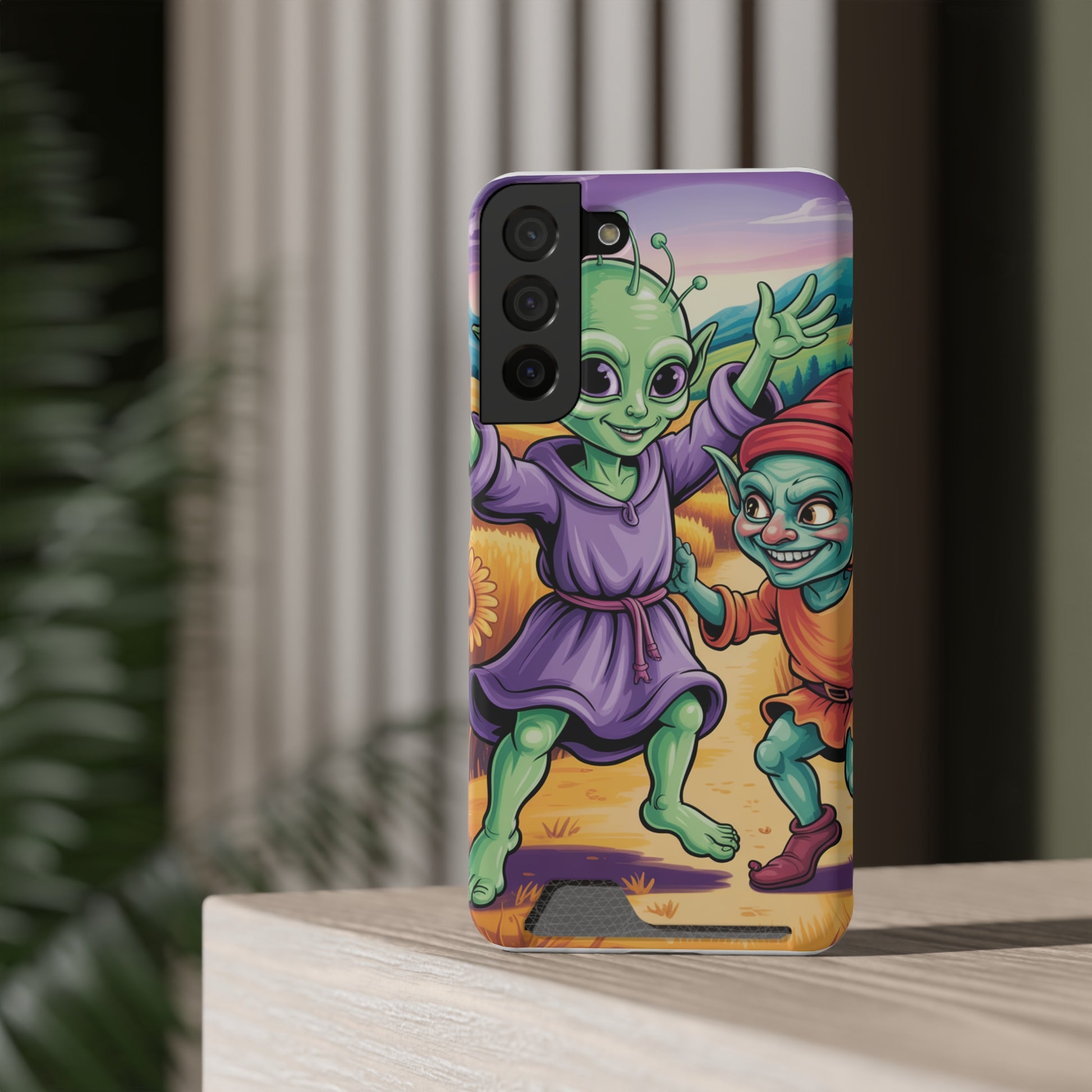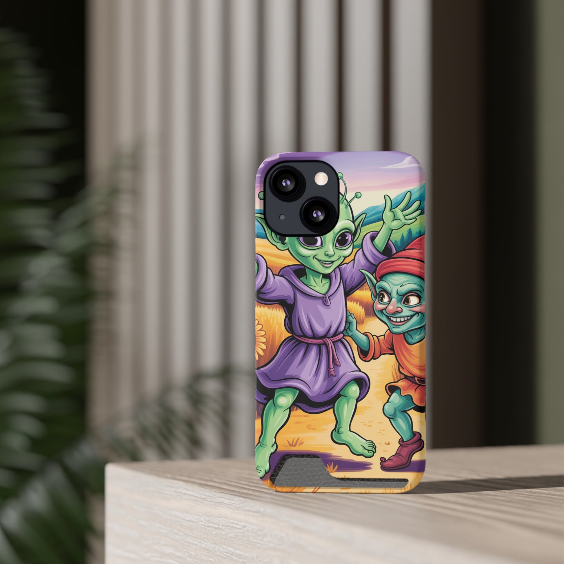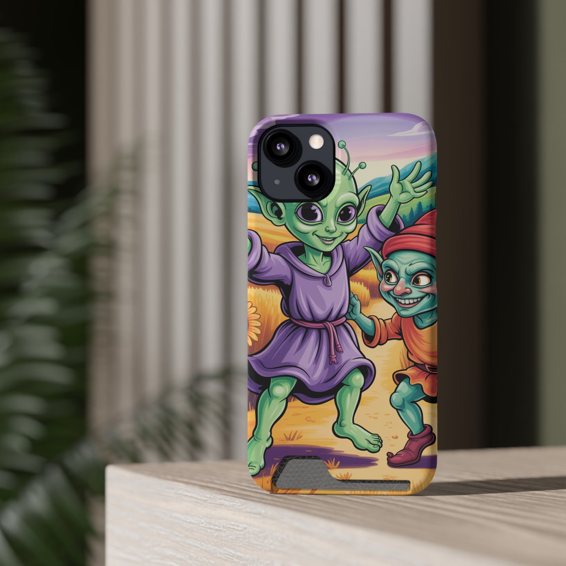 Playful Alien Phone Case with Card Holder | Cute Green Characters | Gift for Kids, Sci-Fi Fanatic, Birthday Fun, Unique Design