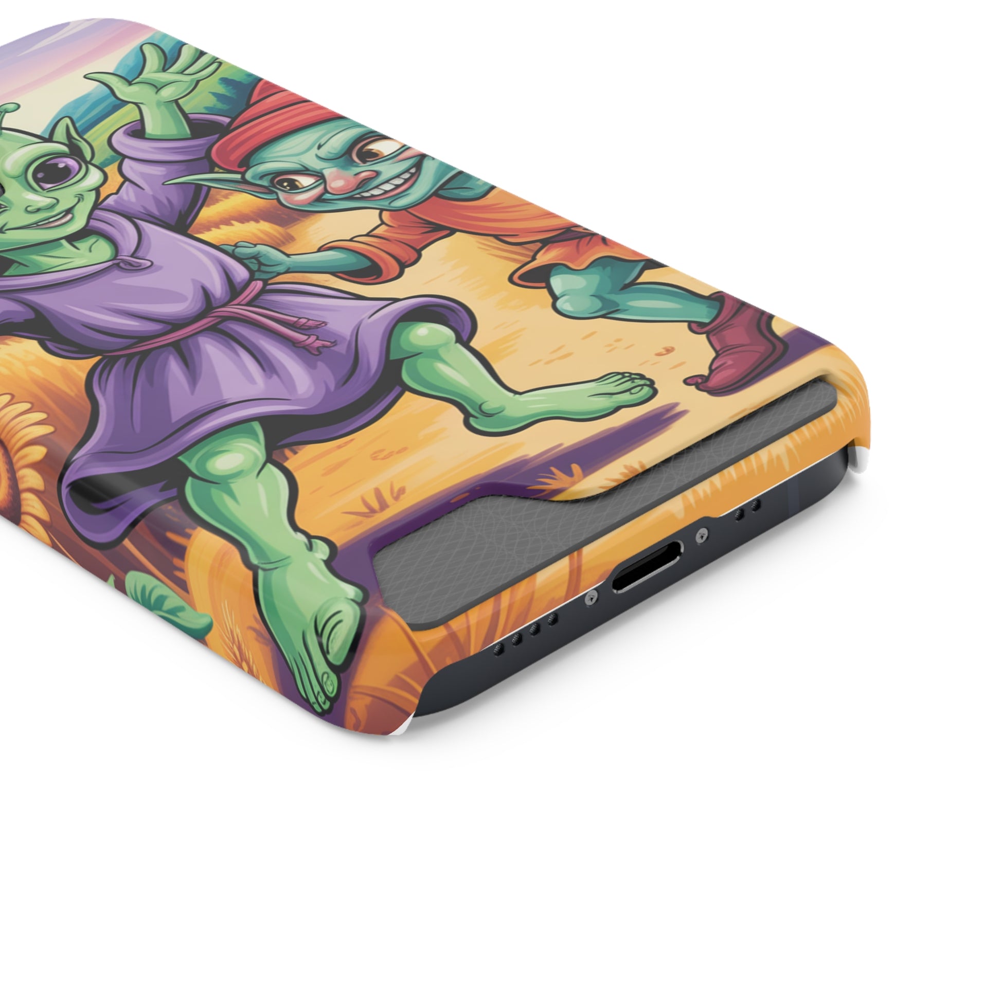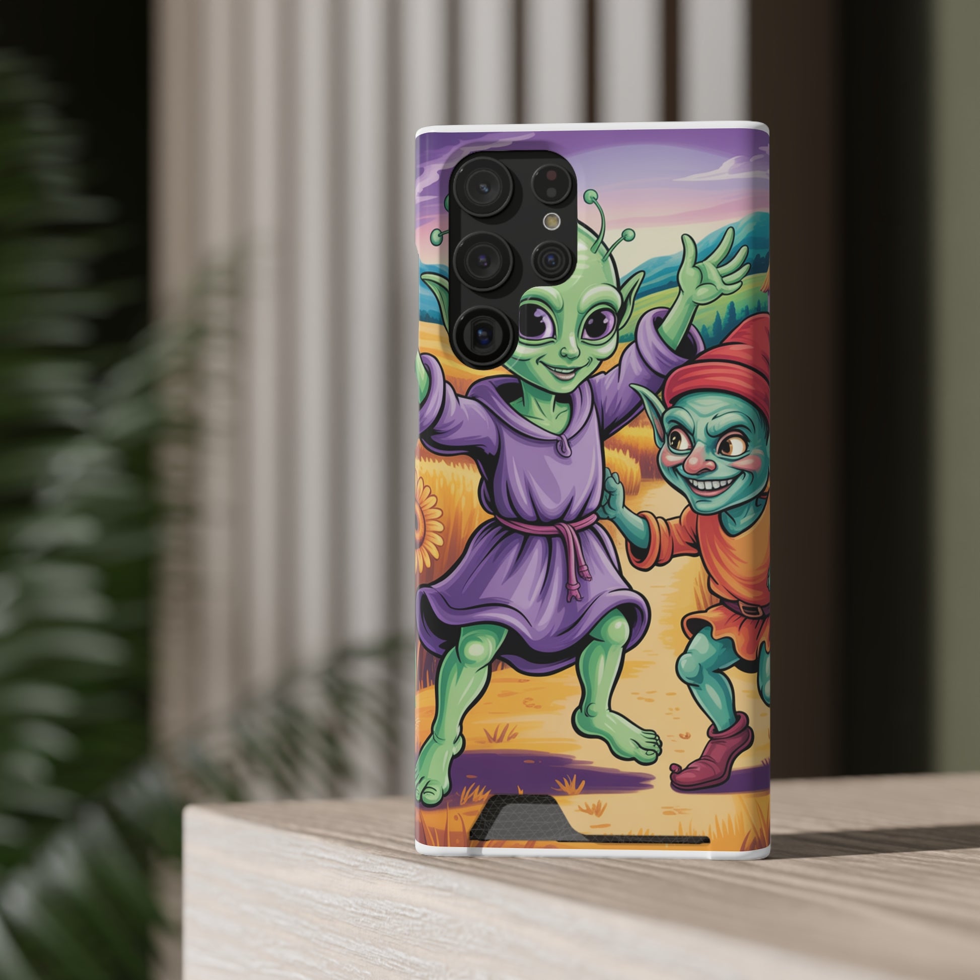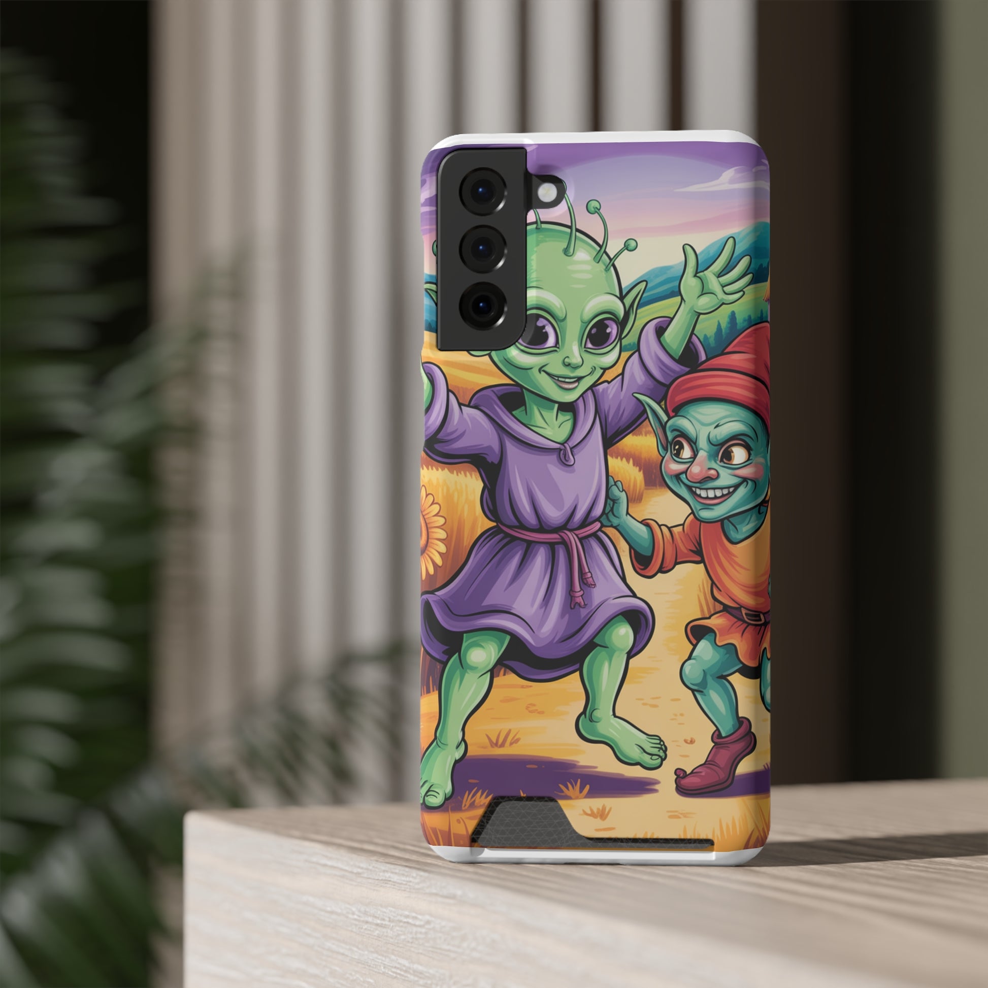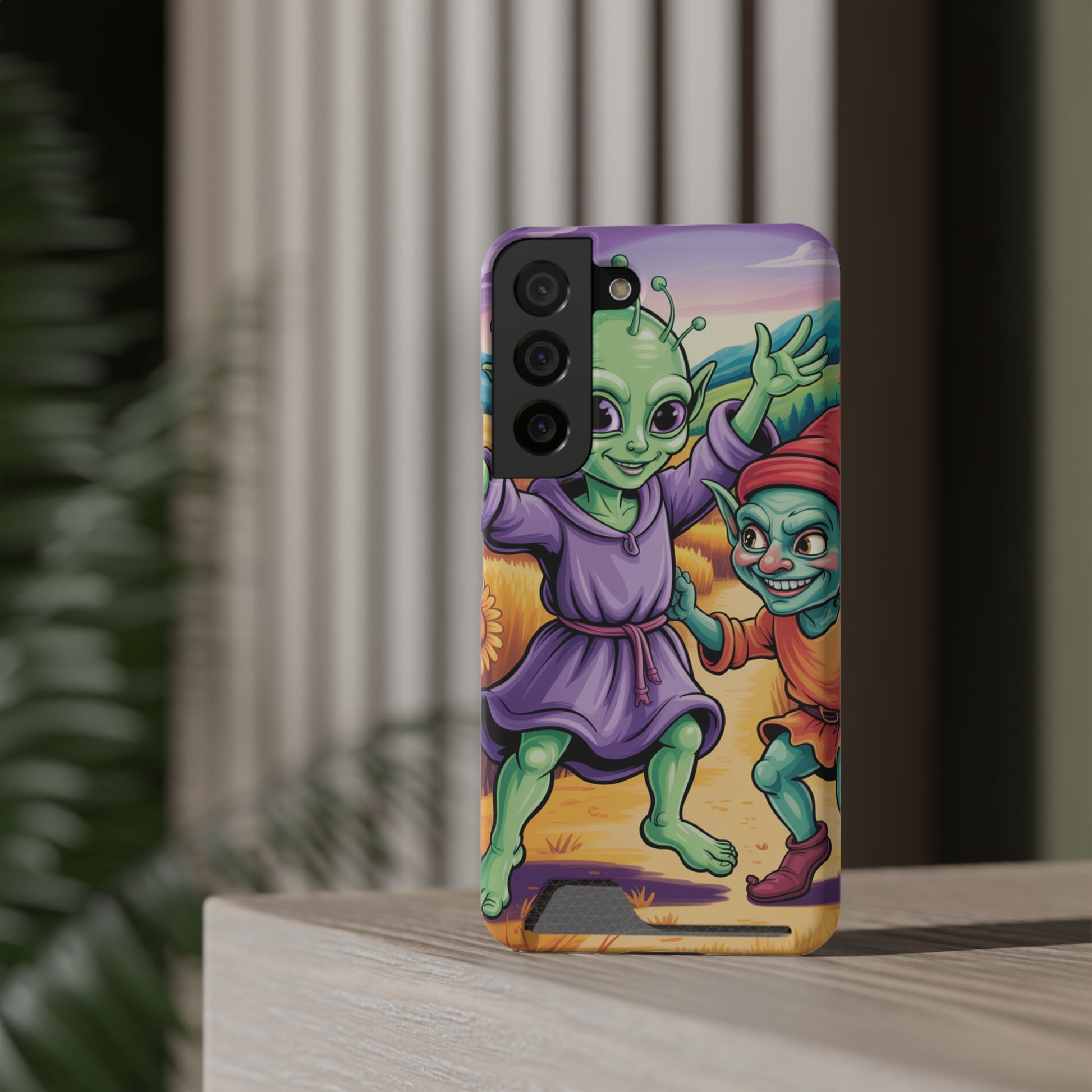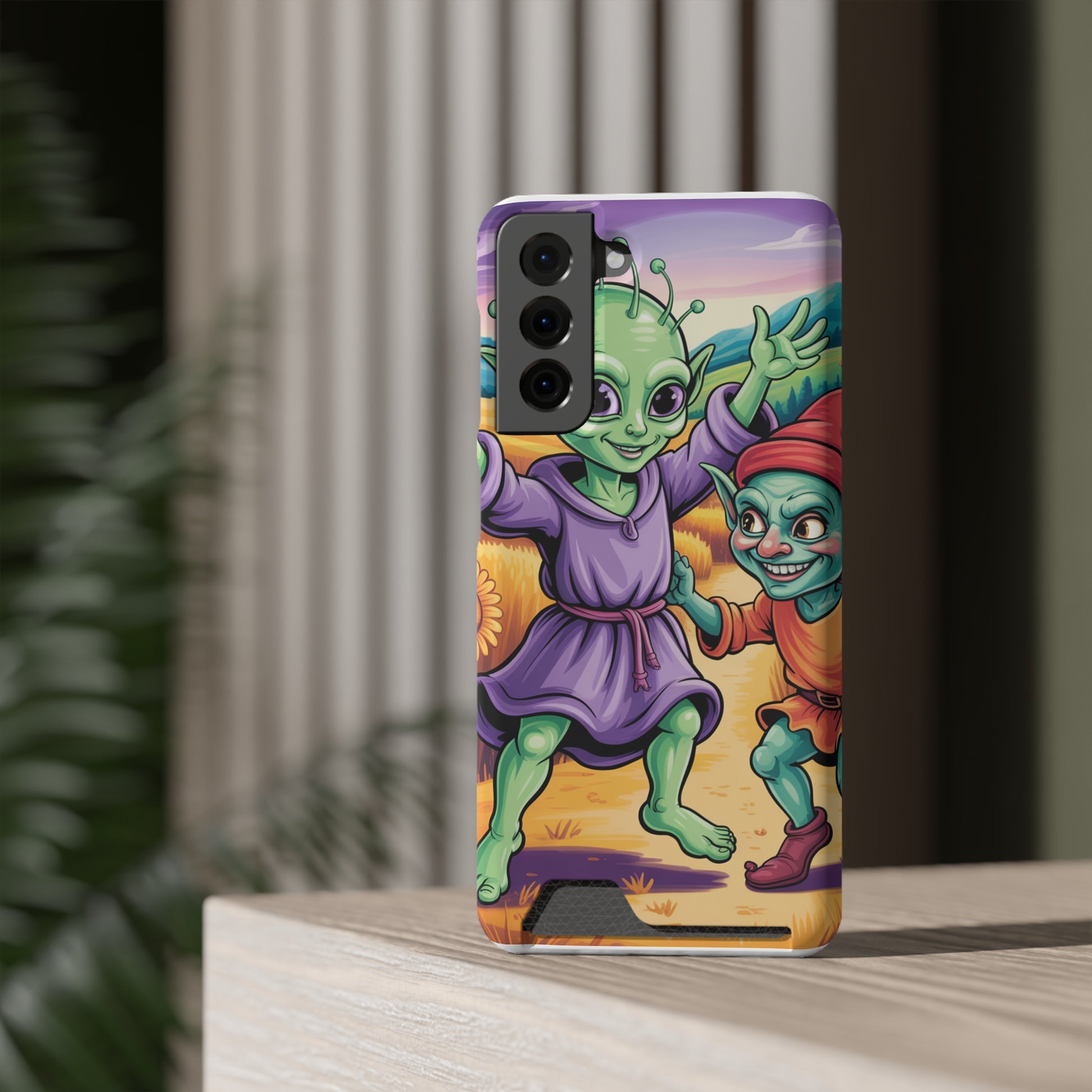 Playful Alien Phone Case with Card Holder | Cute Green Characters | Gift for Kids, Sci-Fi Fanatic, Birthday Fun, Unique Design