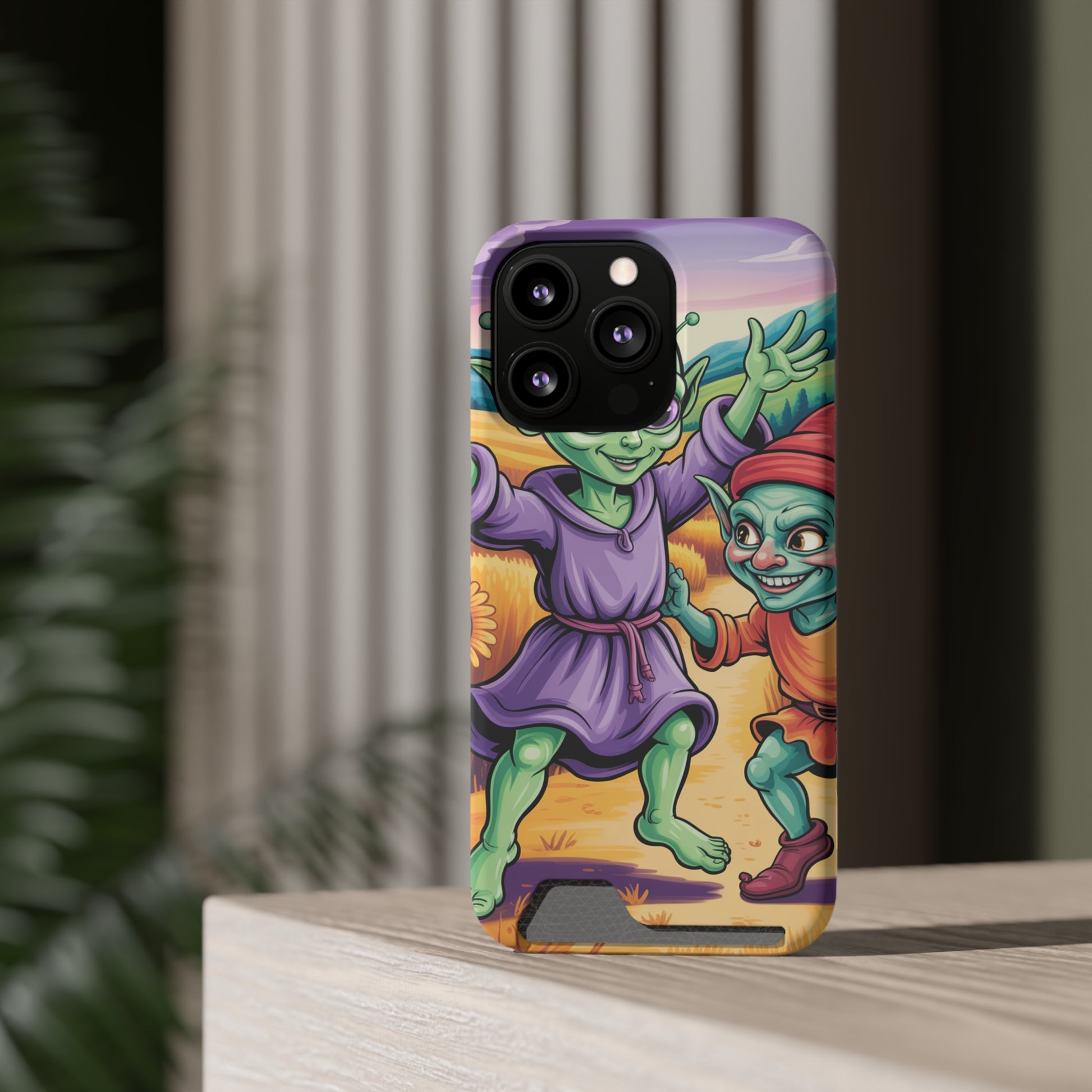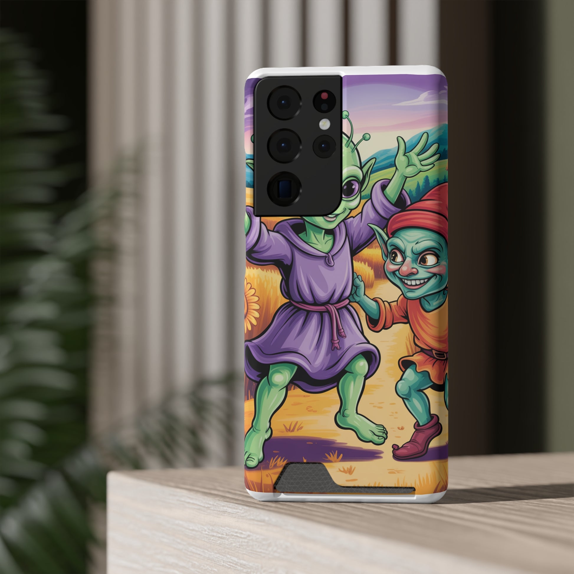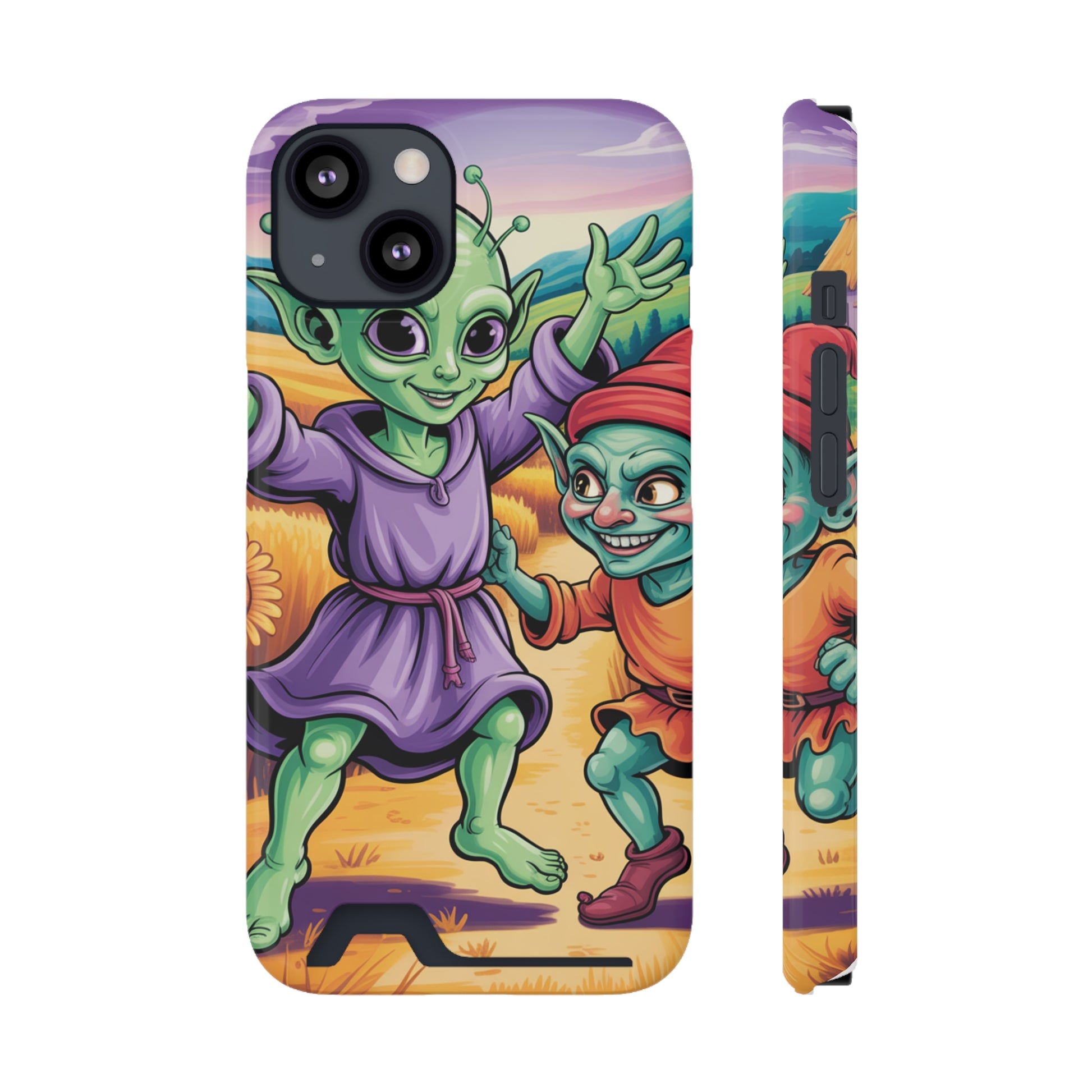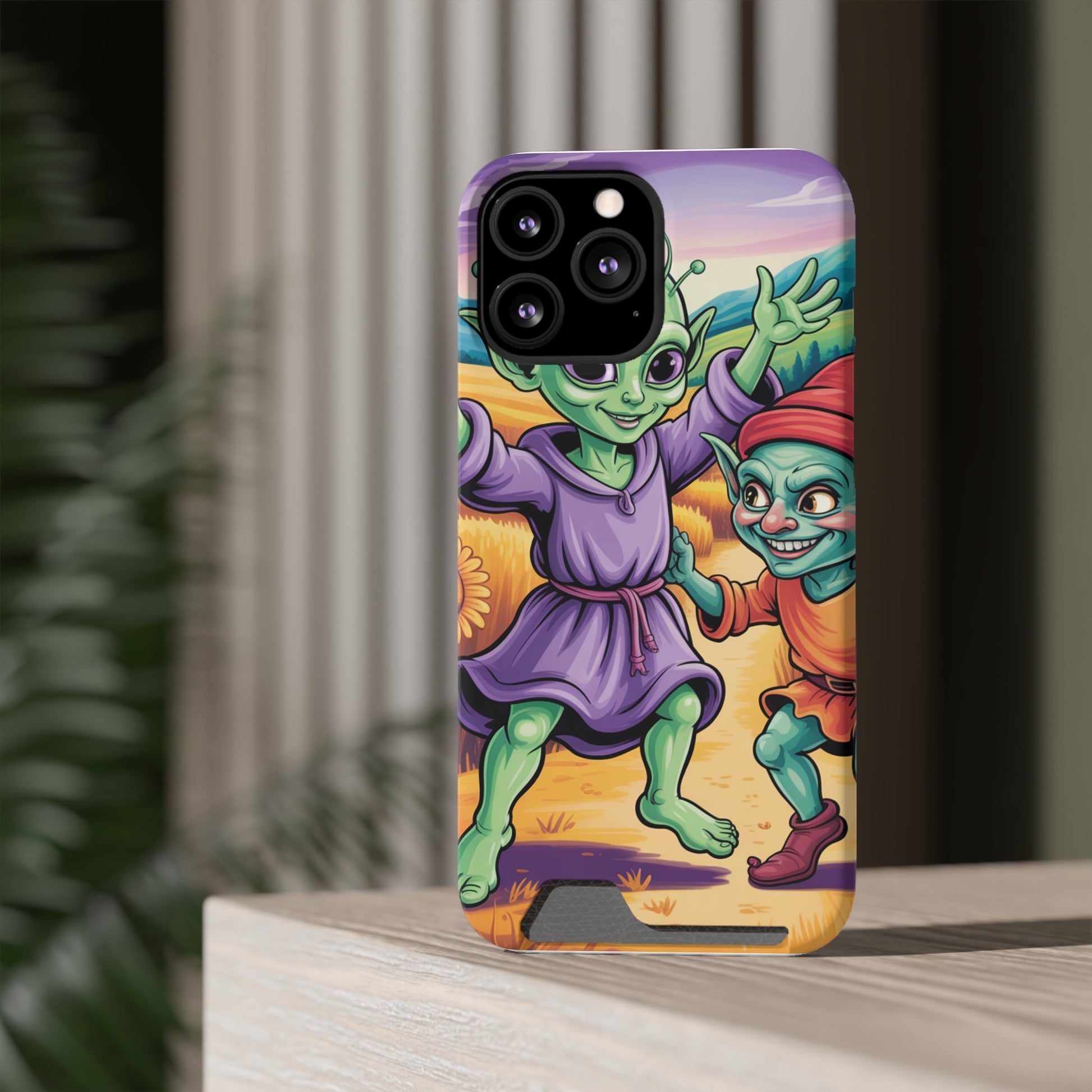 Playful Alien Phone Case with Card Holder | Cute Green Characters | Gift for Kids, Sci-Fi Fanatic, Birthday Fun, Unique Design