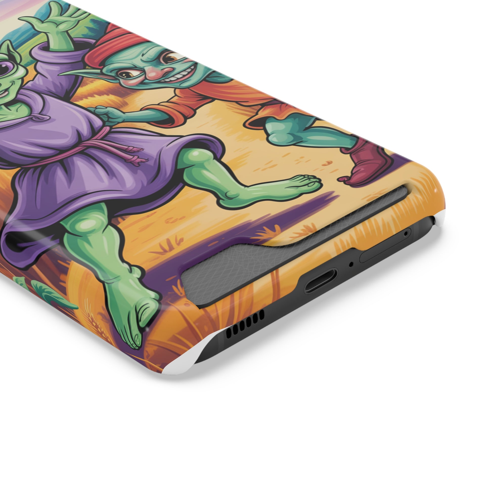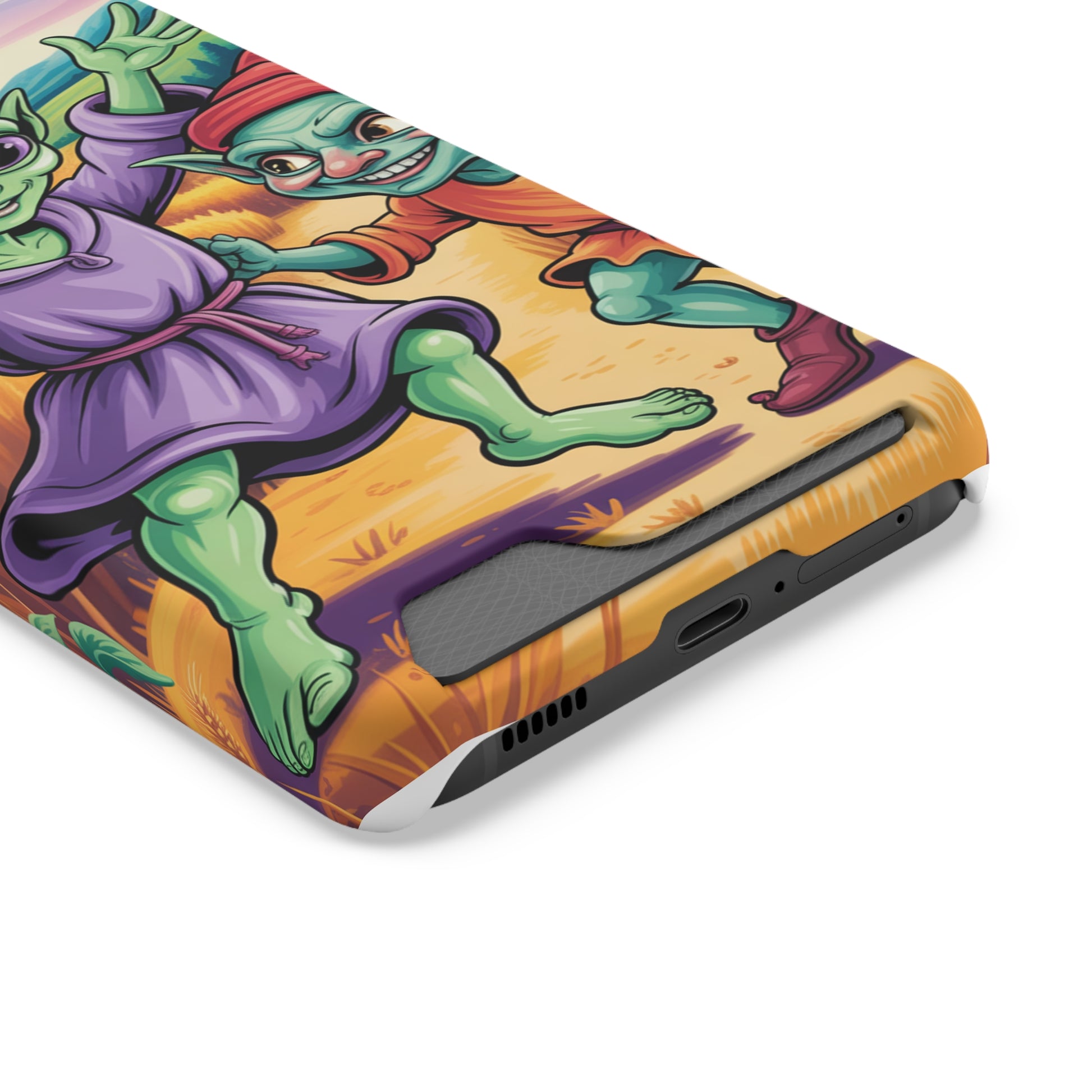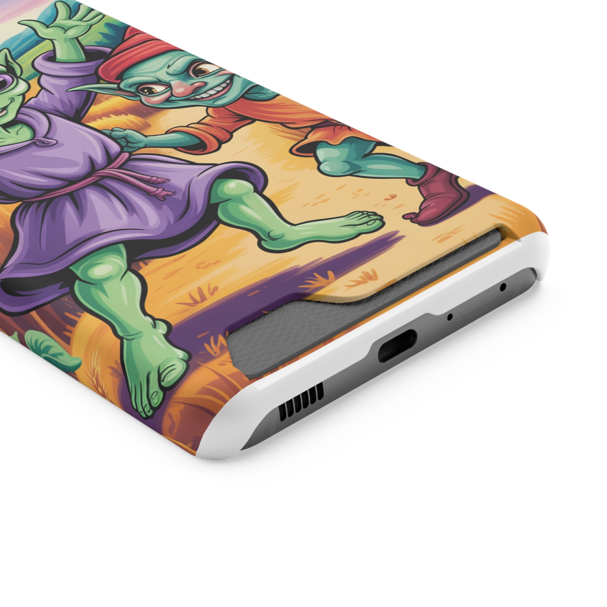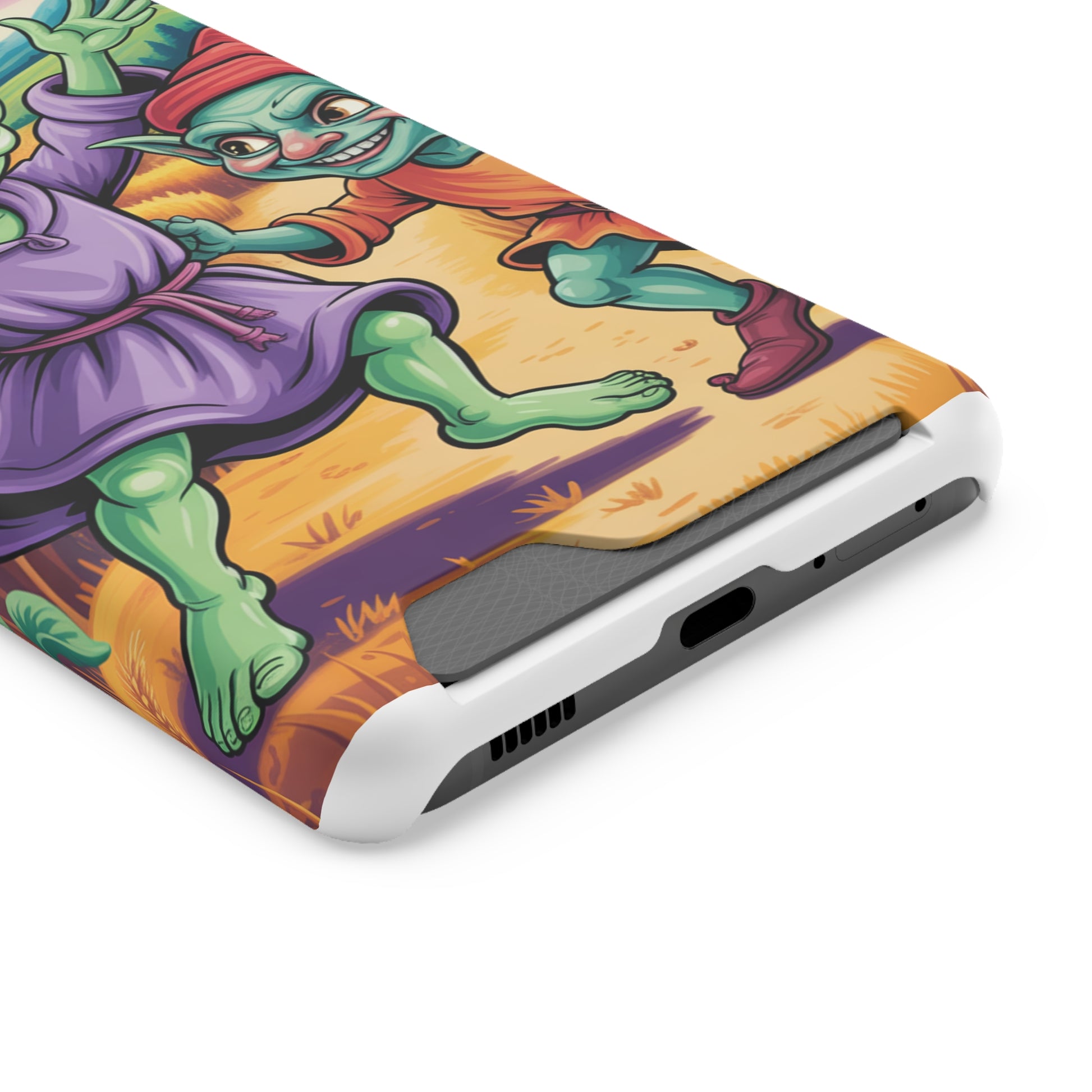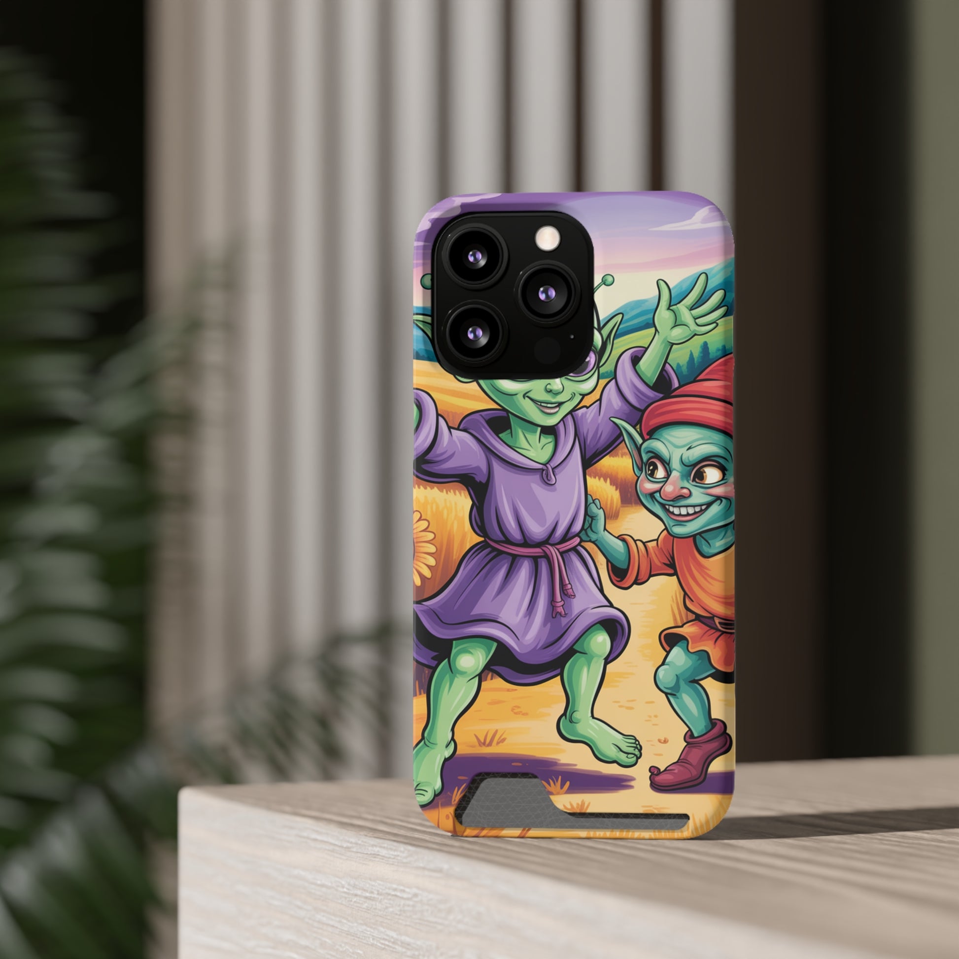 Playful Alien Phone Case with Card Holder | Cute Green Characters | Gift for Kids, Sci-Fi Fanatic, Birthday Fun, Unique Design