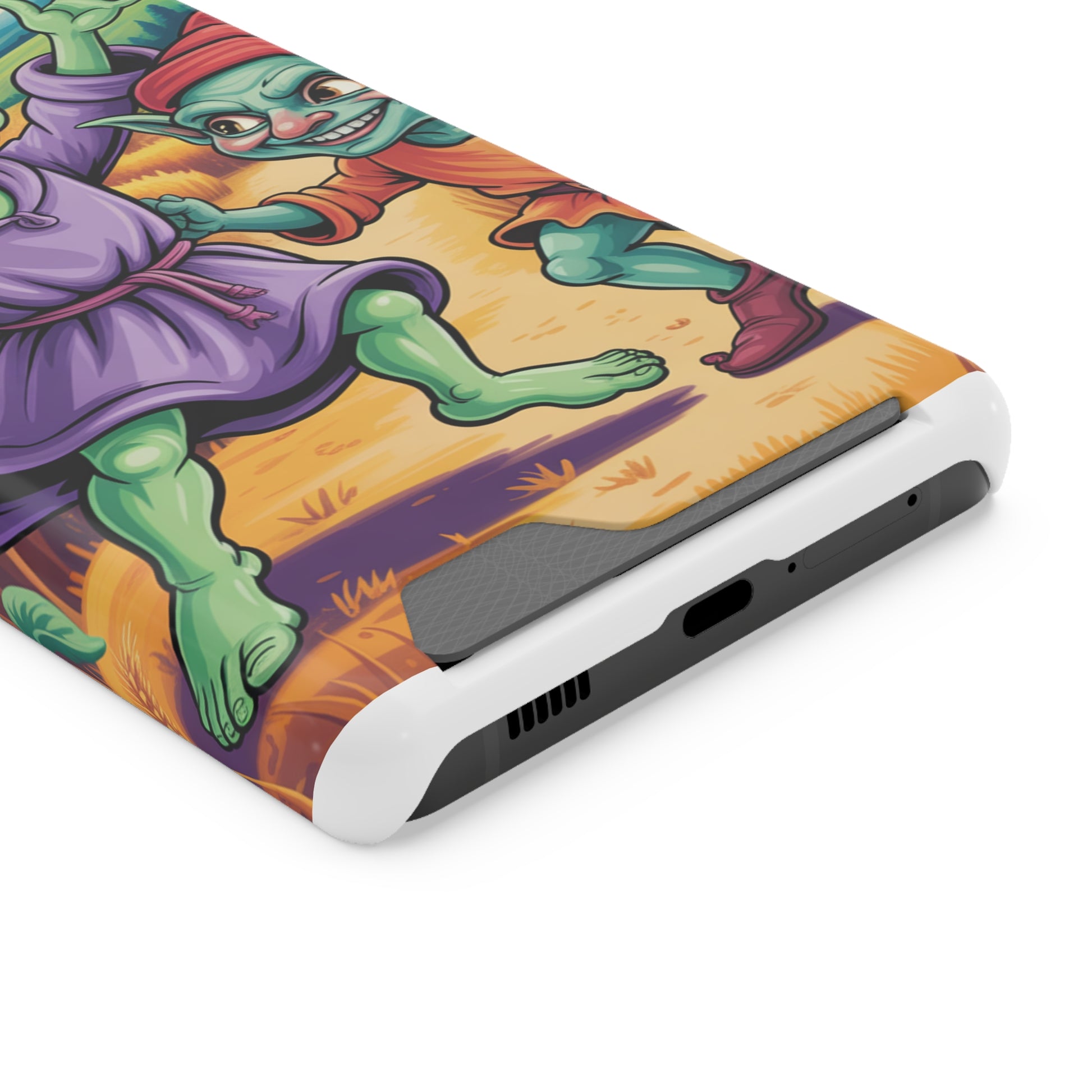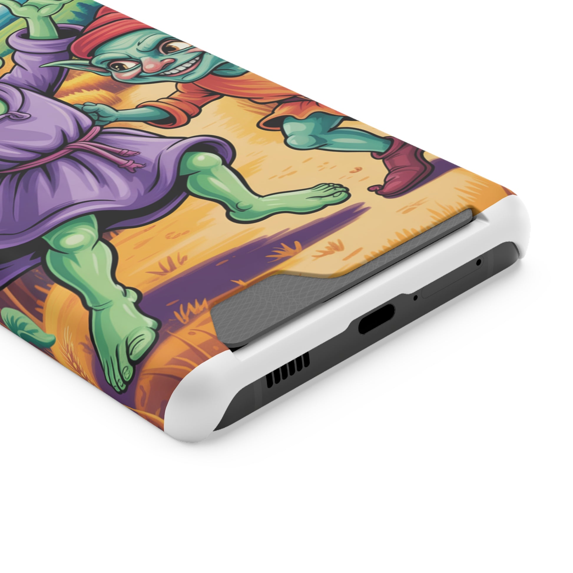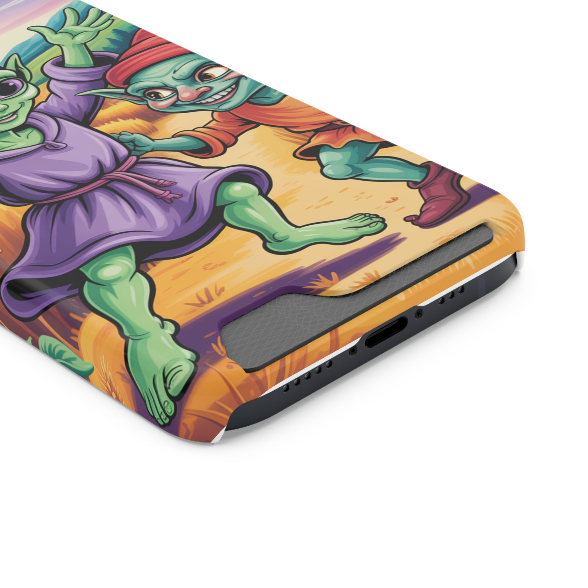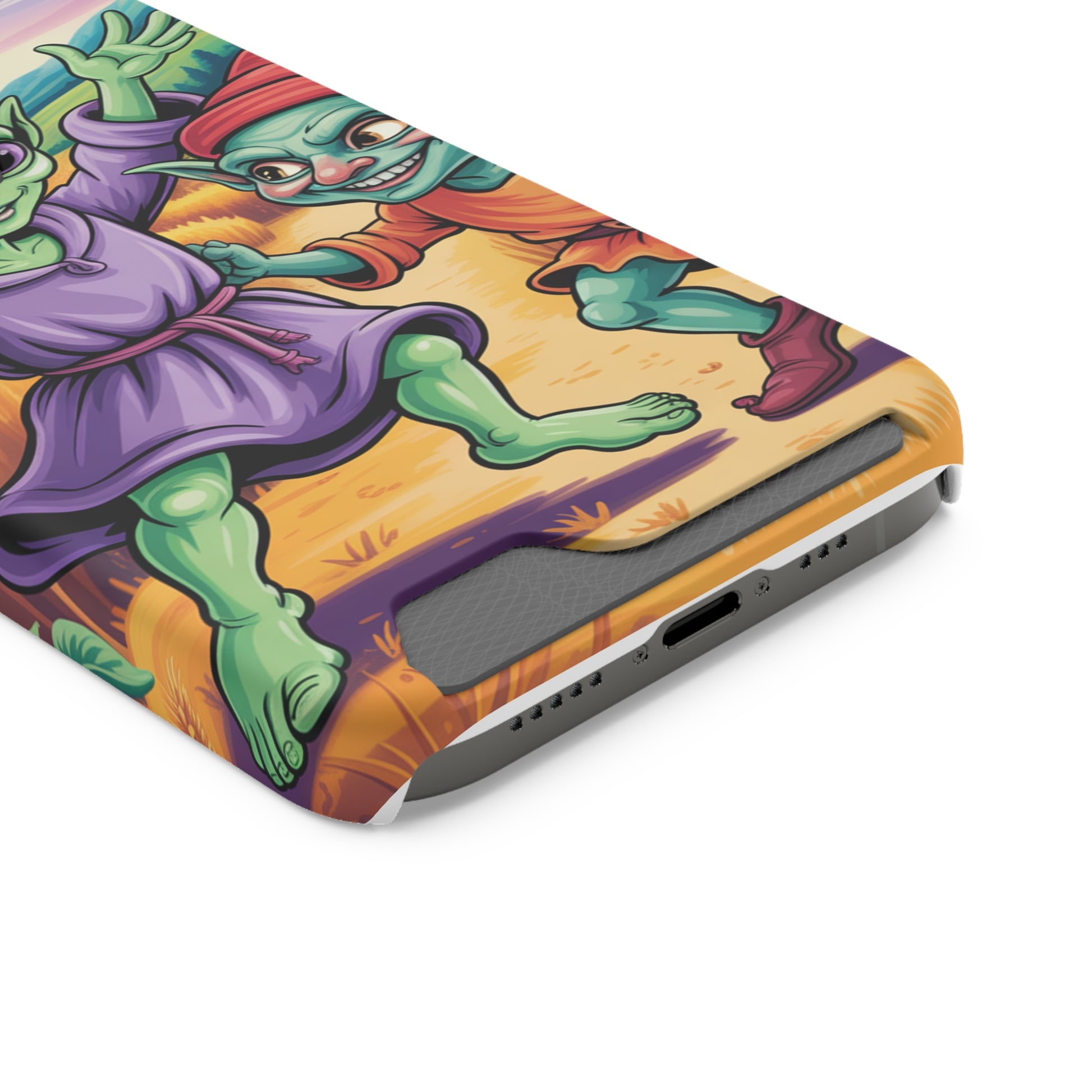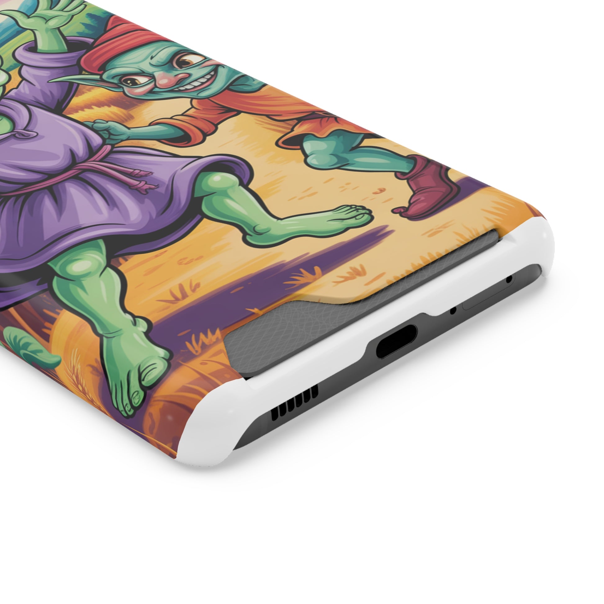 Playful Alien Phone Case with Card Holder | Cute Green Characters | Gift for Kids, Sci-Fi Fanatic, Birthday Fun, Unique Design