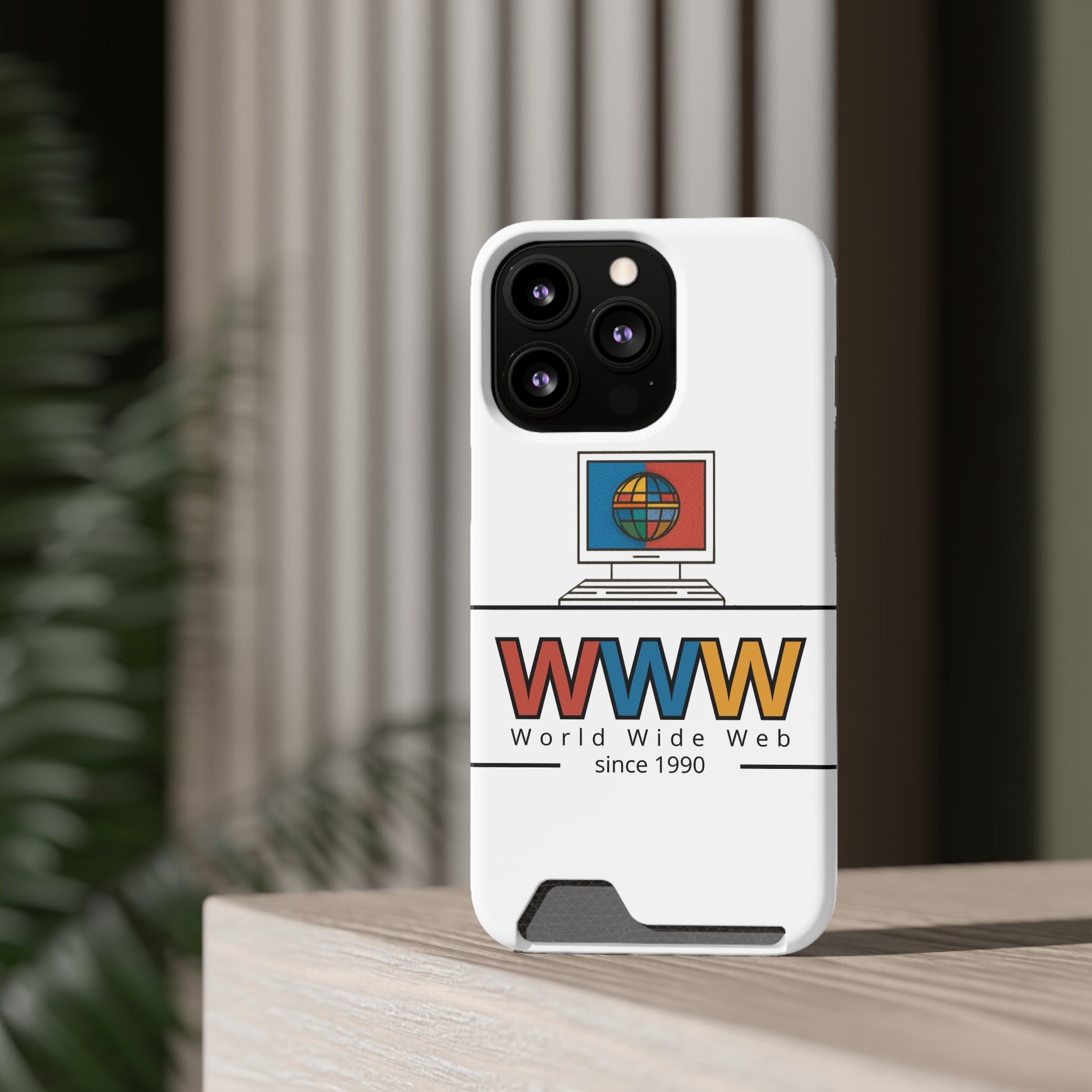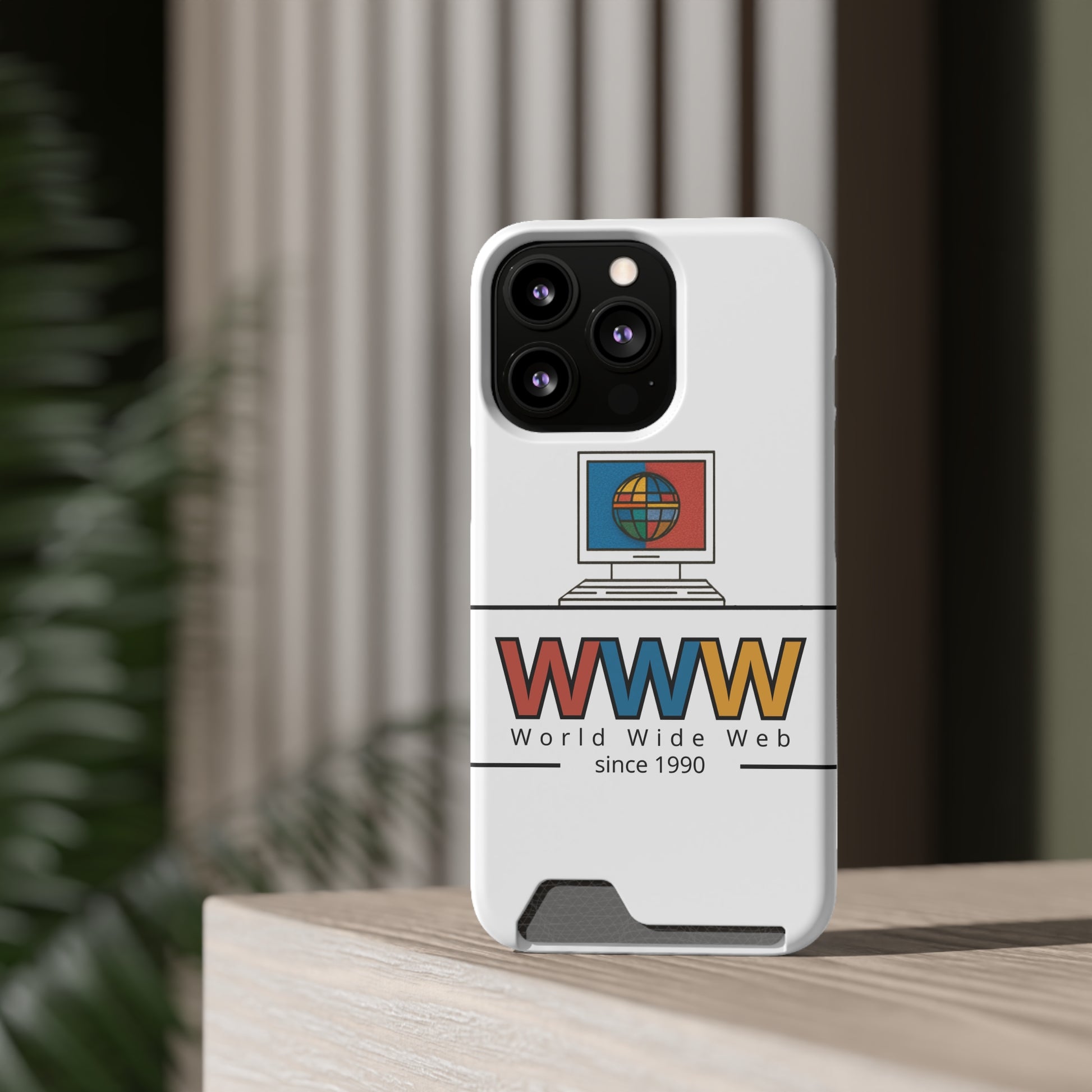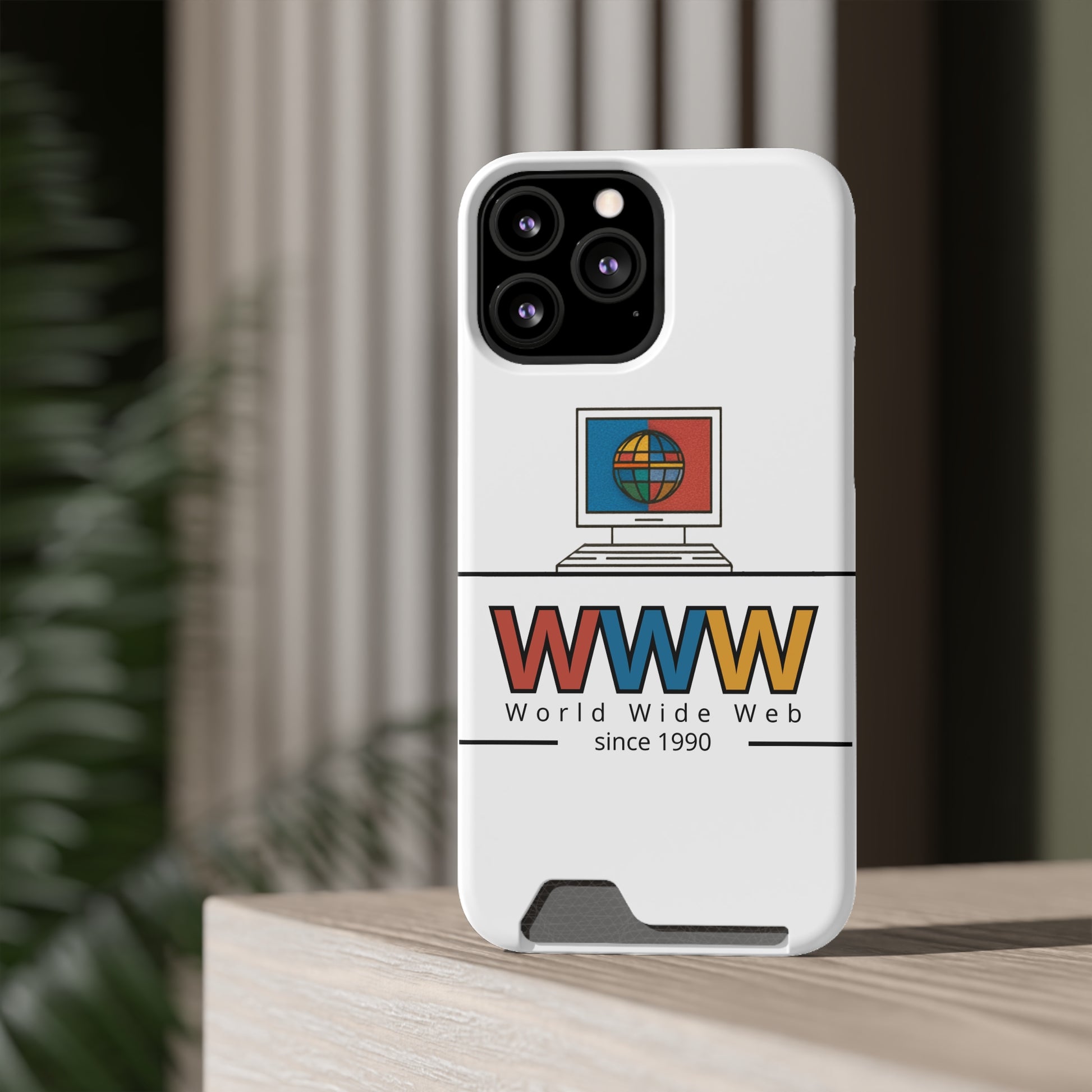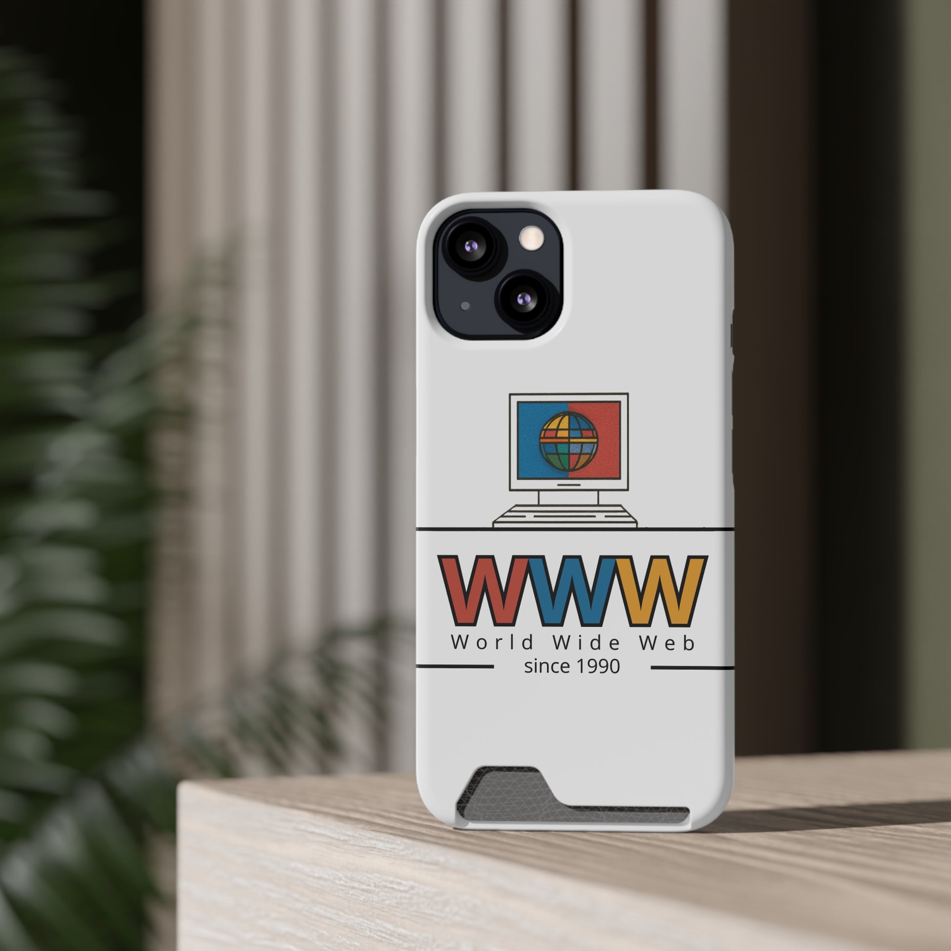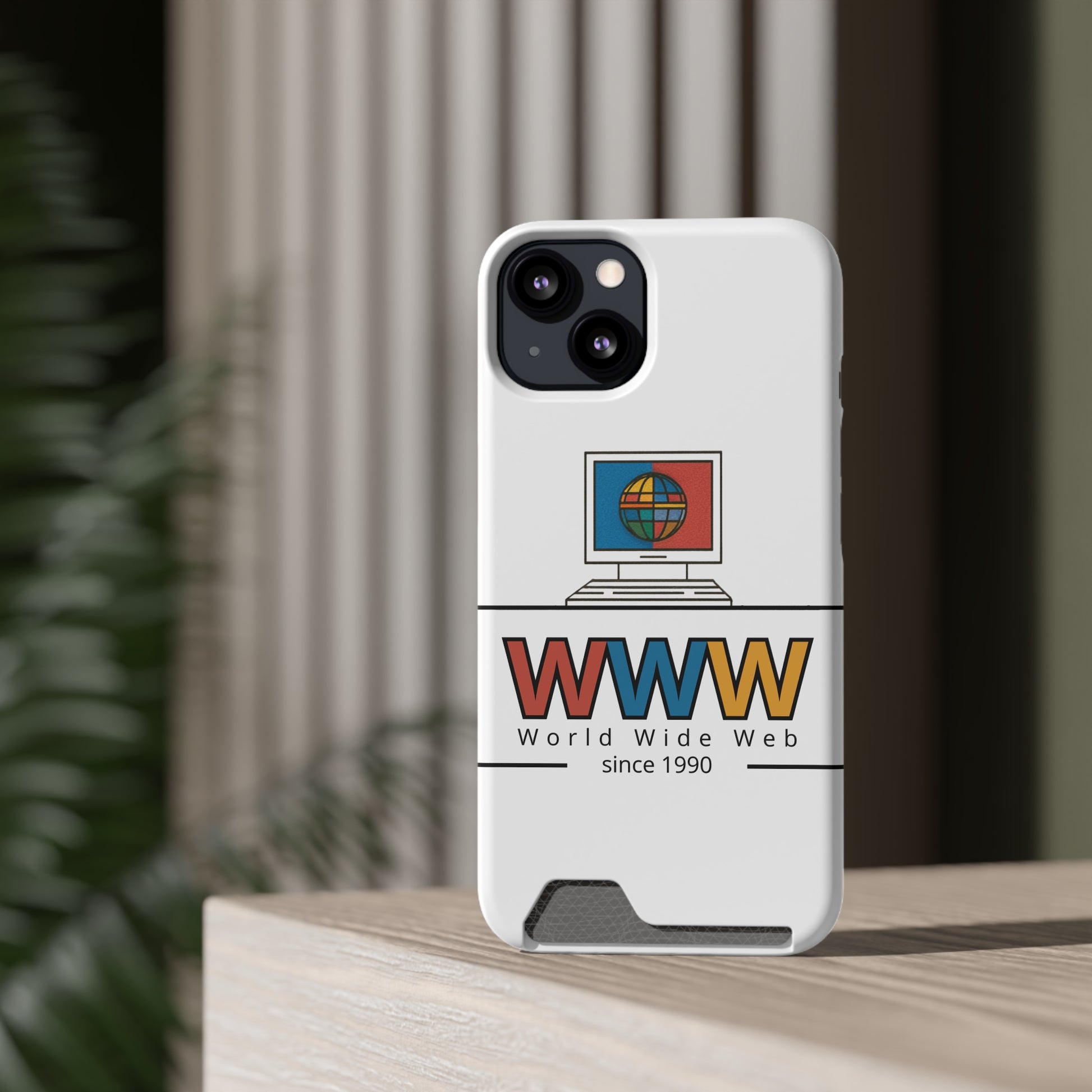 Retro Phone Case with Card Holder - World Wide Web Design, Geek Gift, Tech Accessory, Vintage Style, Personalized Phone Cover