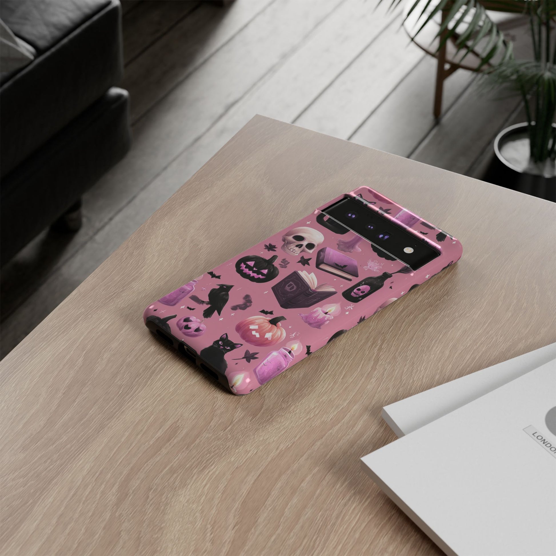 Introducing a stunning phone case that captures the spirit of spooky season! This durable phone case features whimsical Halloween-themed designs including pumpkins, cute black cats, and eerie candles, making it the perfect accessory for anyone who loves the fall festivities. Its vibrant colors and playful imagery can easily brighten up your daily routine while providing essential protection for your device. Ideal for trendsetters, Halloween enthusiasts, or anyone looking to add a touch of fun to their tech, this phone case is a must-have! Perfect for Halloween parties, cozy fall nights, or as a thoughtful gift for a friend during the autumn season.
