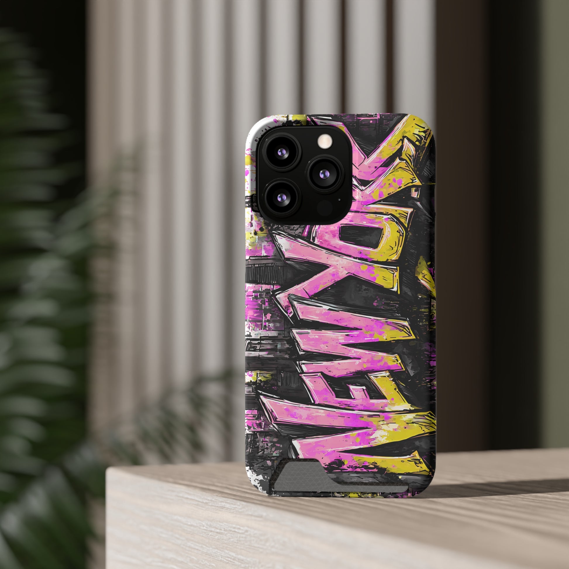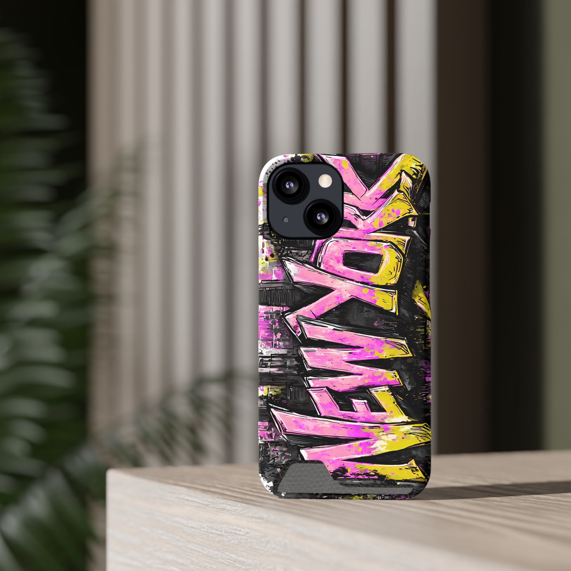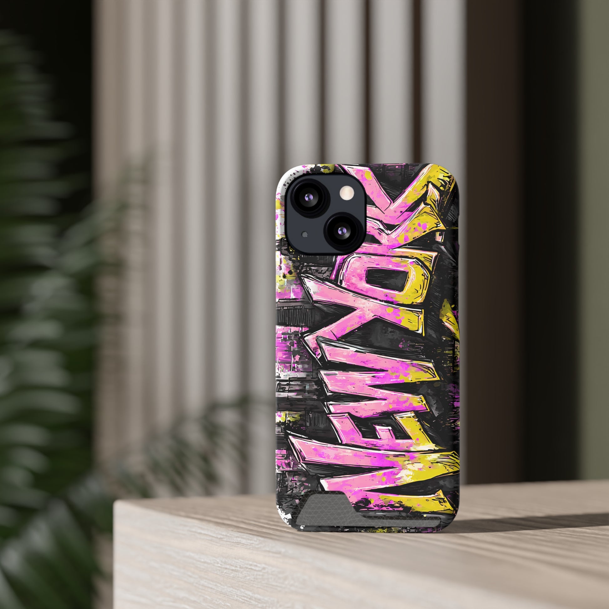 Urban Graffiti Phone Case with Card Holder, NY Street Art Phone Protection, Trendy Accessory, Gifts for City Lovers, Unique Tech Gift