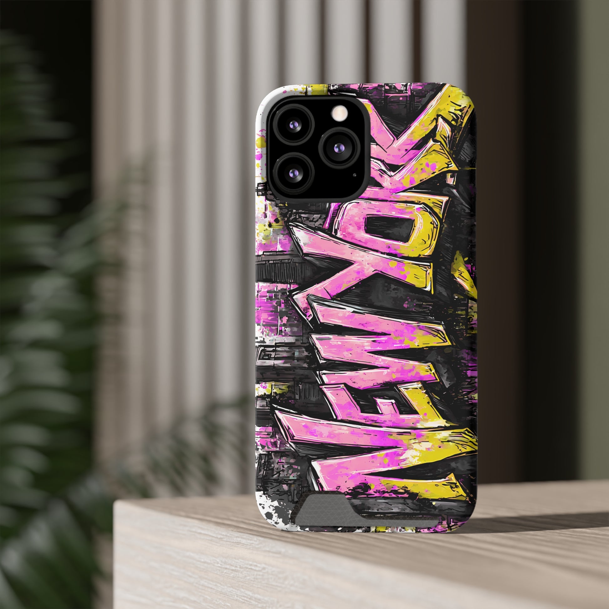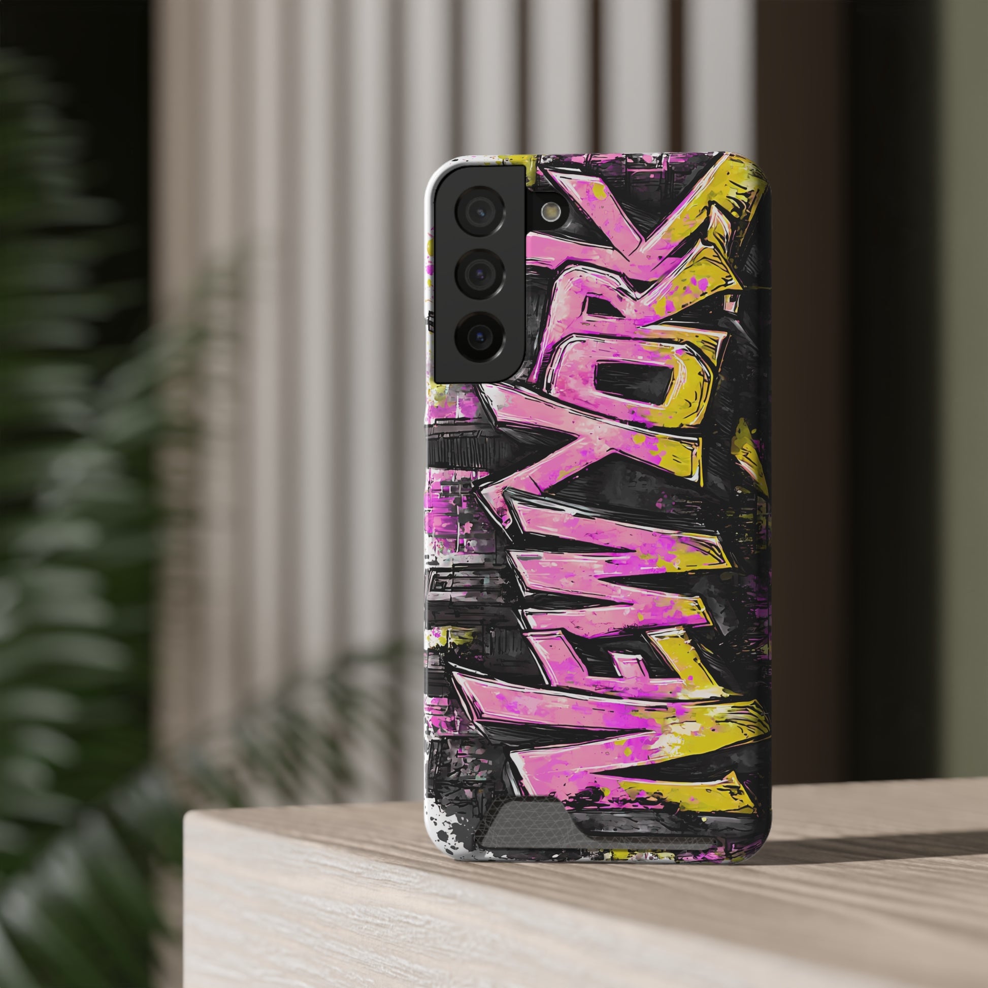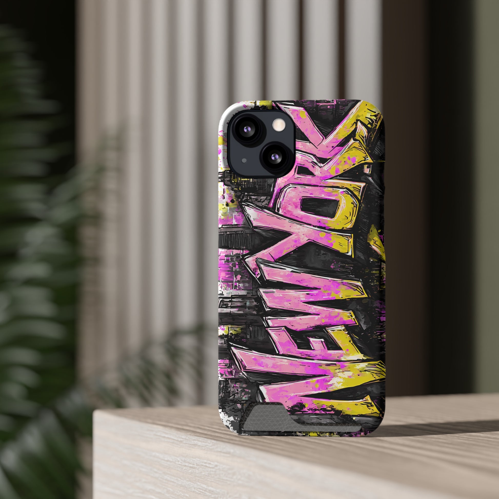 Urban Graffiti Phone Case with Card Holder, NY Street Art Phone Protection, Trendy Accessory, Gifts for City Lovers, Unique Tech Gift