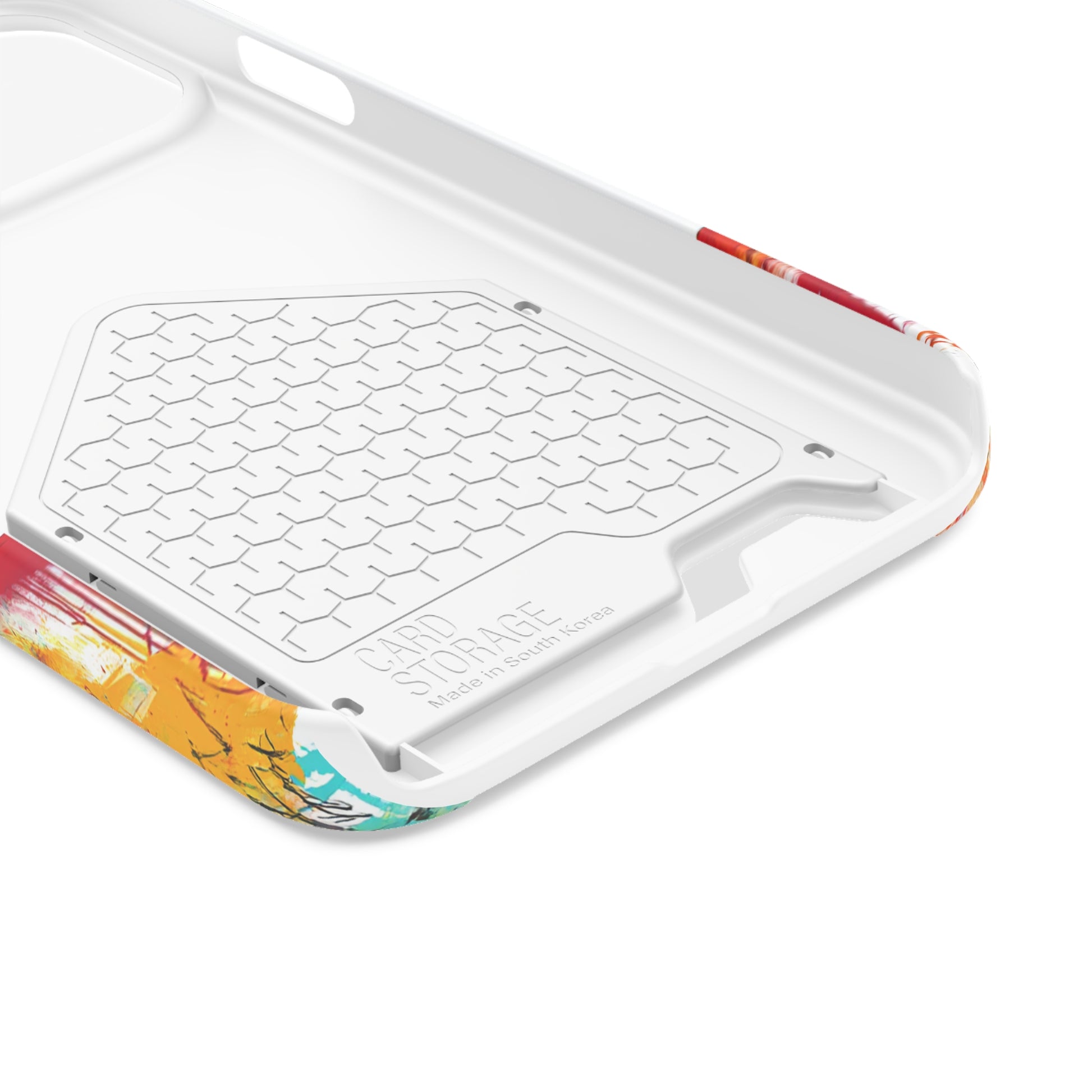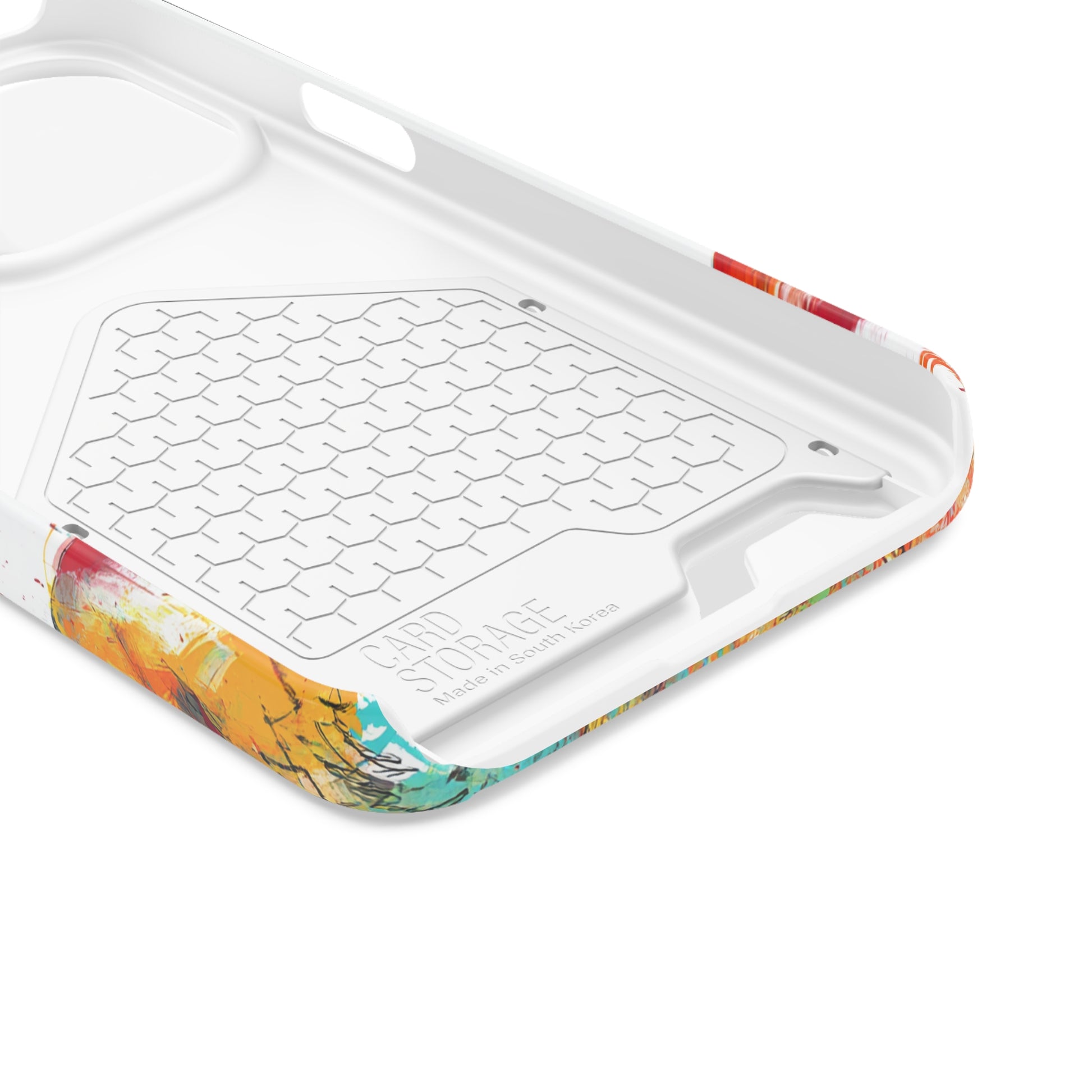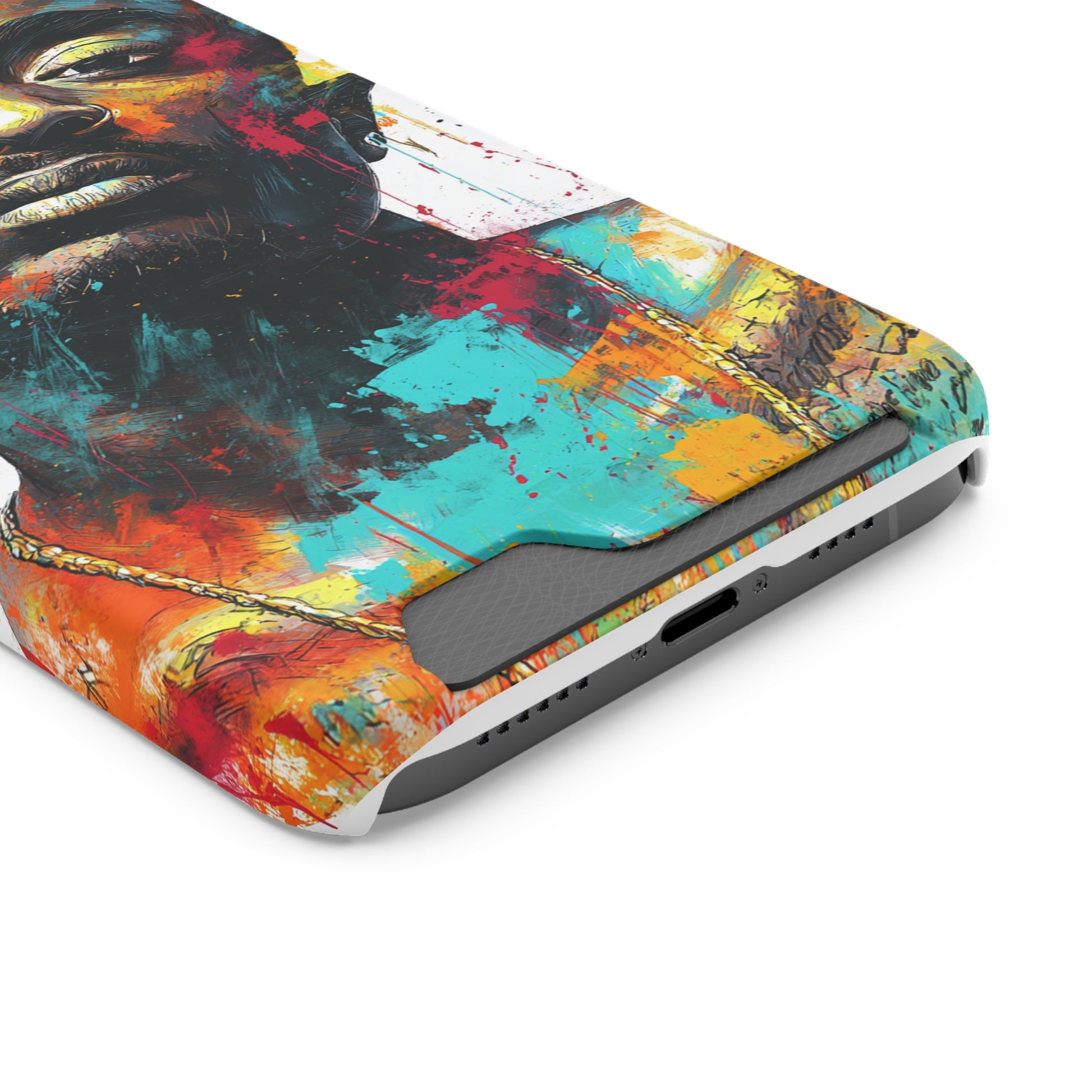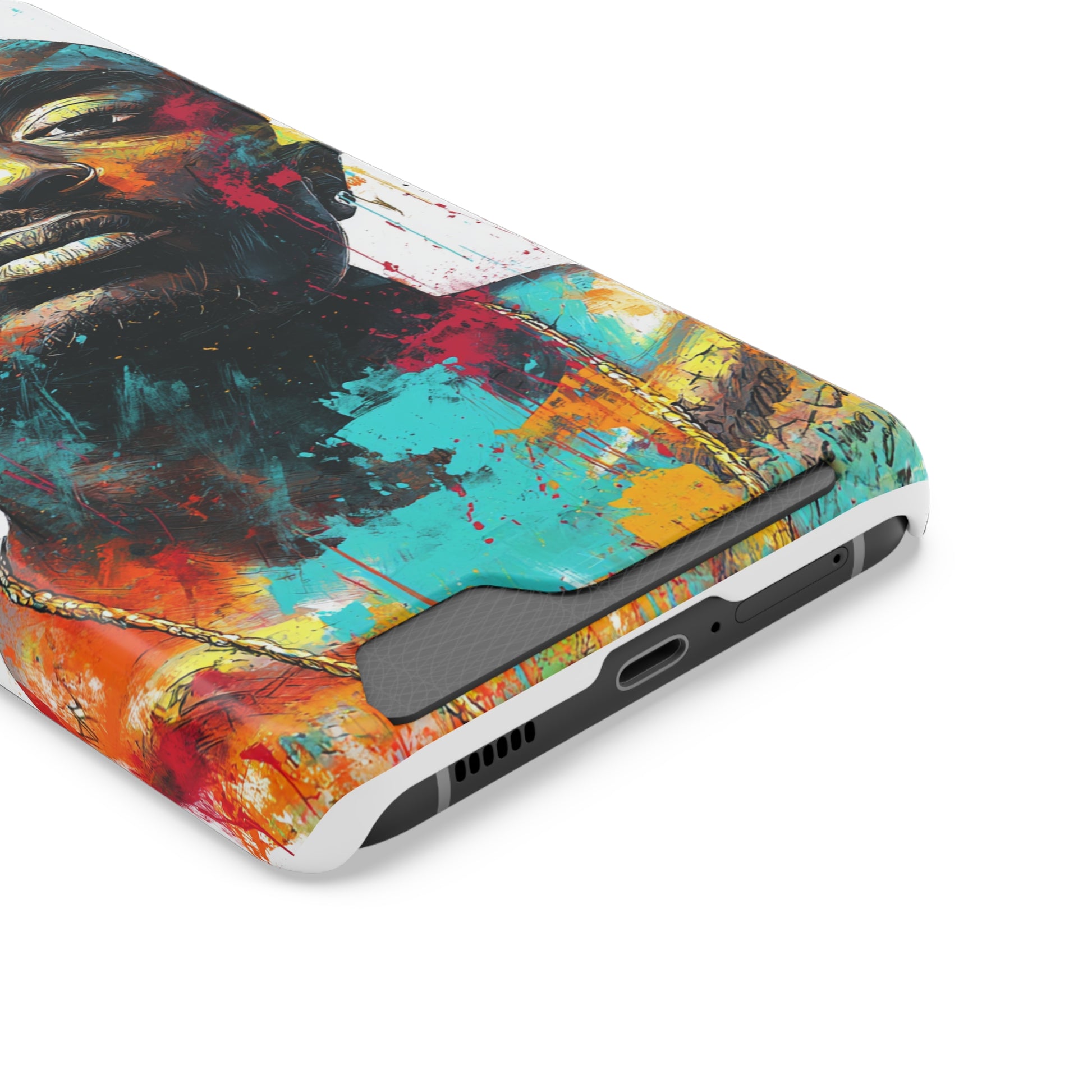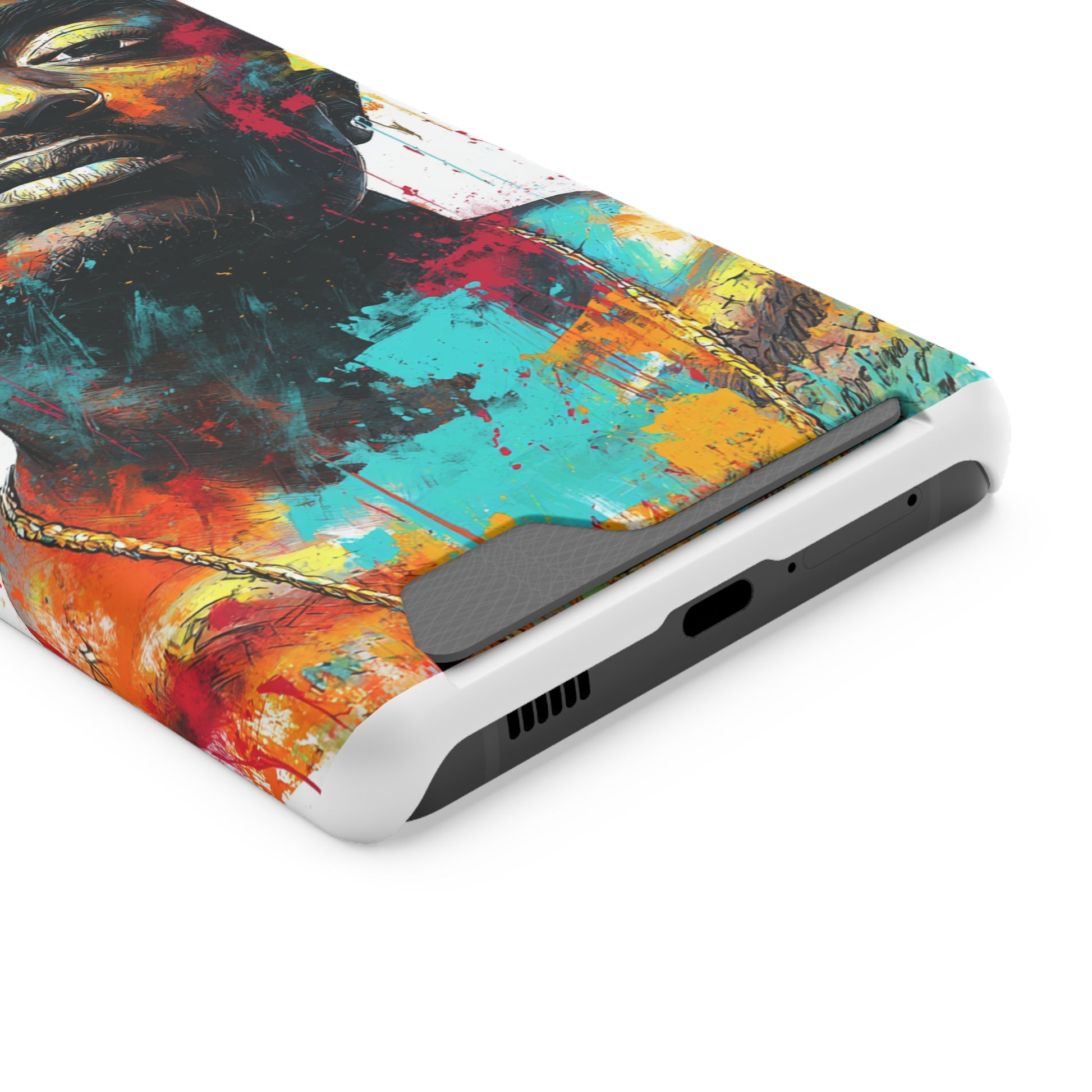 Vibrant Phone Case with Card Holder, Abstract Art Phone Cover, Stylish Smartphone Case, Unique Gift for Music Lovers, Hip-Hop Inspired Case