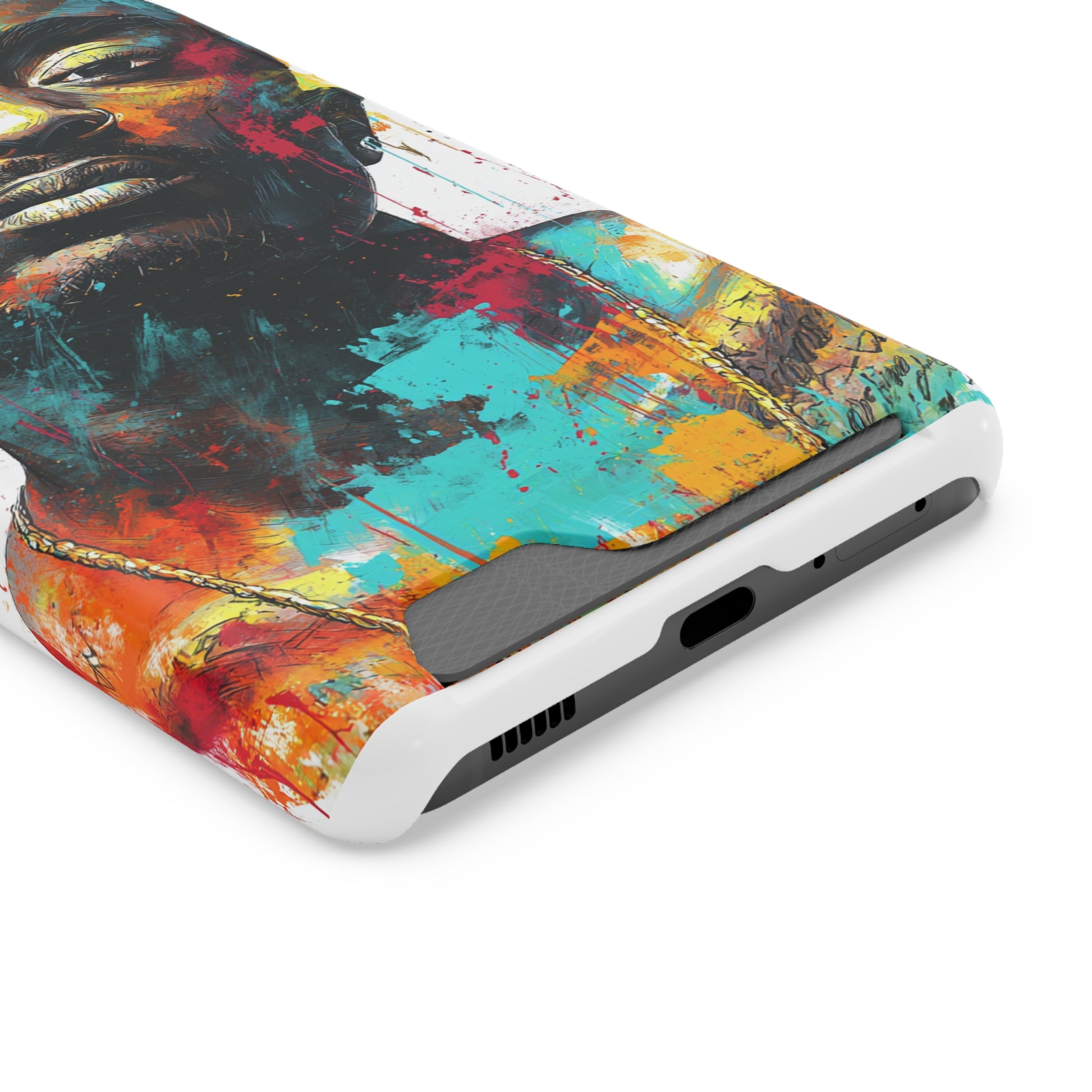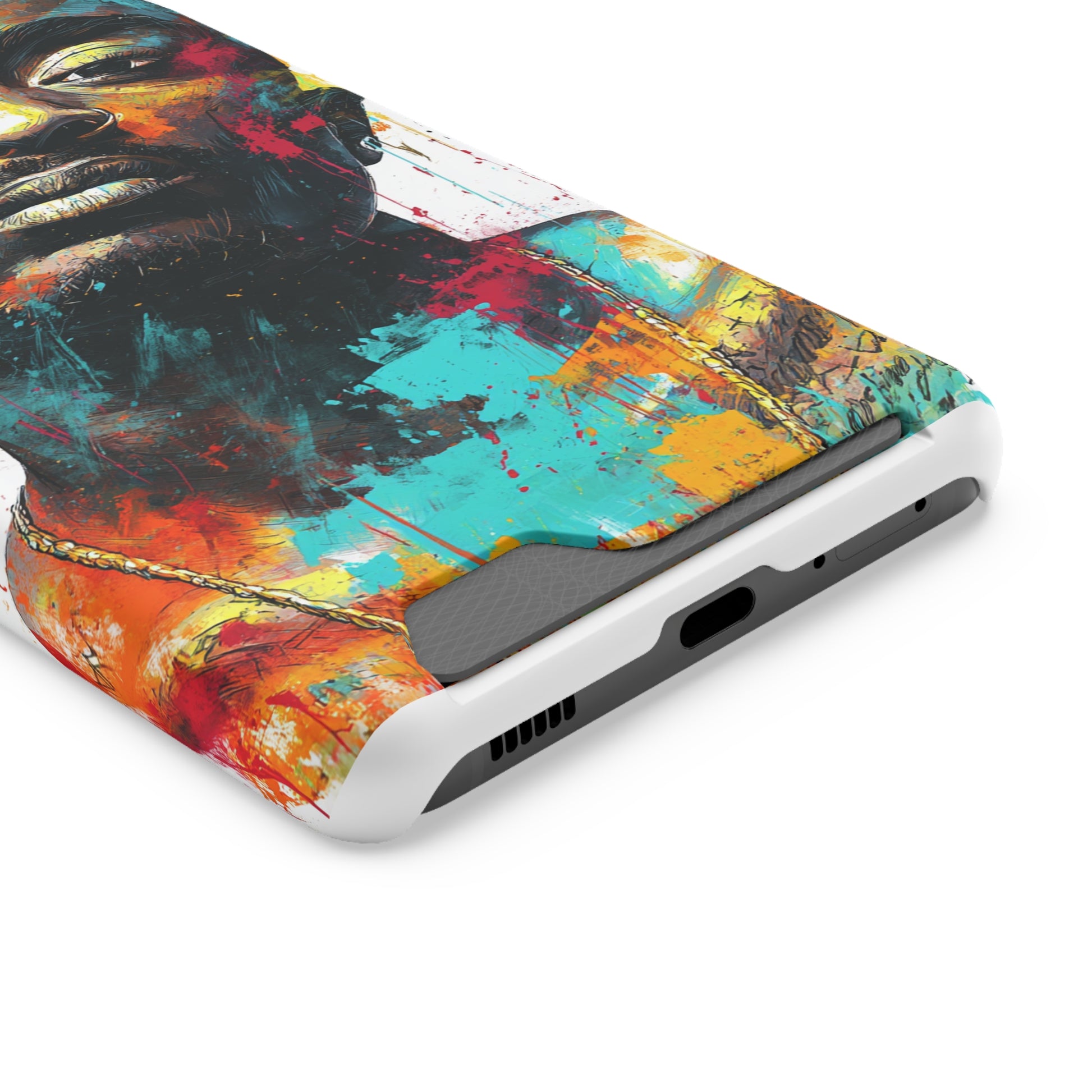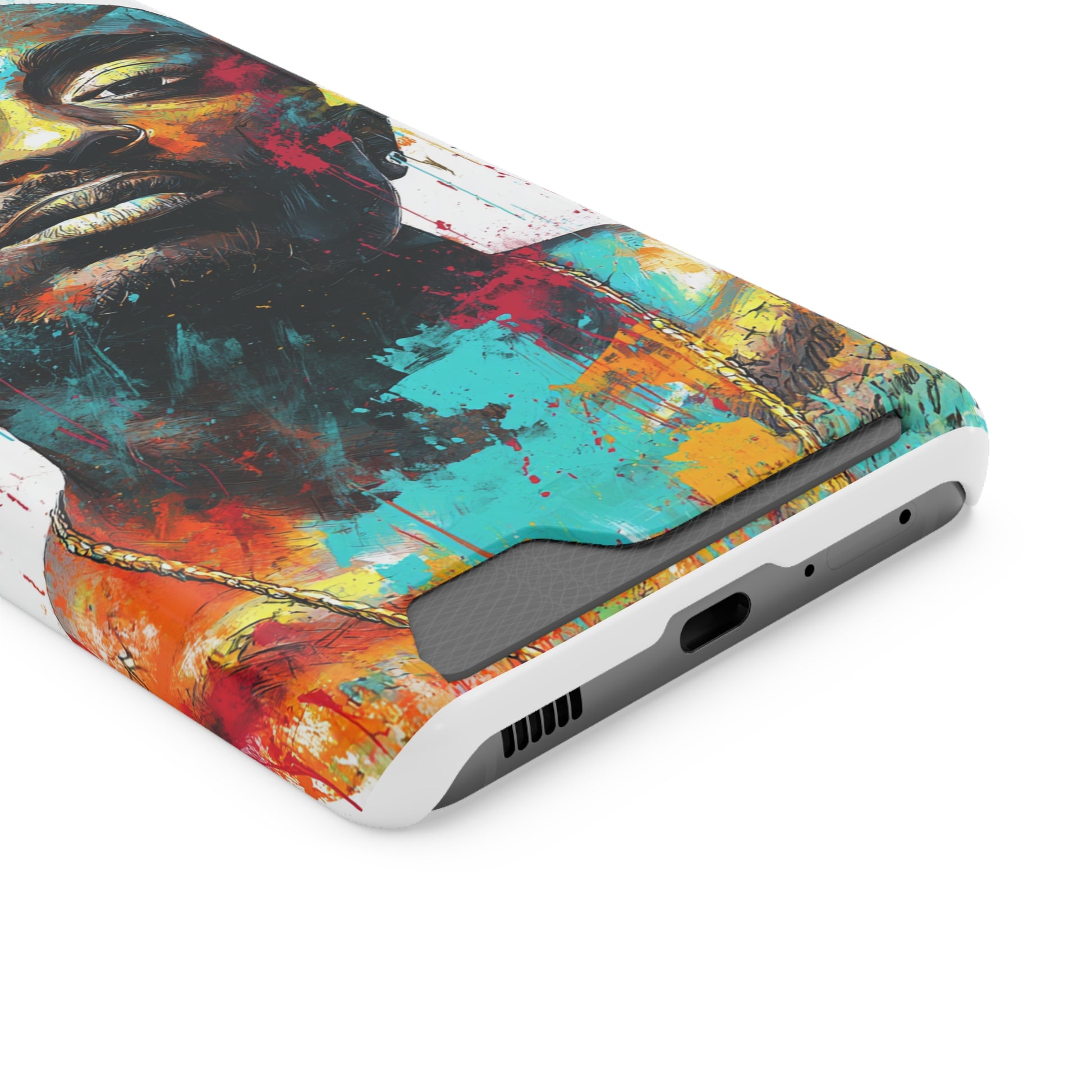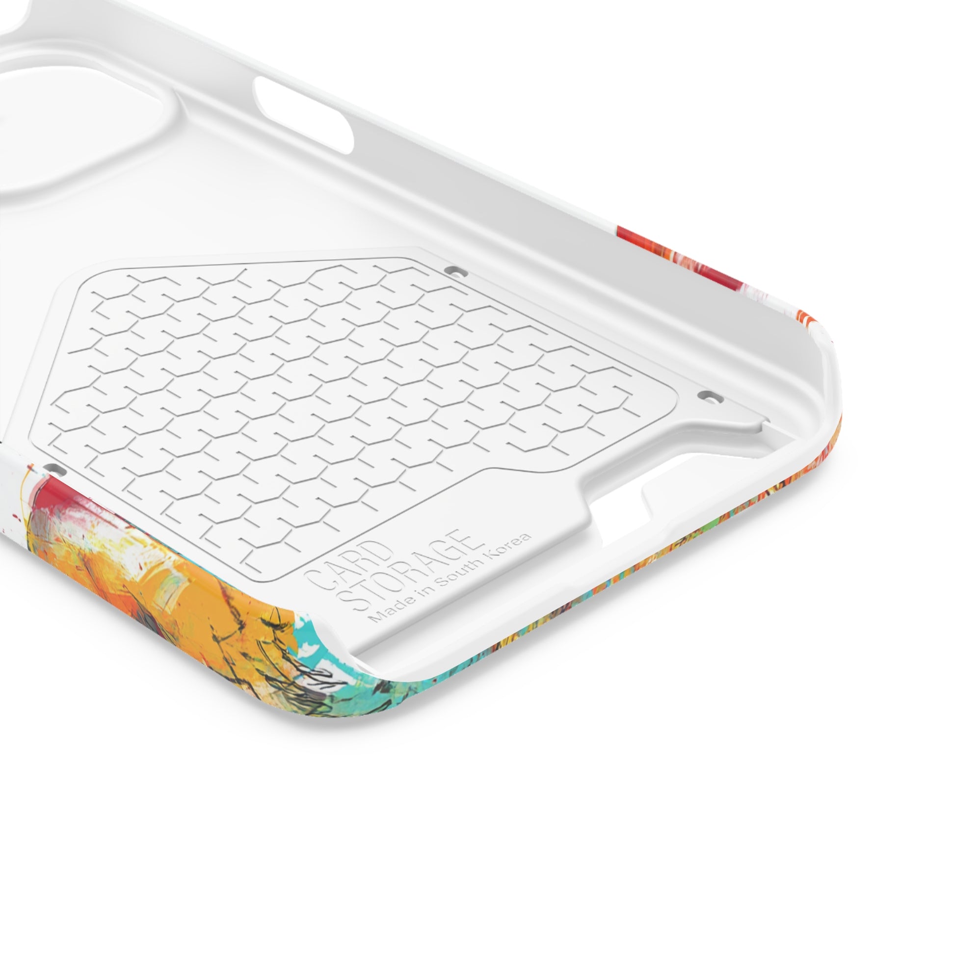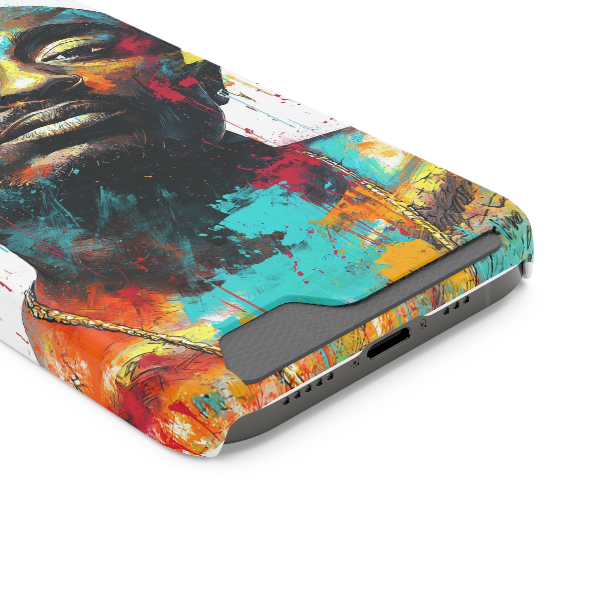 Vibrant Phone Case with Card Holder, Abstract Art Phone Cover, Stylish Smartphone Case, Unique Gift for Music Lovers, Hip-Hop Inspired Case
