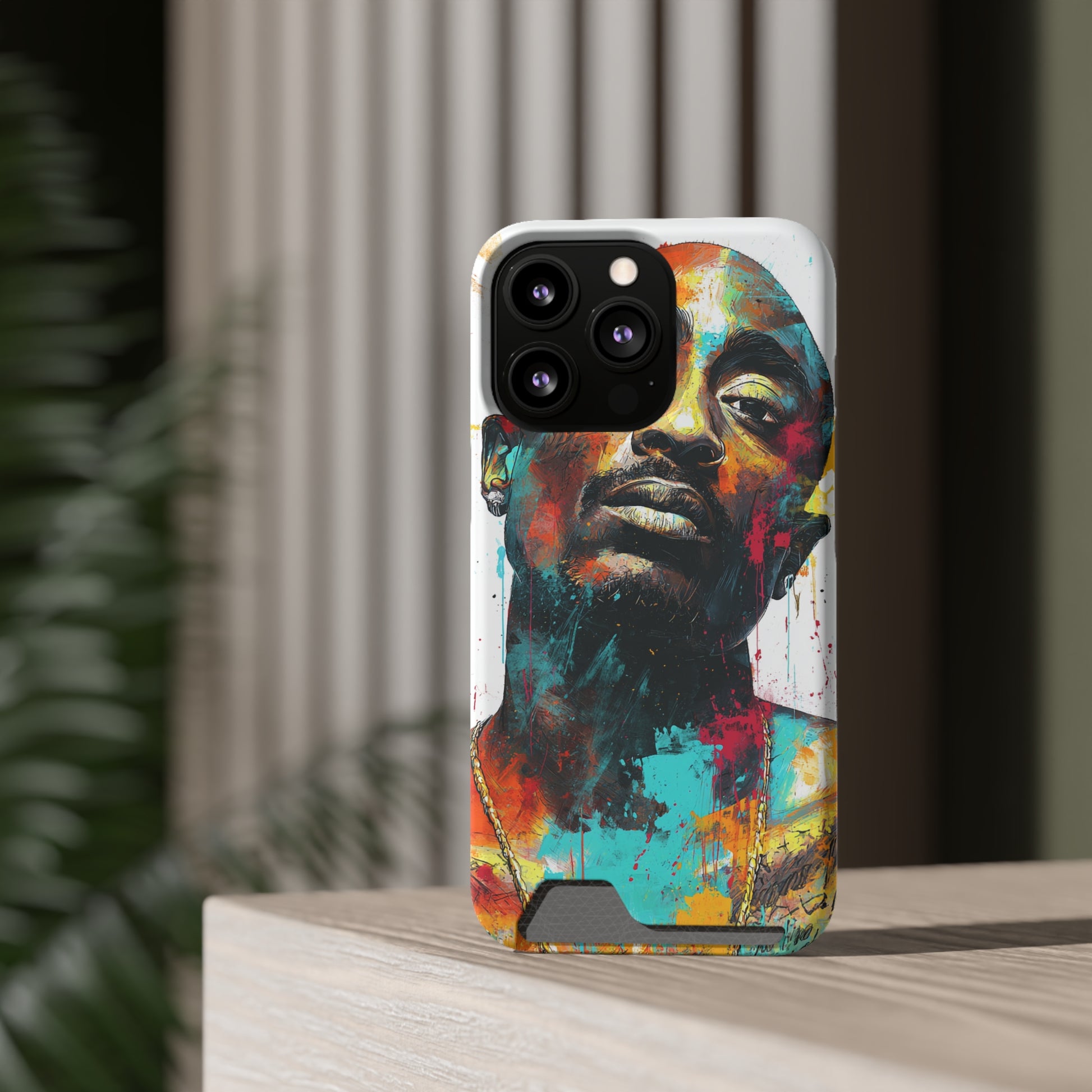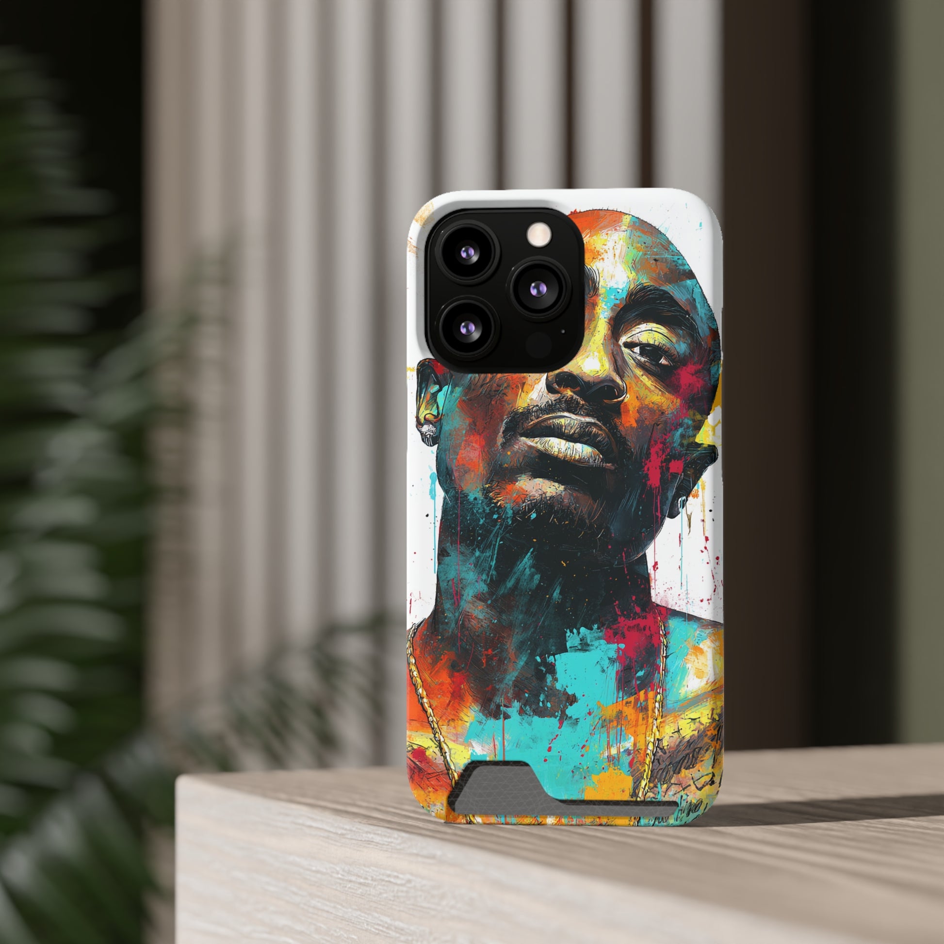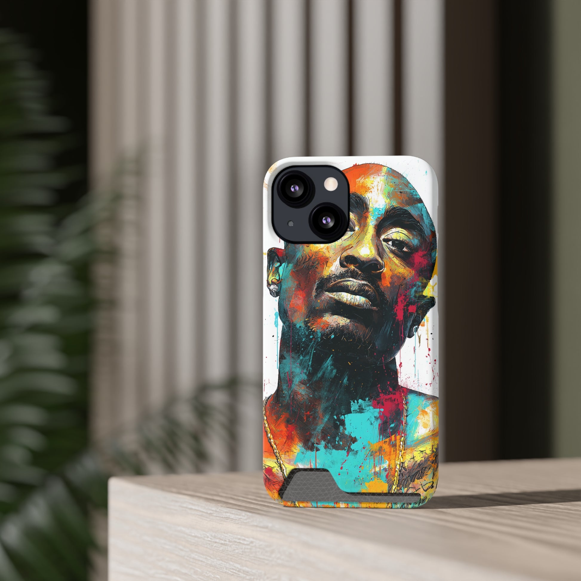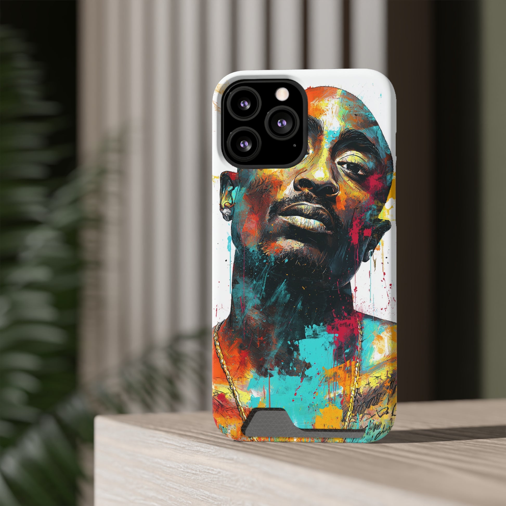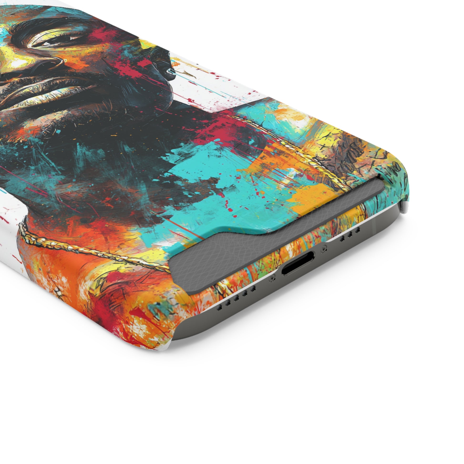 Vibrant Phone Case with Card Holder, Abstract Art Phone Cover, Stylish Smartphone Case, Unique Gift for Music Lovers, Hip-Hop Inspired Case